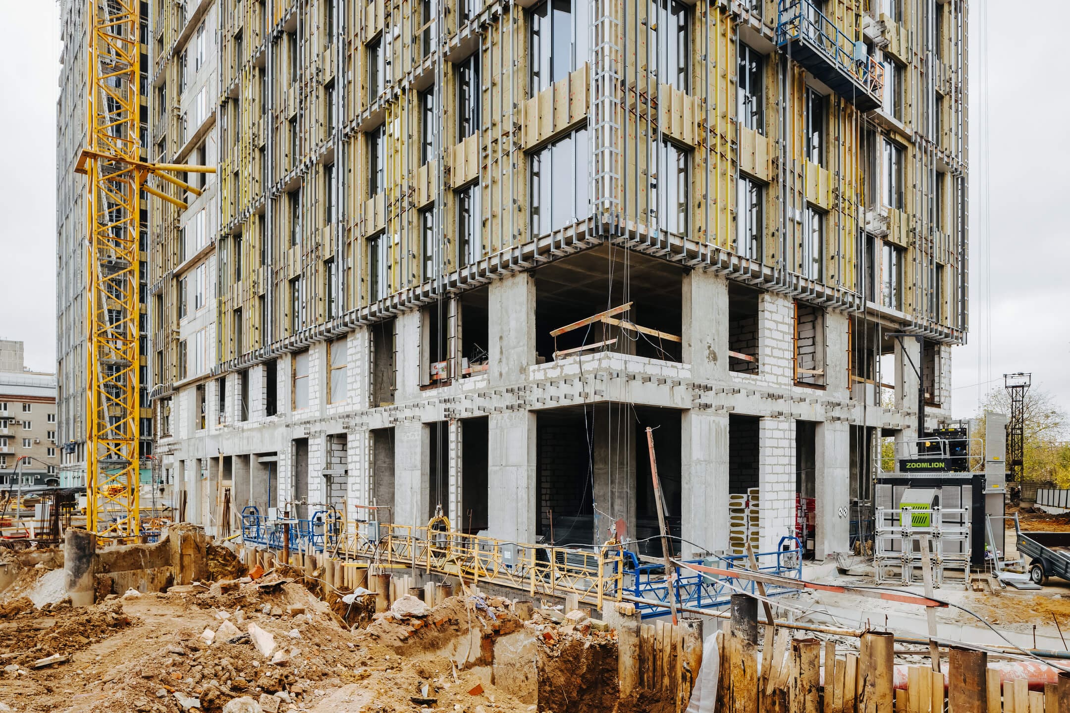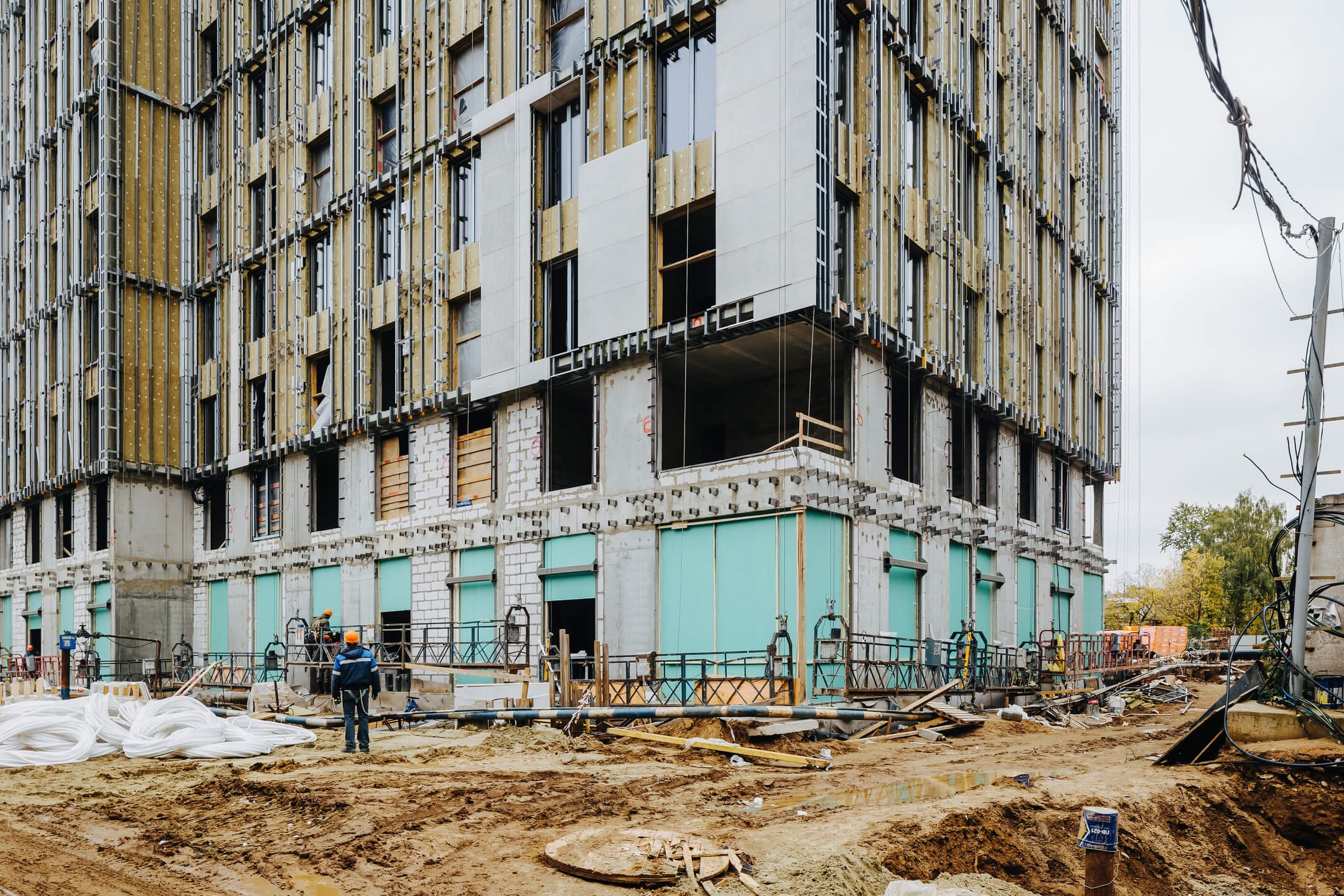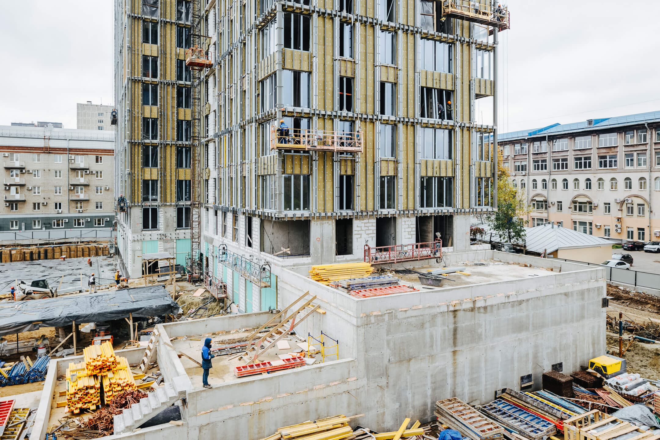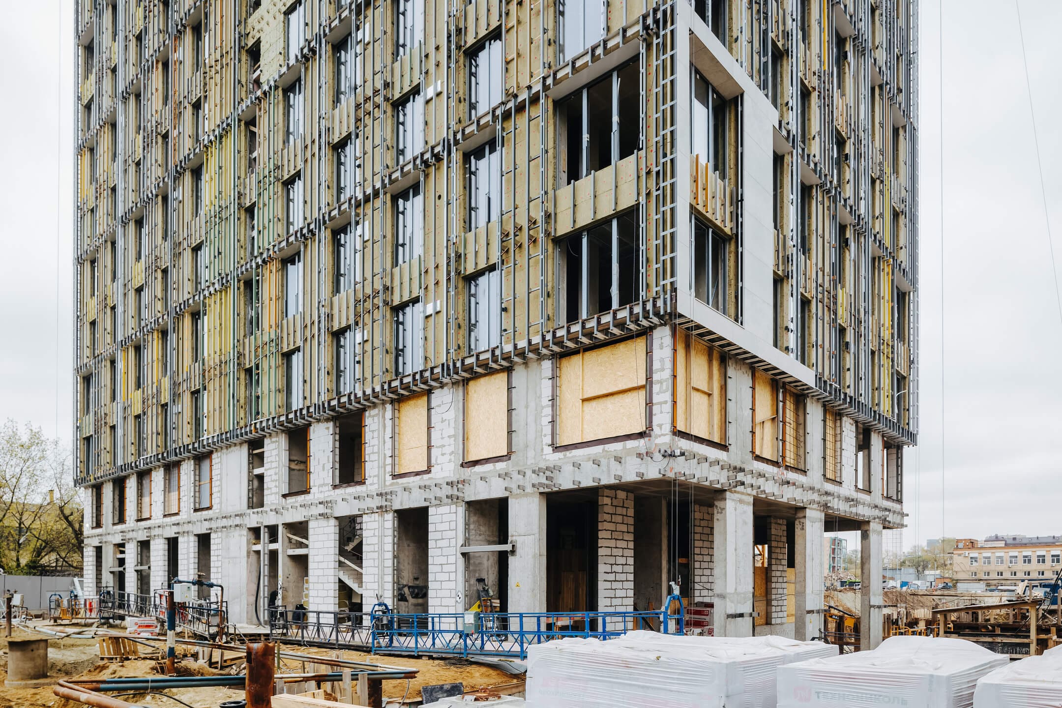 - Ведутся каменные работы на 16-21 этажах.
