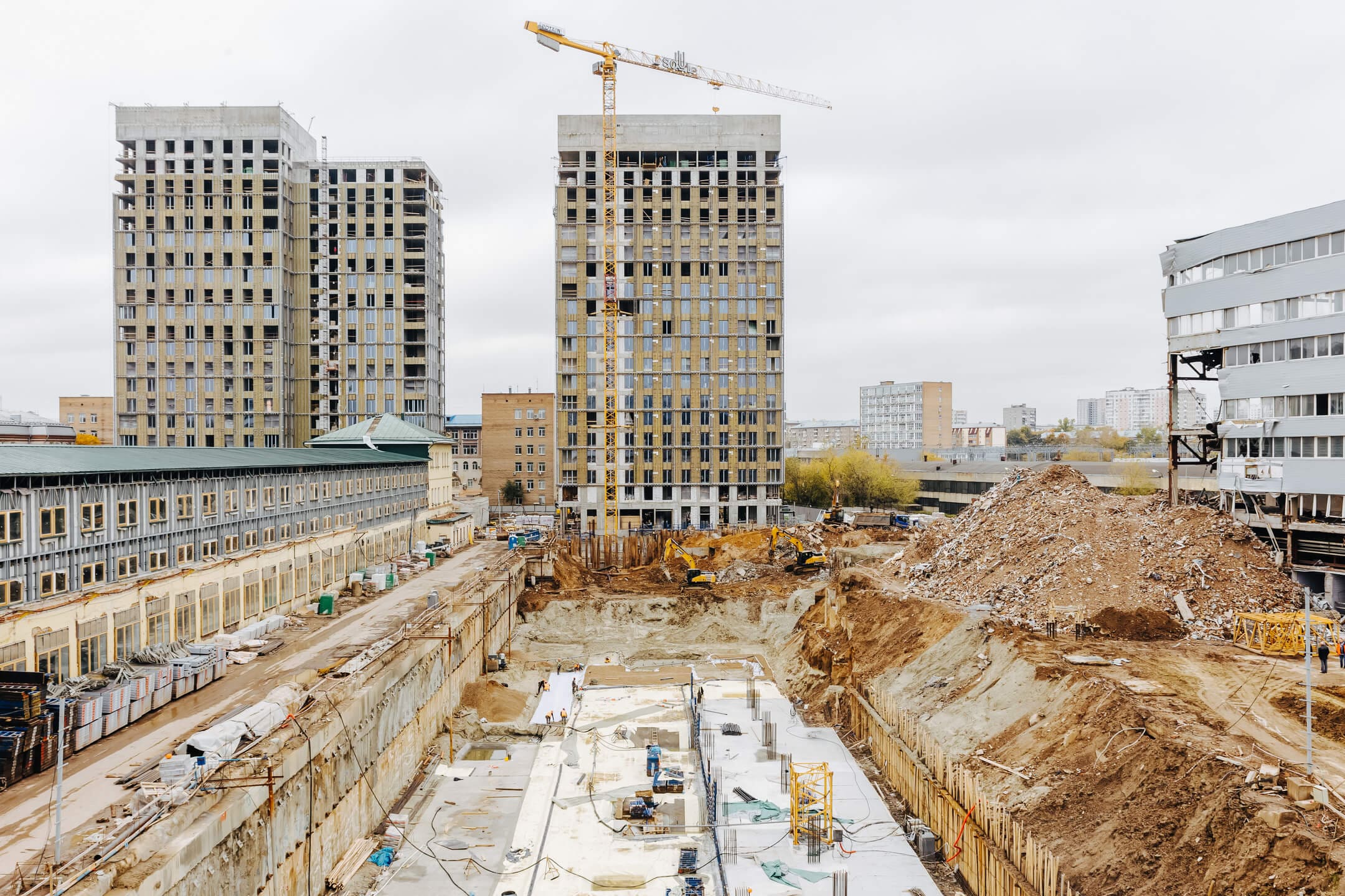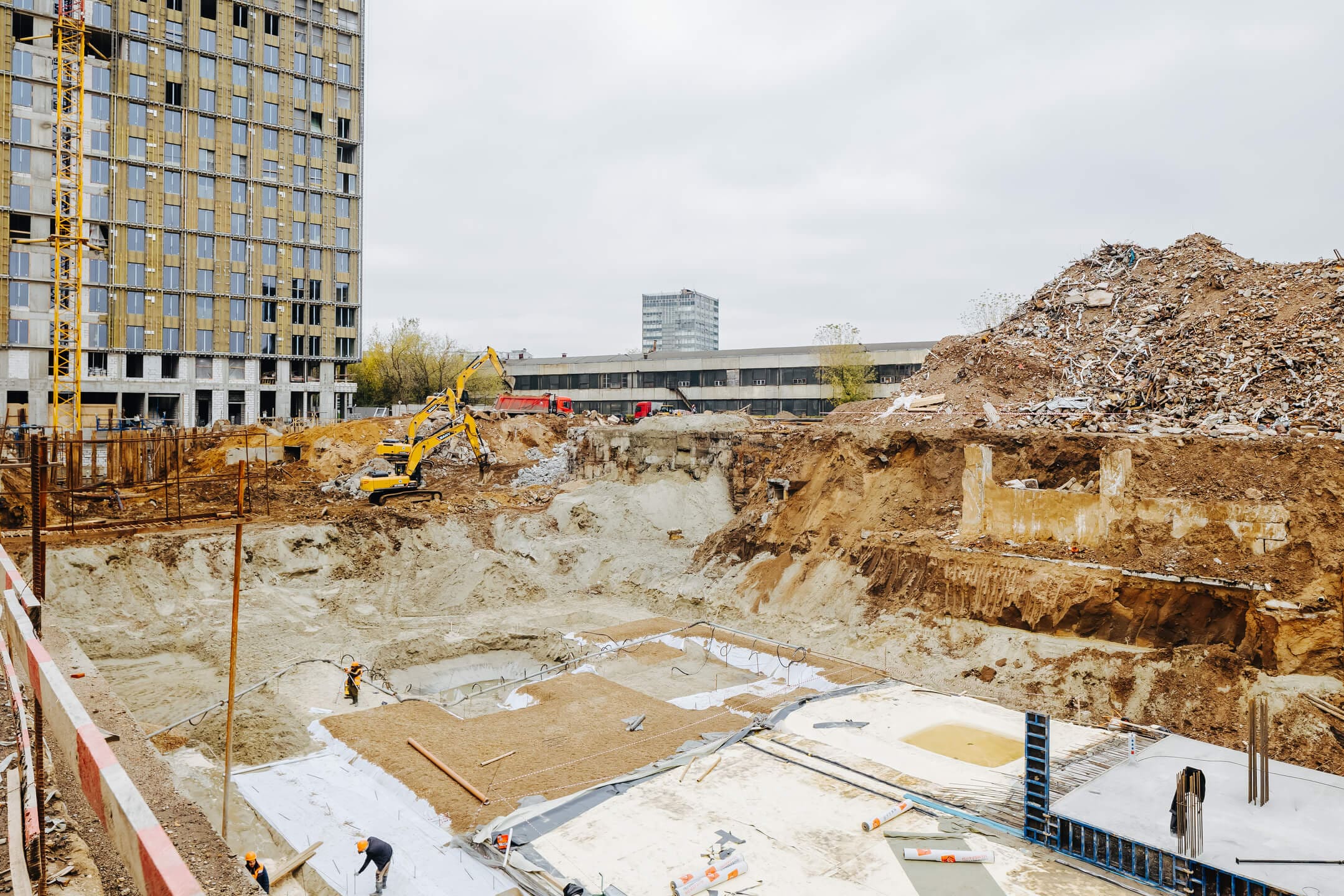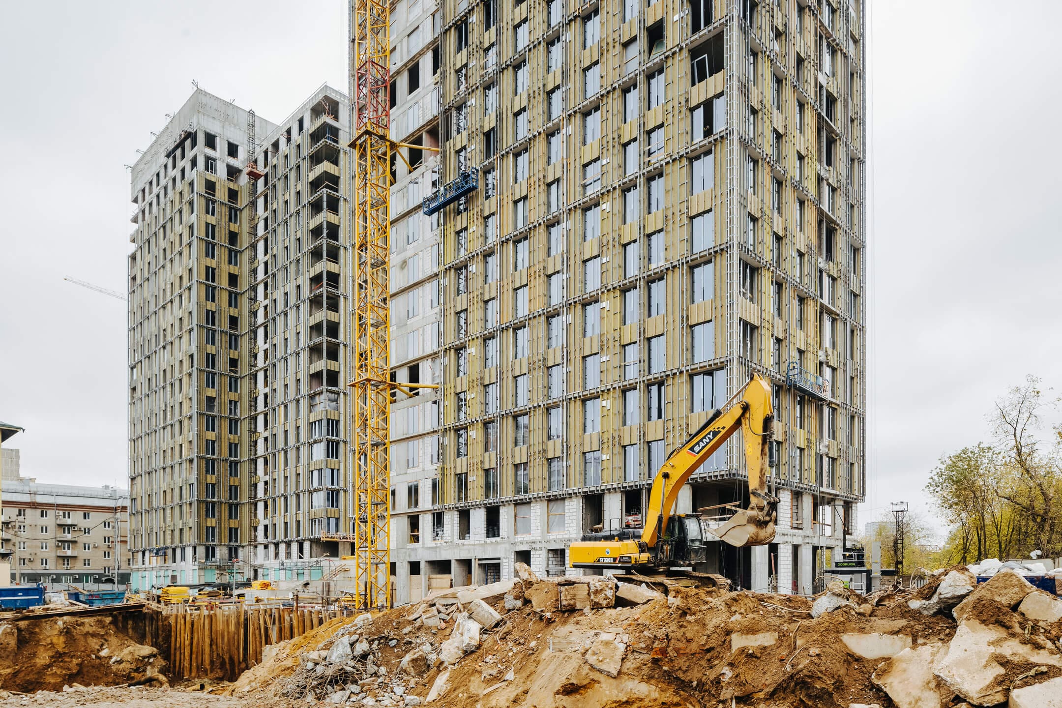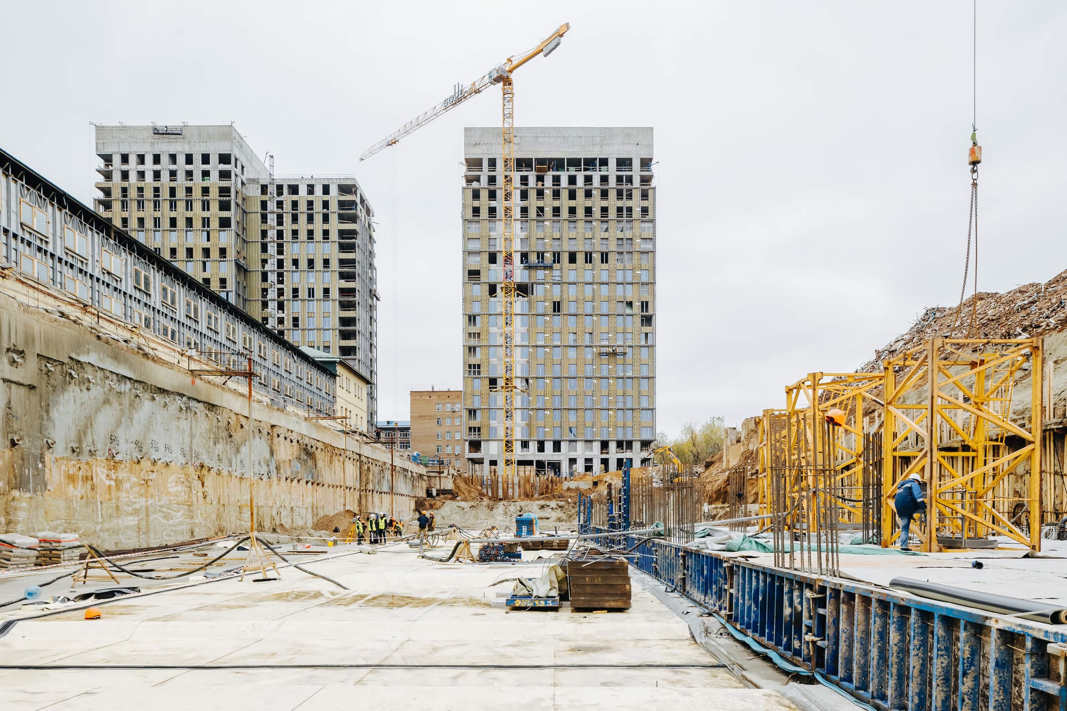 - Ведутся каменные работы на 16-21 этажах.