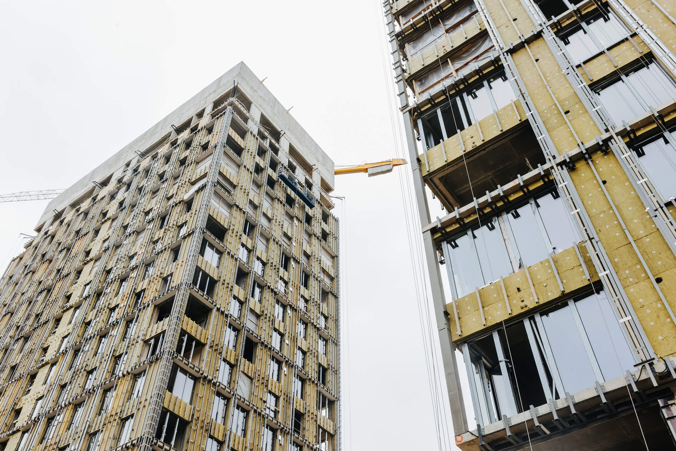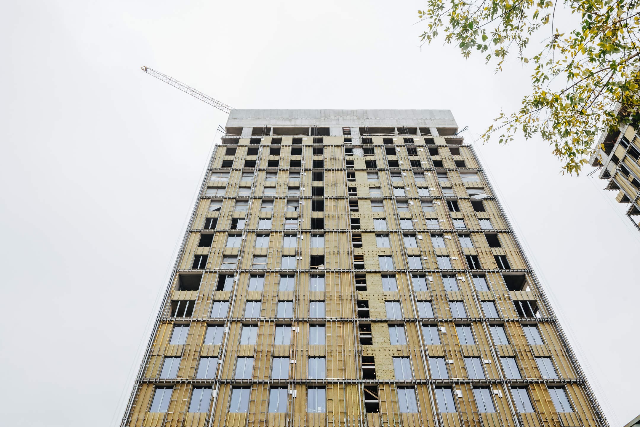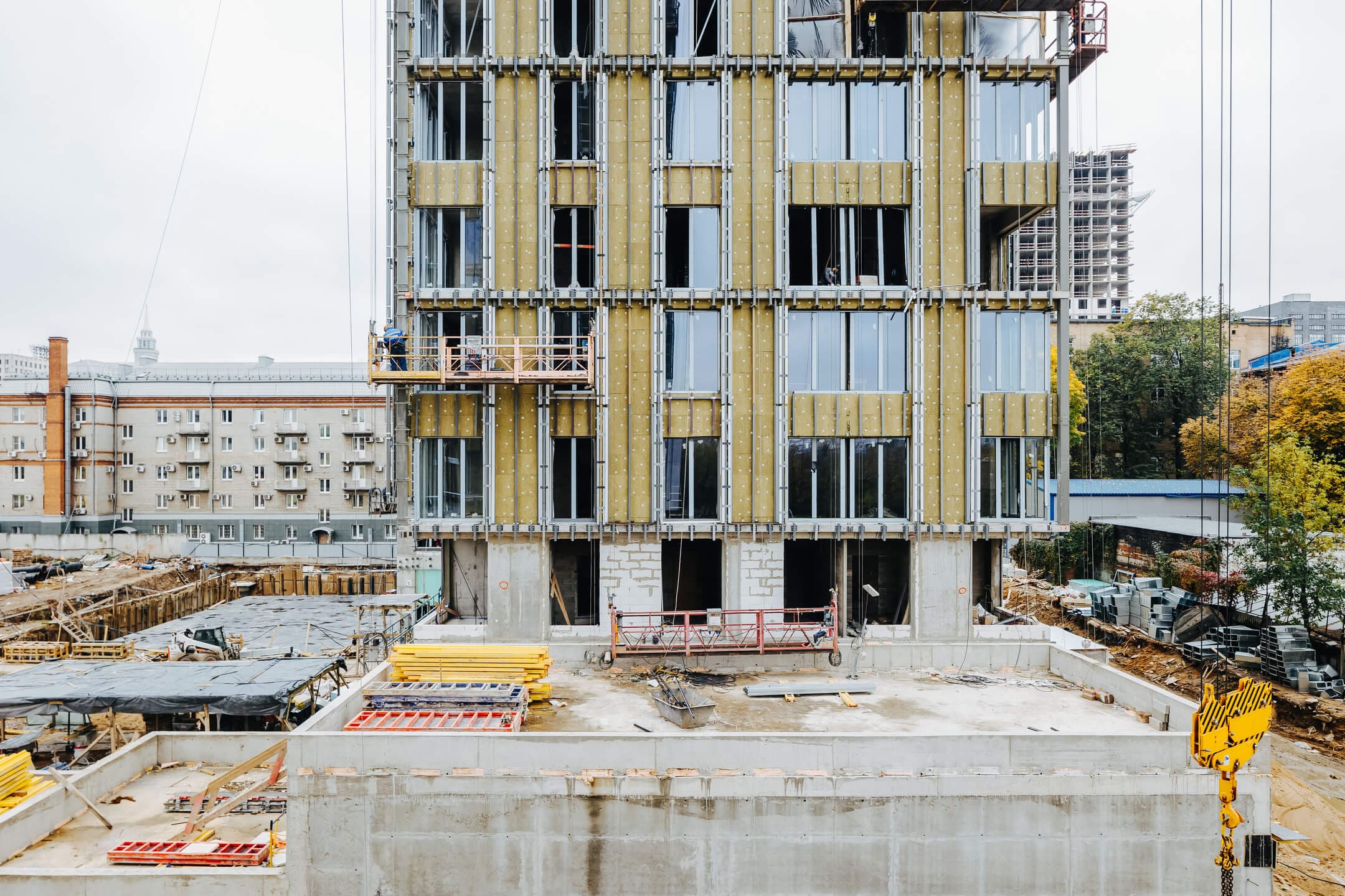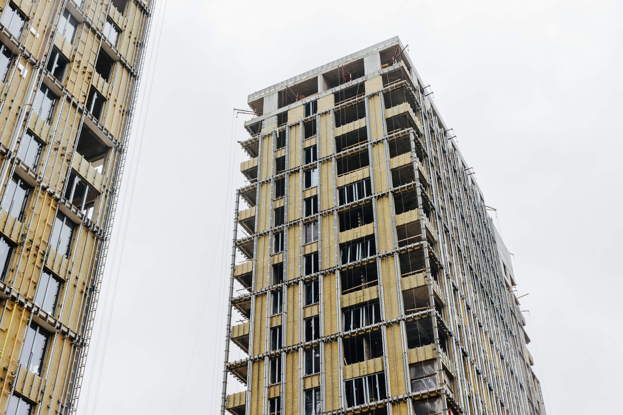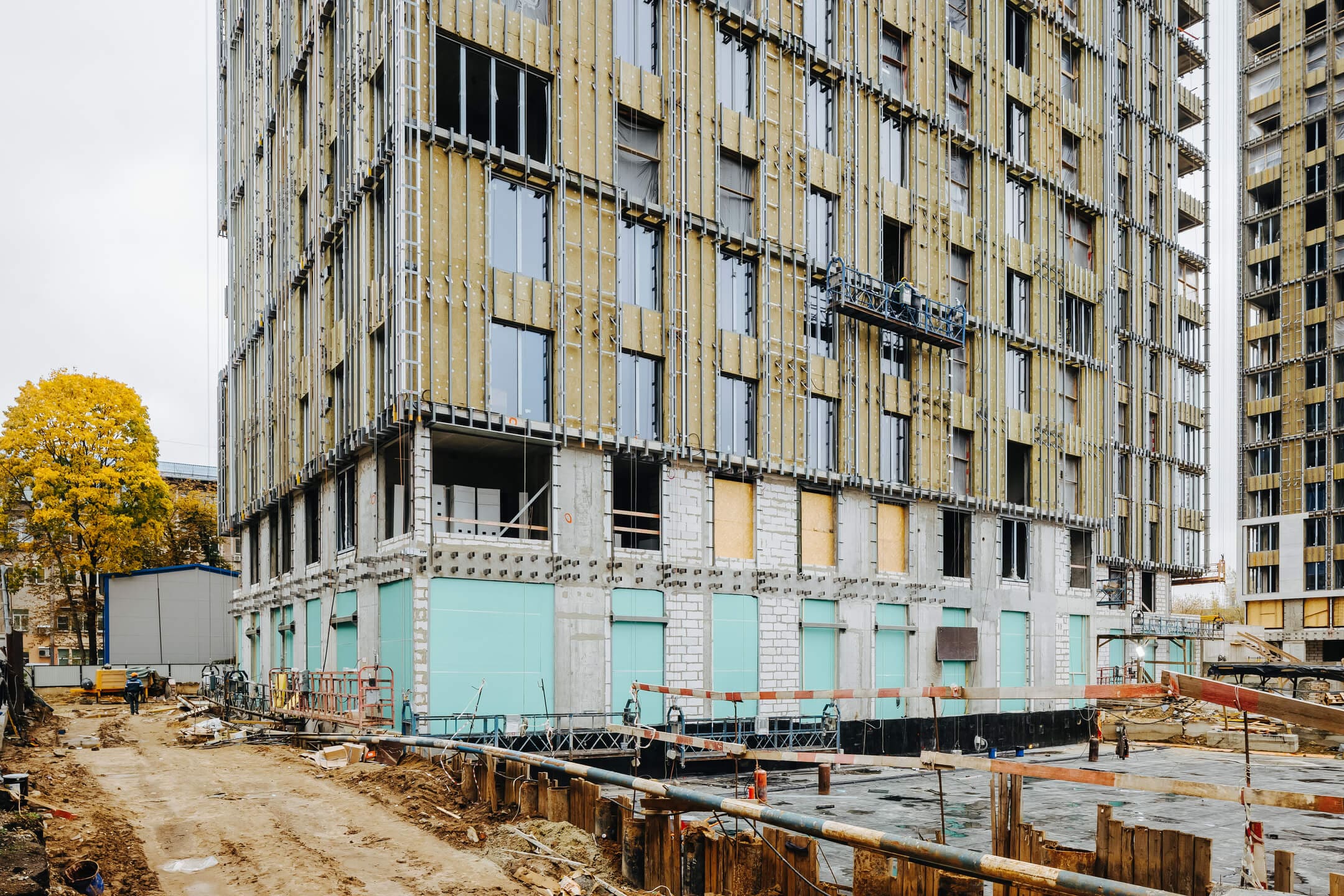 - Фасад. Монтаж противопожарной отсечки. Монтаж минераловатного утеплителя. Монтаж подсистемы. Монтаж облицовки из натурального камня. Монтаж окон типовых этажей.