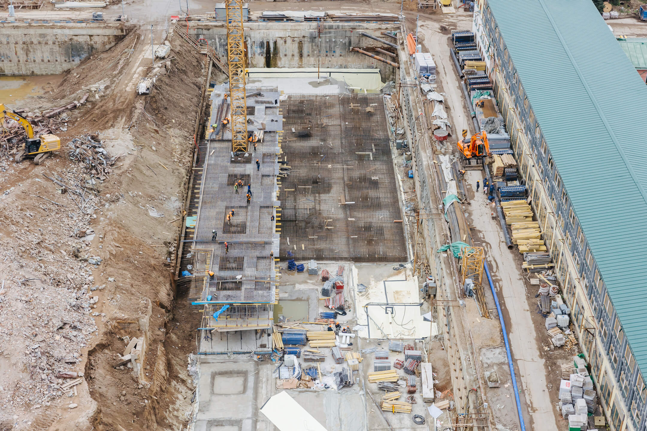 - Бетонирование плиты перекрытия паркинга −1 этажа.