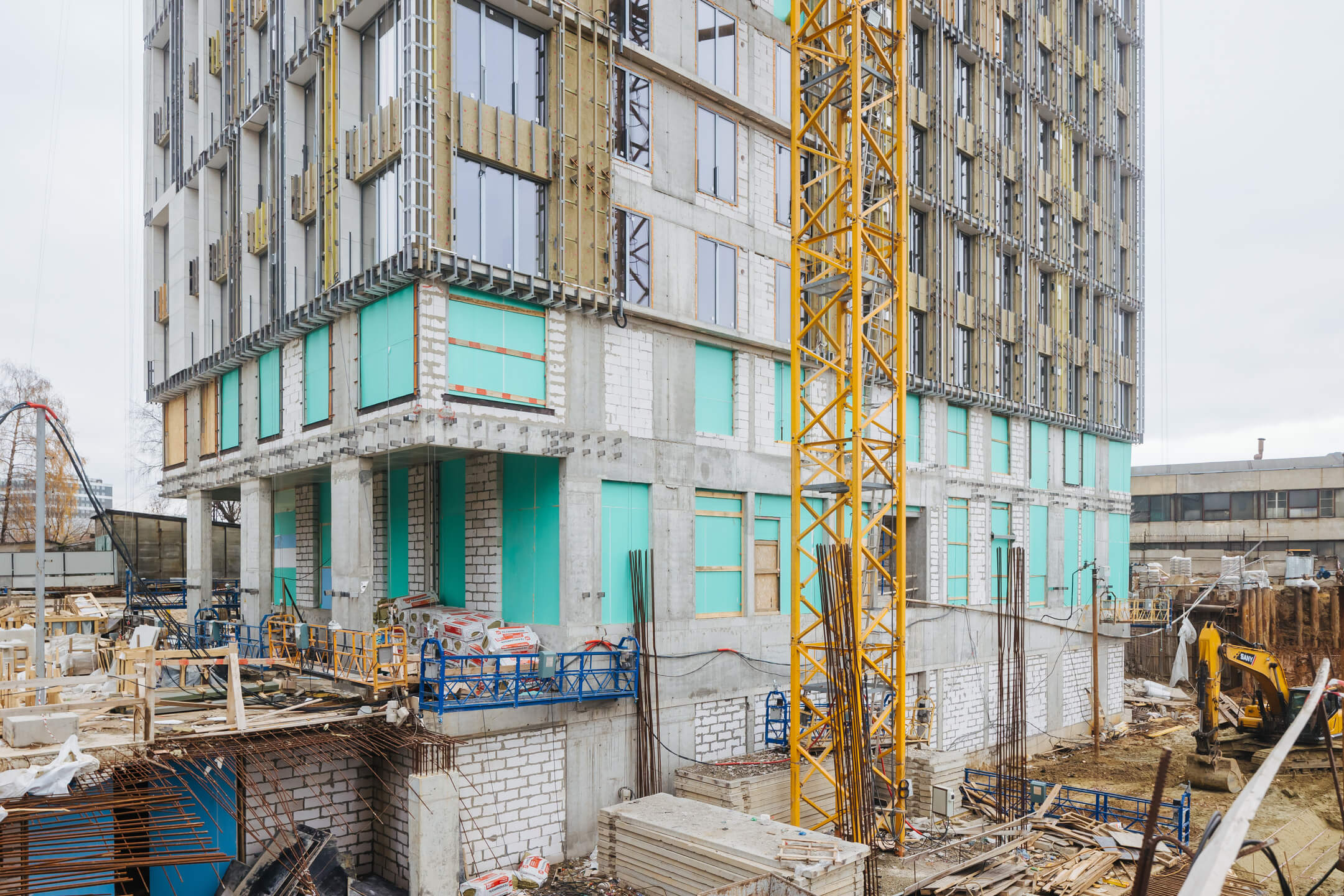 - Ведутся отделочные работы на 3-14 этажах.