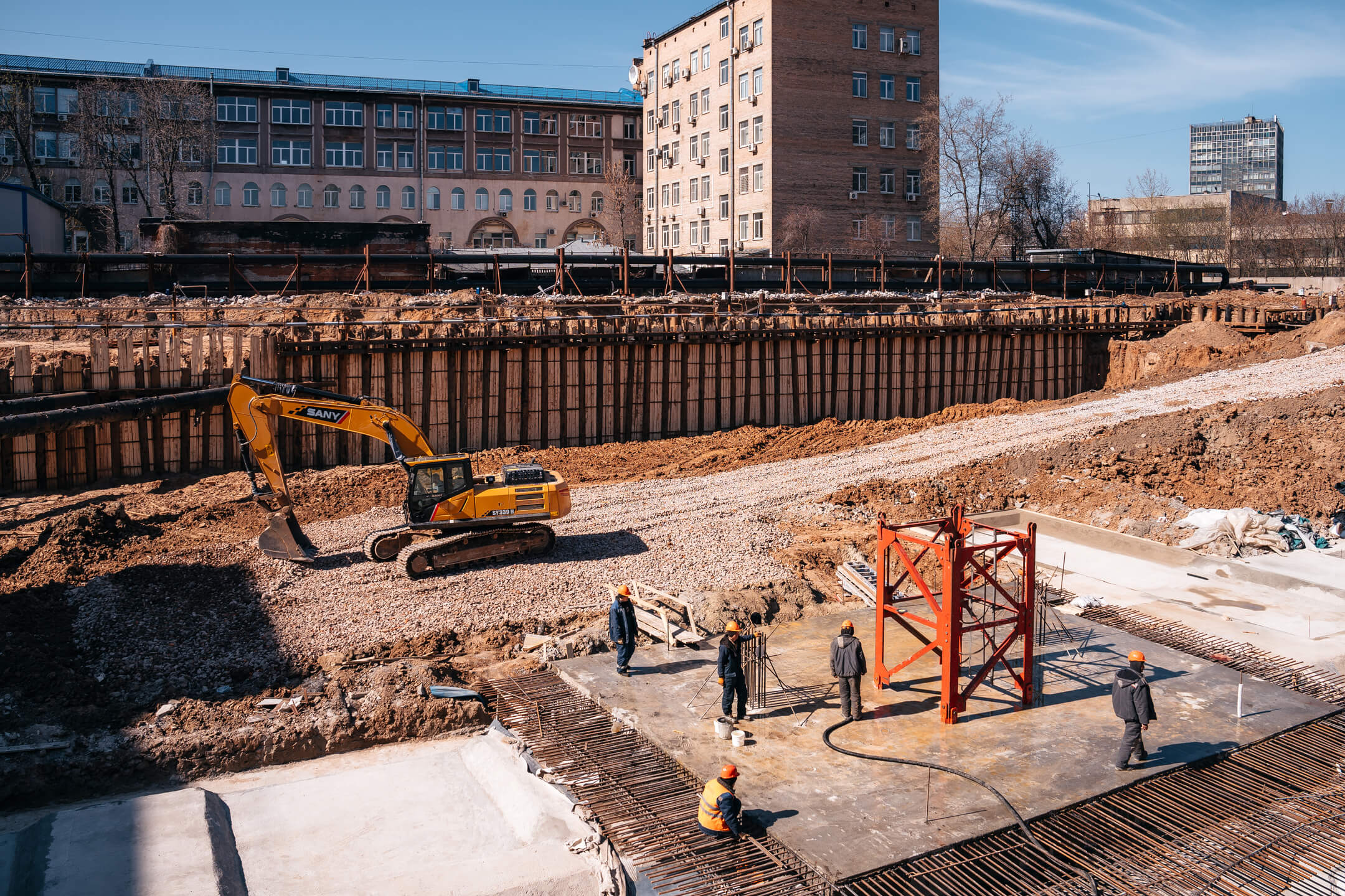 - Ведется разработка котлована под корпус 2 и паркинг.