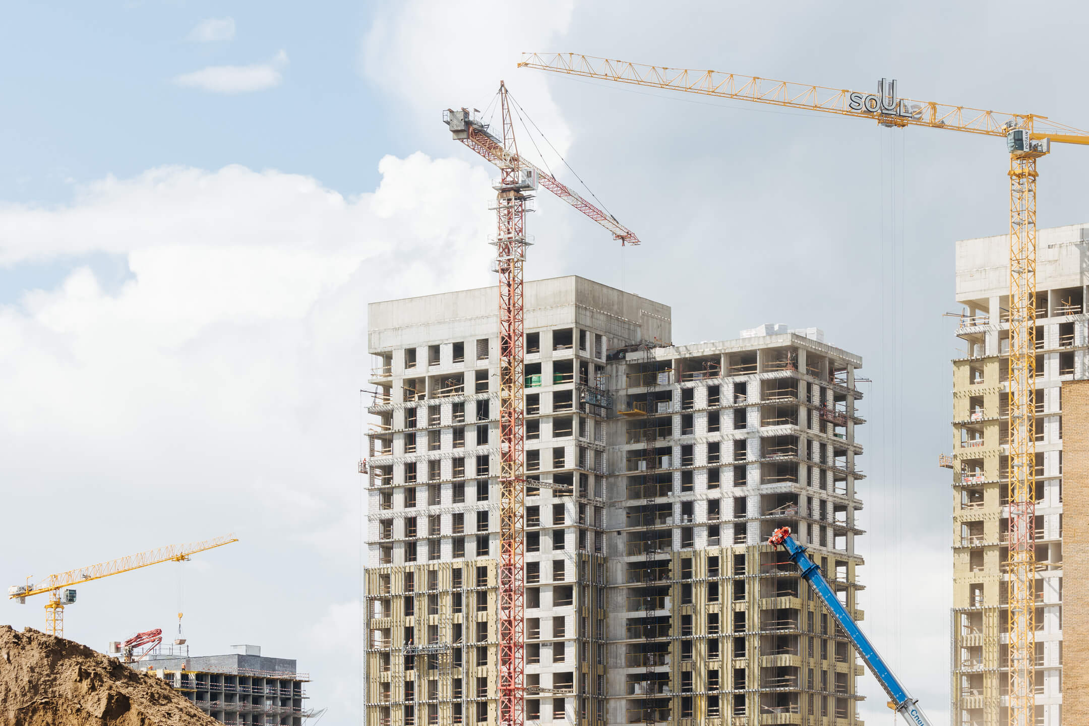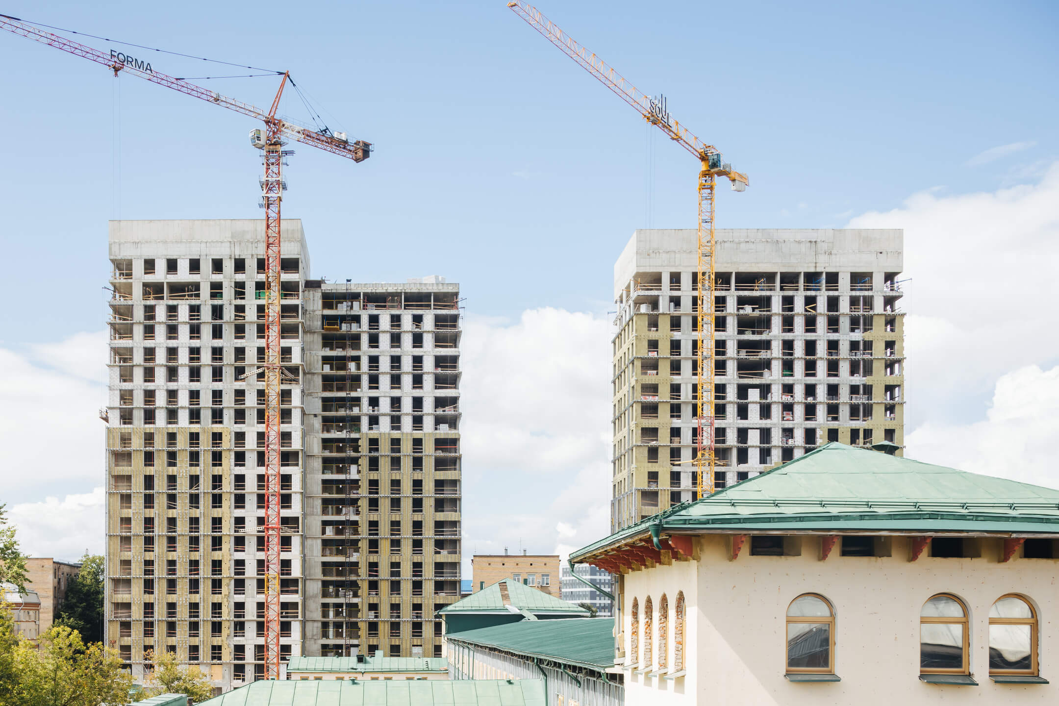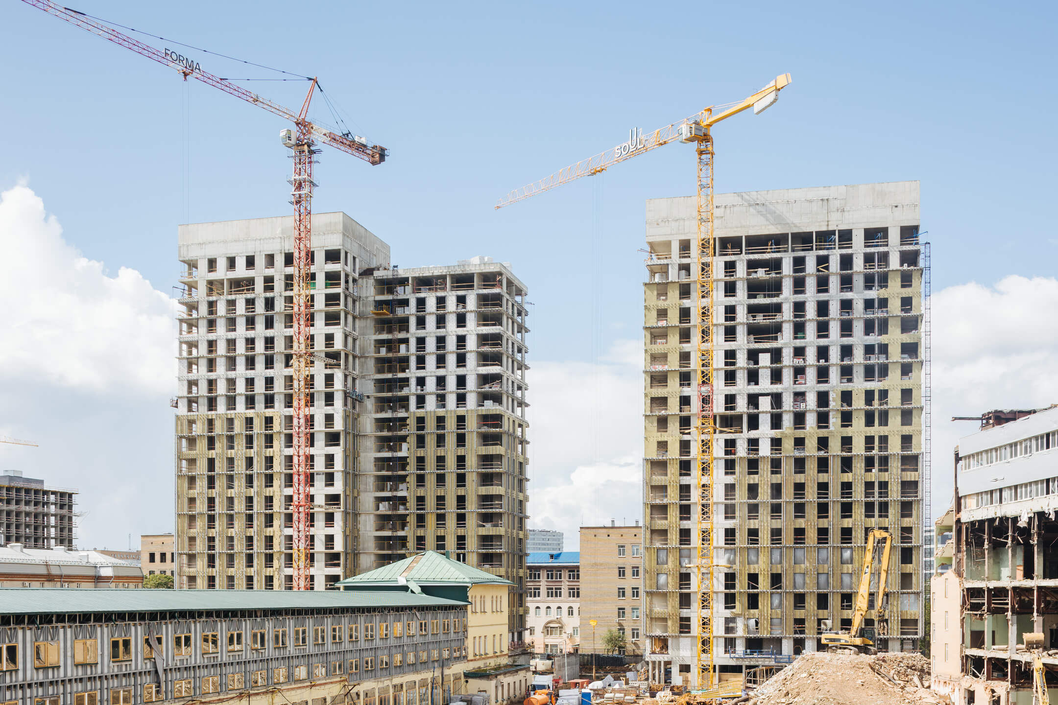 Этап 1.1 (корпус 2): Монтаж лестничных маршей 15 этажа. Ведутся каменные работы на 13-19 этажах. Ведутся отделочные работы на 3- 7 этажах. Продолжаются работы по устройству отопления, вентиляции, противопожарного водопровода в рамках внутренних инженерных систем, ведутся электромонтажные работы. Фасад: монтаж противопожарной отсечки, минераловатного утеплителя, подсистемы.