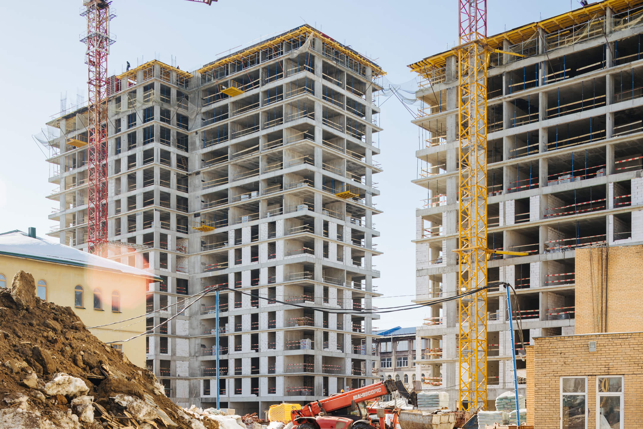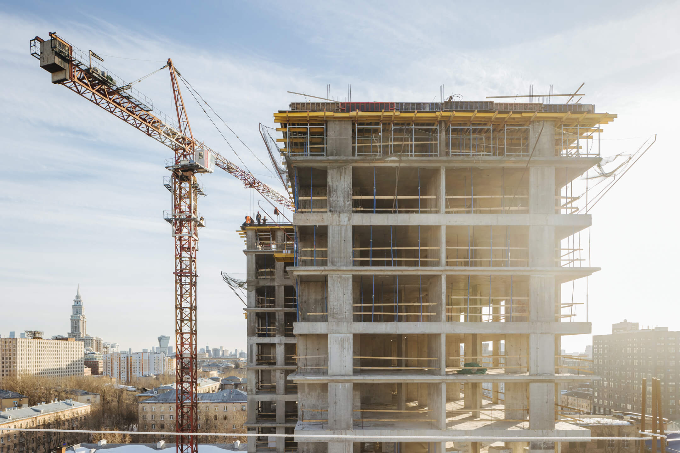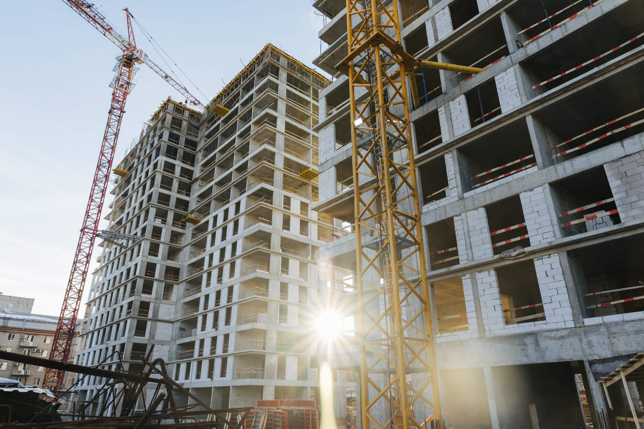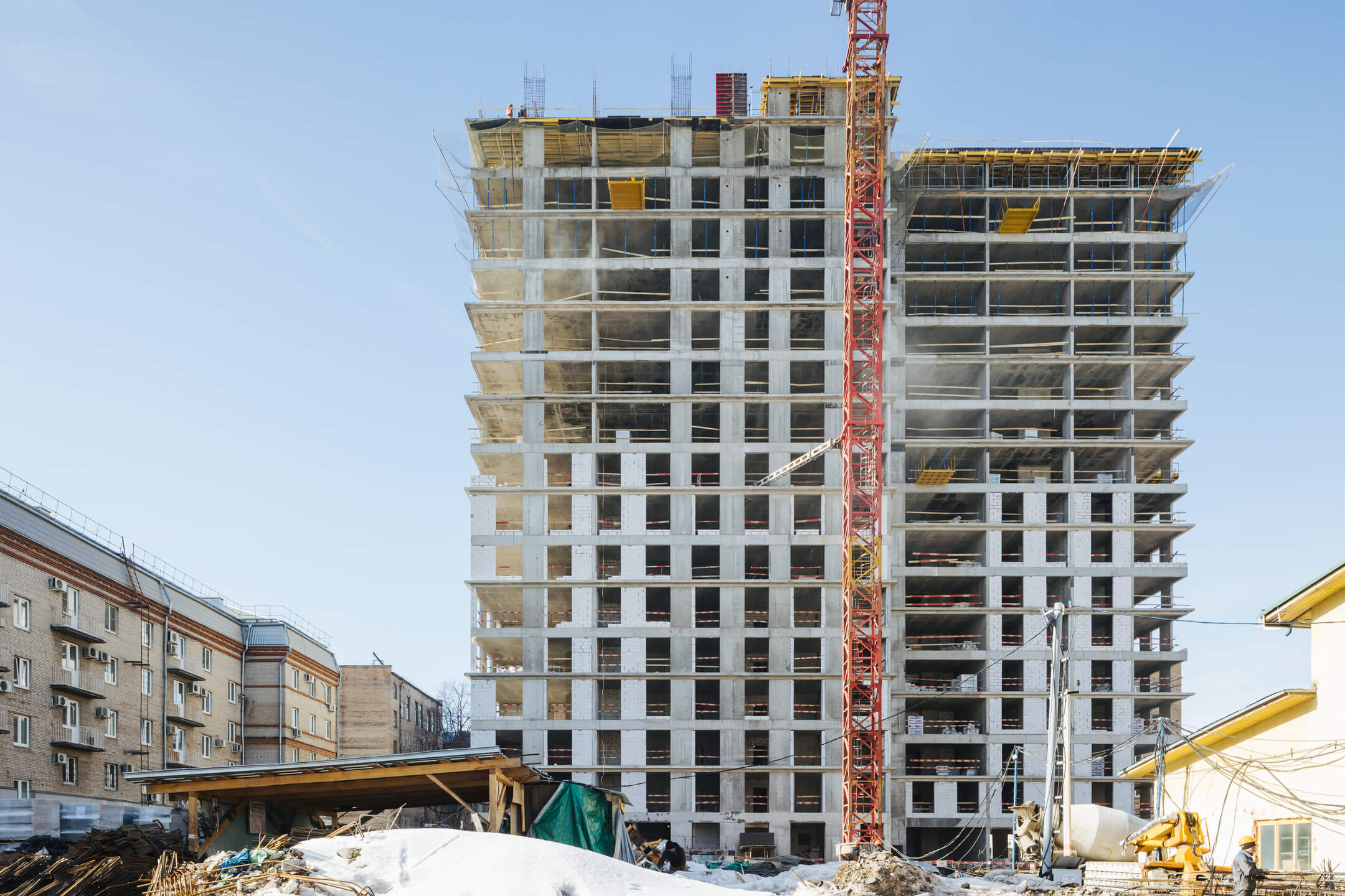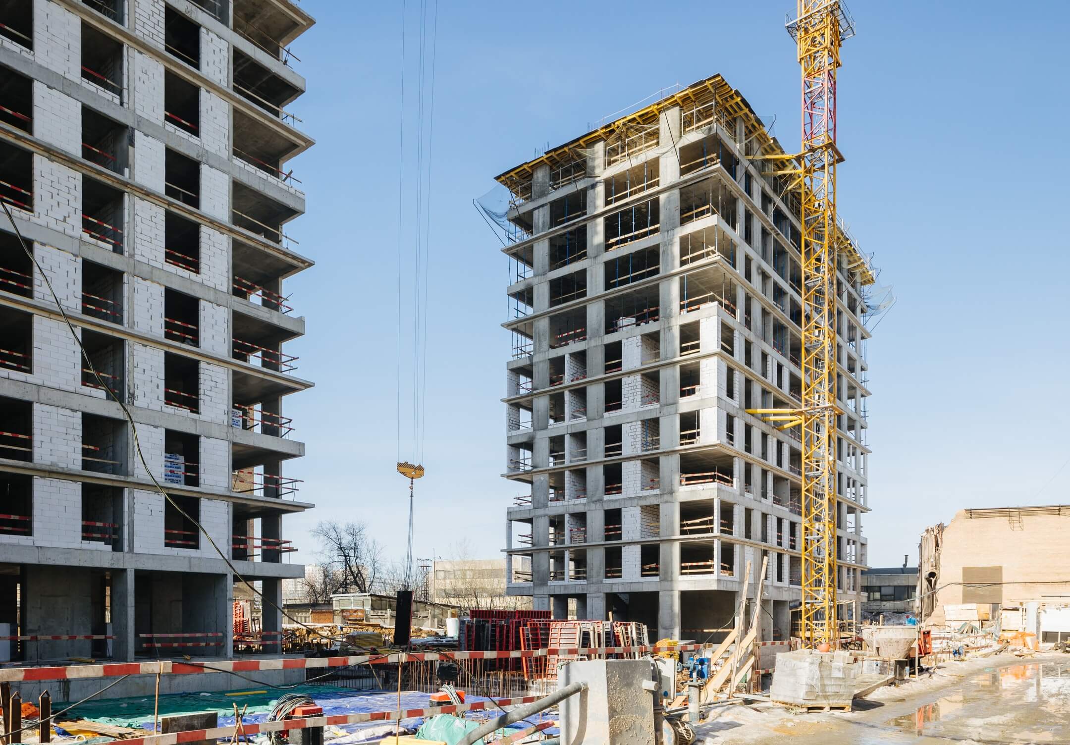 Этап 1.1. (корпус 2): работы по армированию/бетонированию плиты перекрытия 12 этажа и стен 13 этажа и кладочные работы на 2-8 этажах, мобилизация фасадной организации.