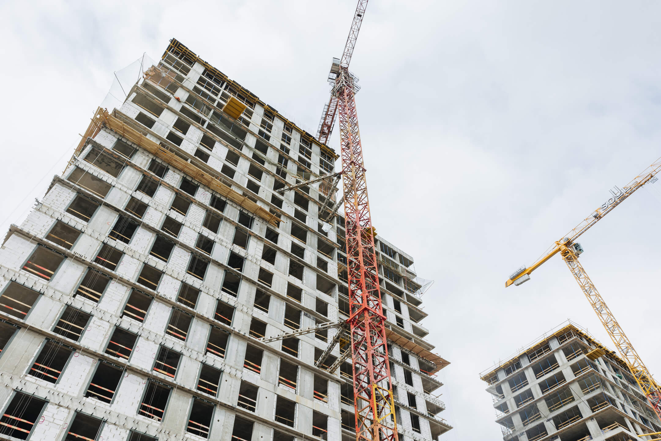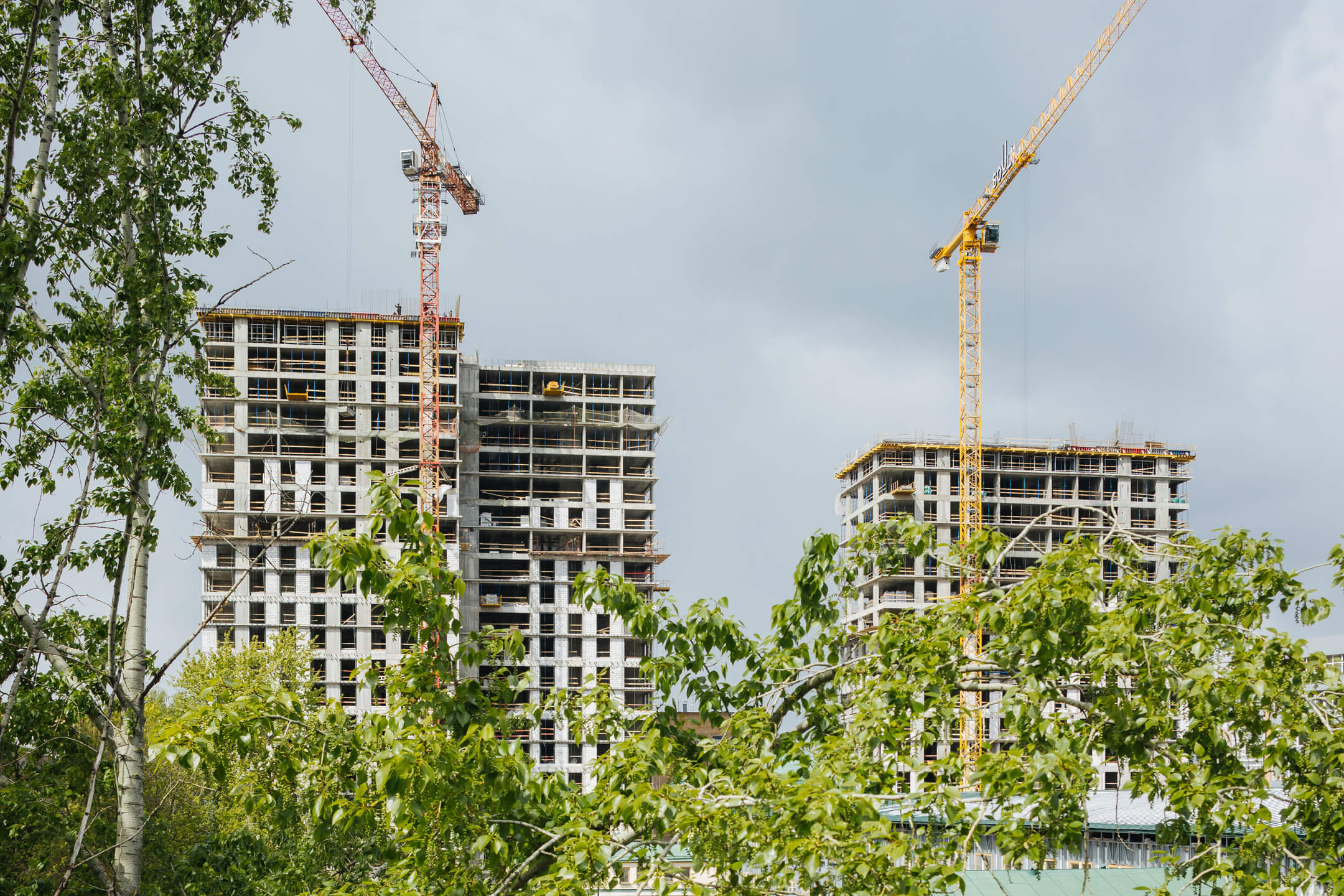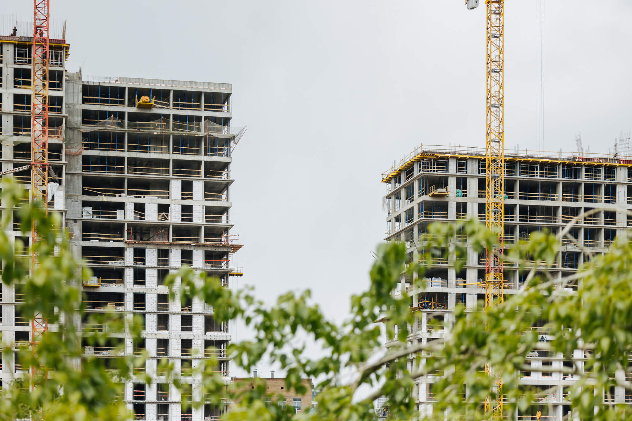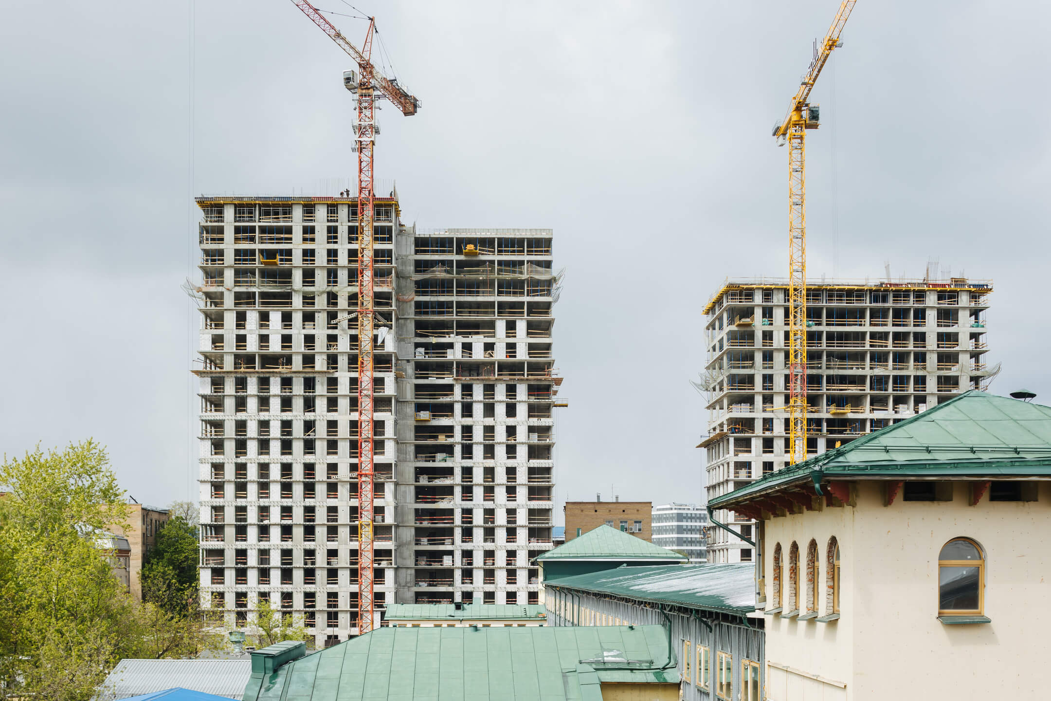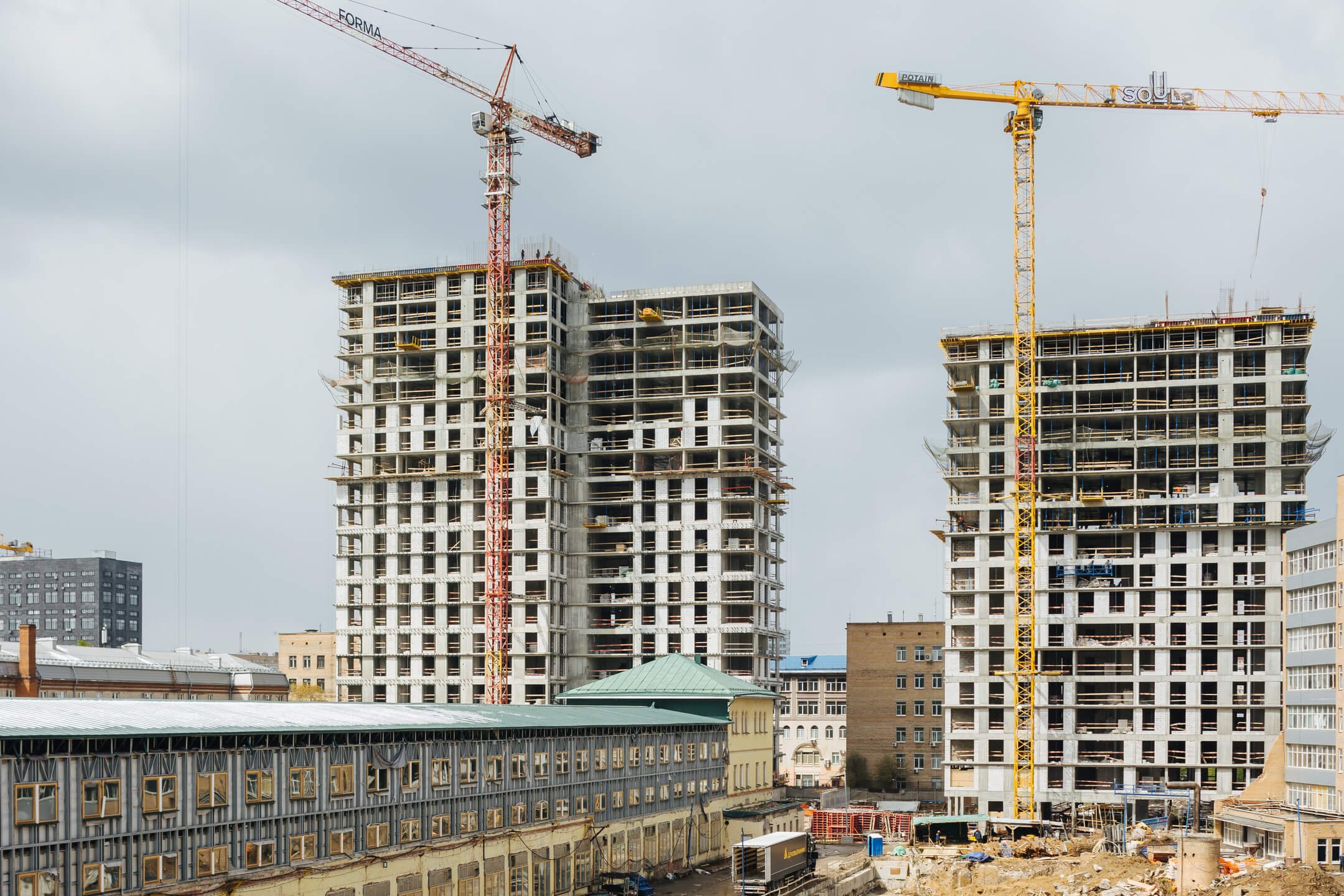 Этап 1.1 (паркинг): армирование/бетонирование стен и покрытия паркинга и рампы. Гидроизоляция наружных стен и кровли стилобата, устройство пристенного дренажа, прокладка наружных инженерных систем. Отсыпка пазух котлована, кладка стен и перегородок подземного этажа. Старт работ по устройству отопления, вентиляции, противопожарного водопровода.