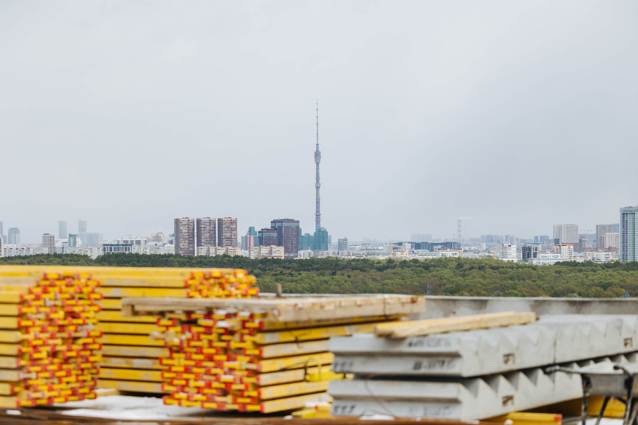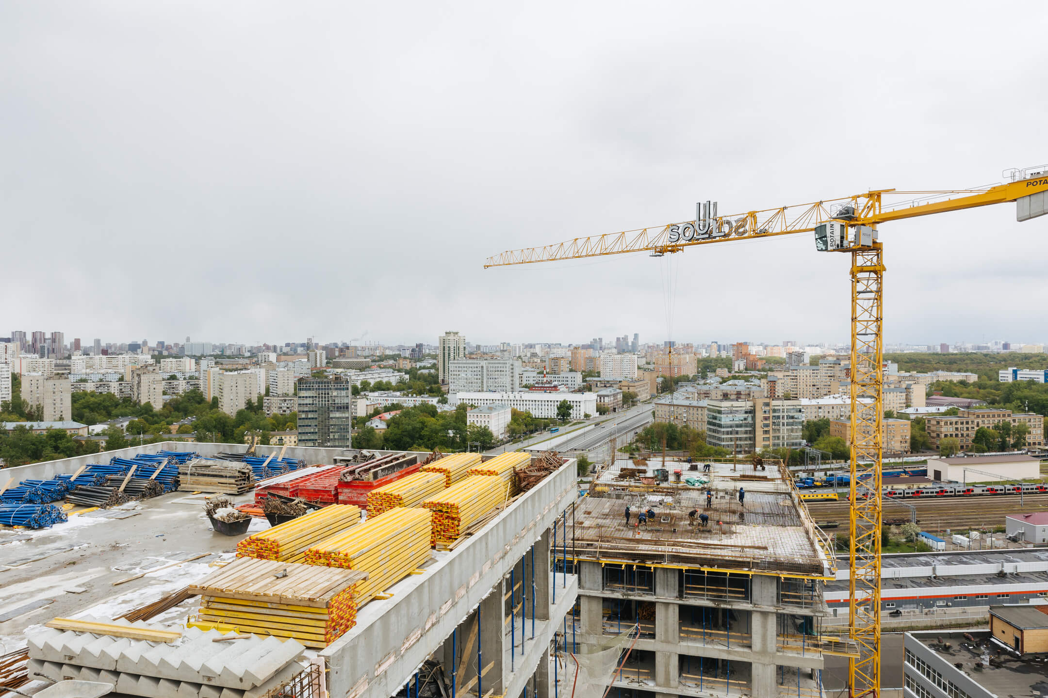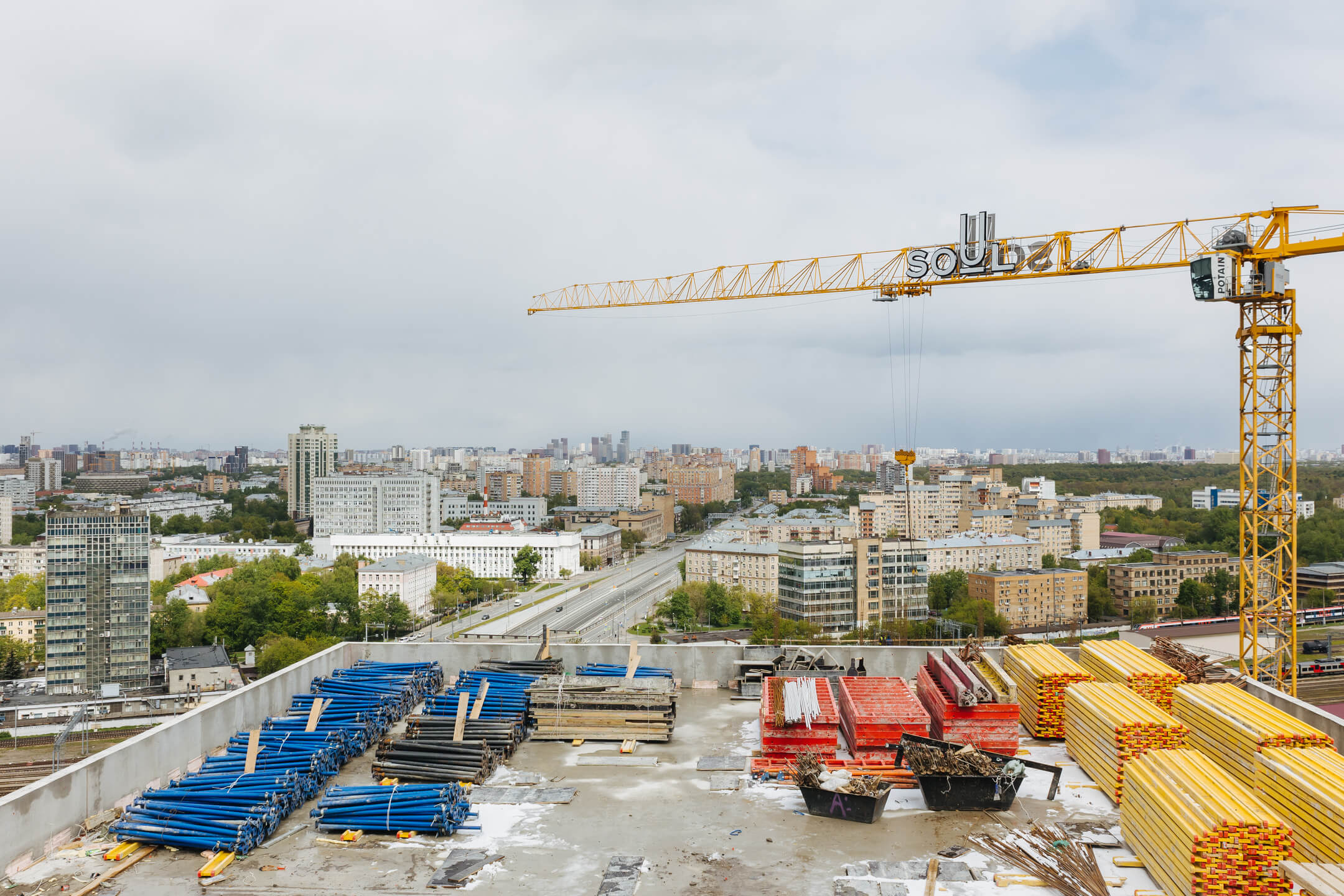 Этап 1.1 (корпус 1): армирование/бетонирование плиты перекрытия технического этажа, монтаж лестничных маршей на 18-20 этажах, каменные работы на 10-16 этажах. Ведутся работы по устройству отопления, вентиляции, противопожарного водопровода в рамках внутренних инженерных систем. Фасад: монтаж противопожарной отсечки.