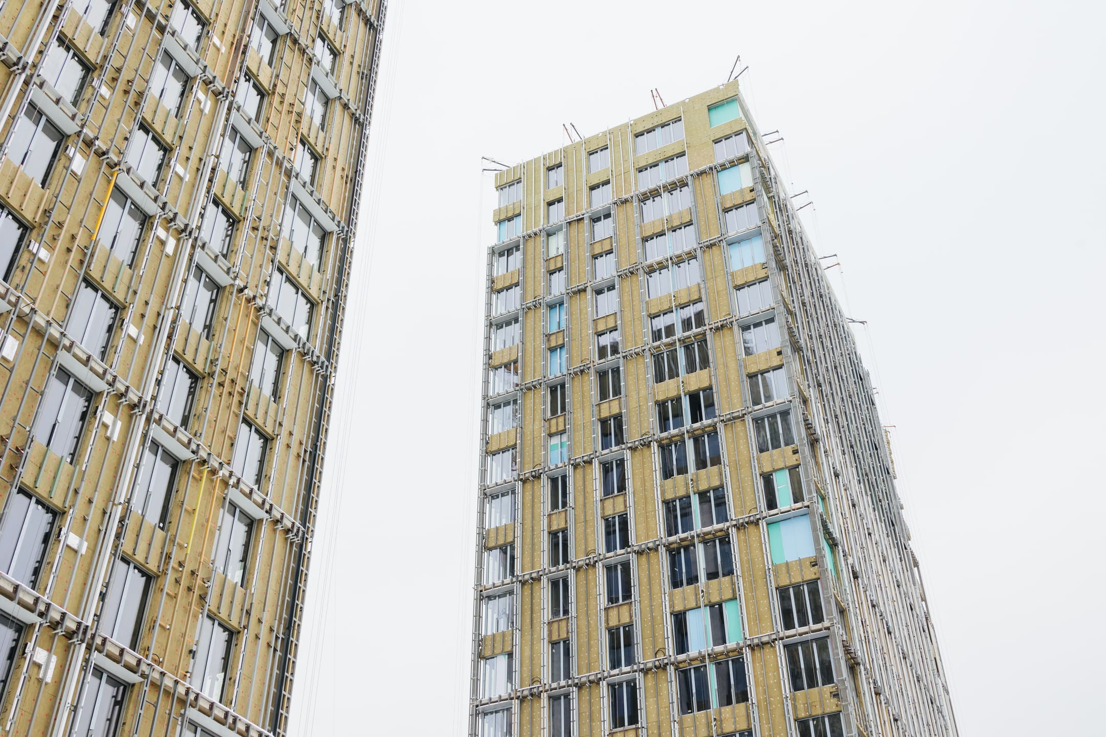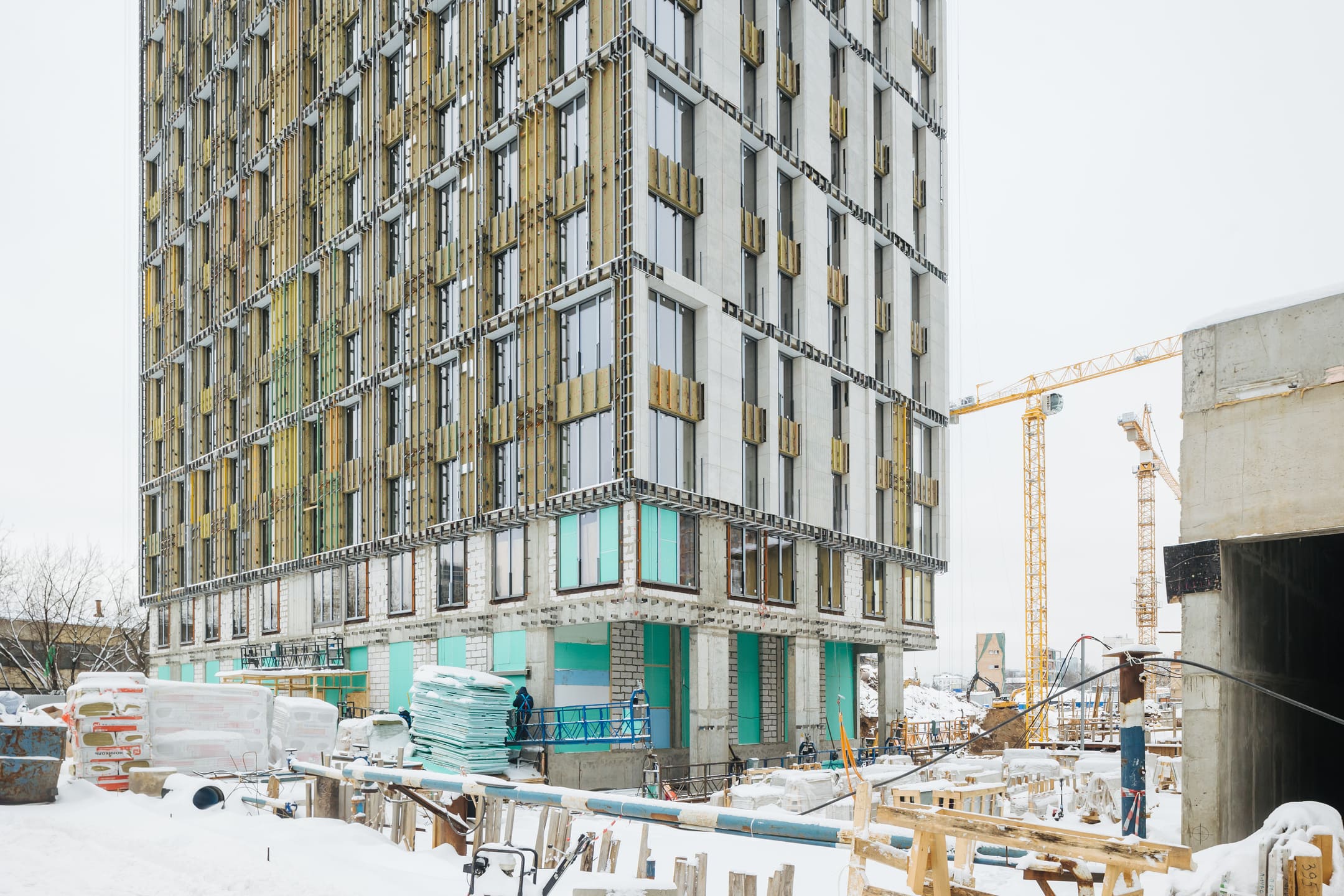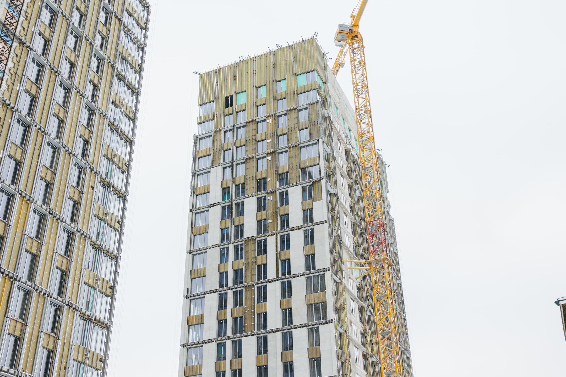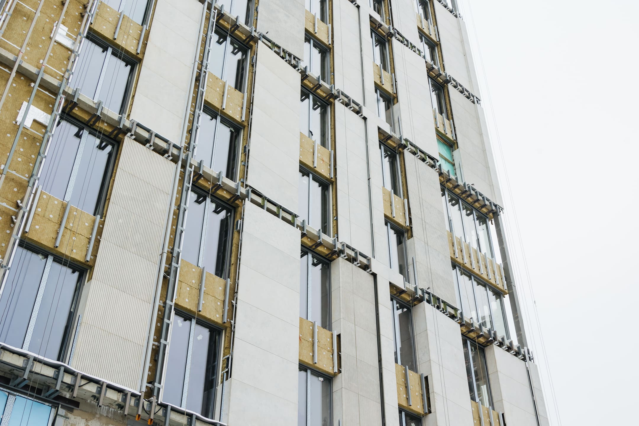 - Фасад. Монтаж минераловатного утеплителя. Монтаж подсистемы. Монтаж облицовки из натурального камня. Монтаж окон типовых этажей.