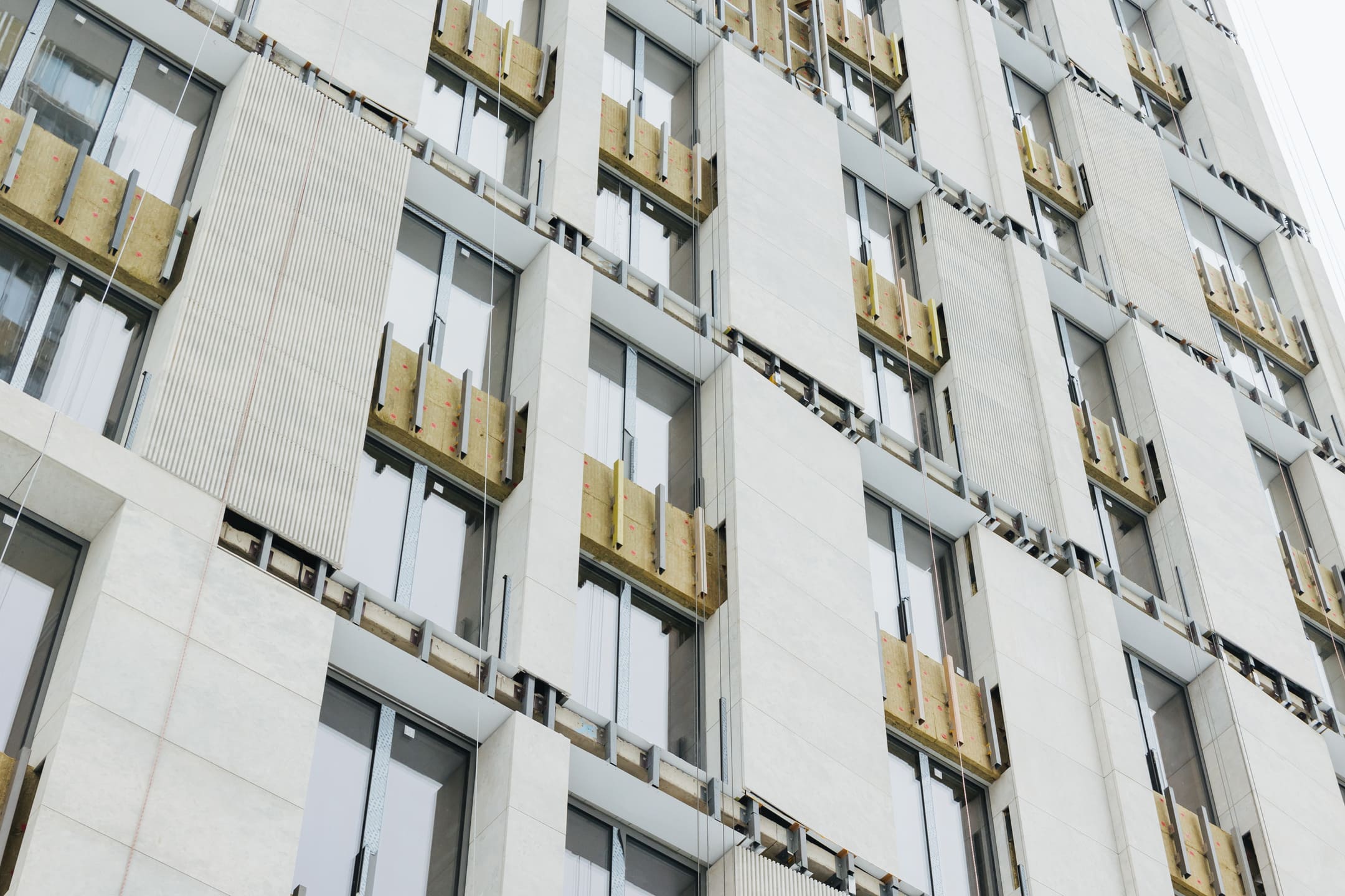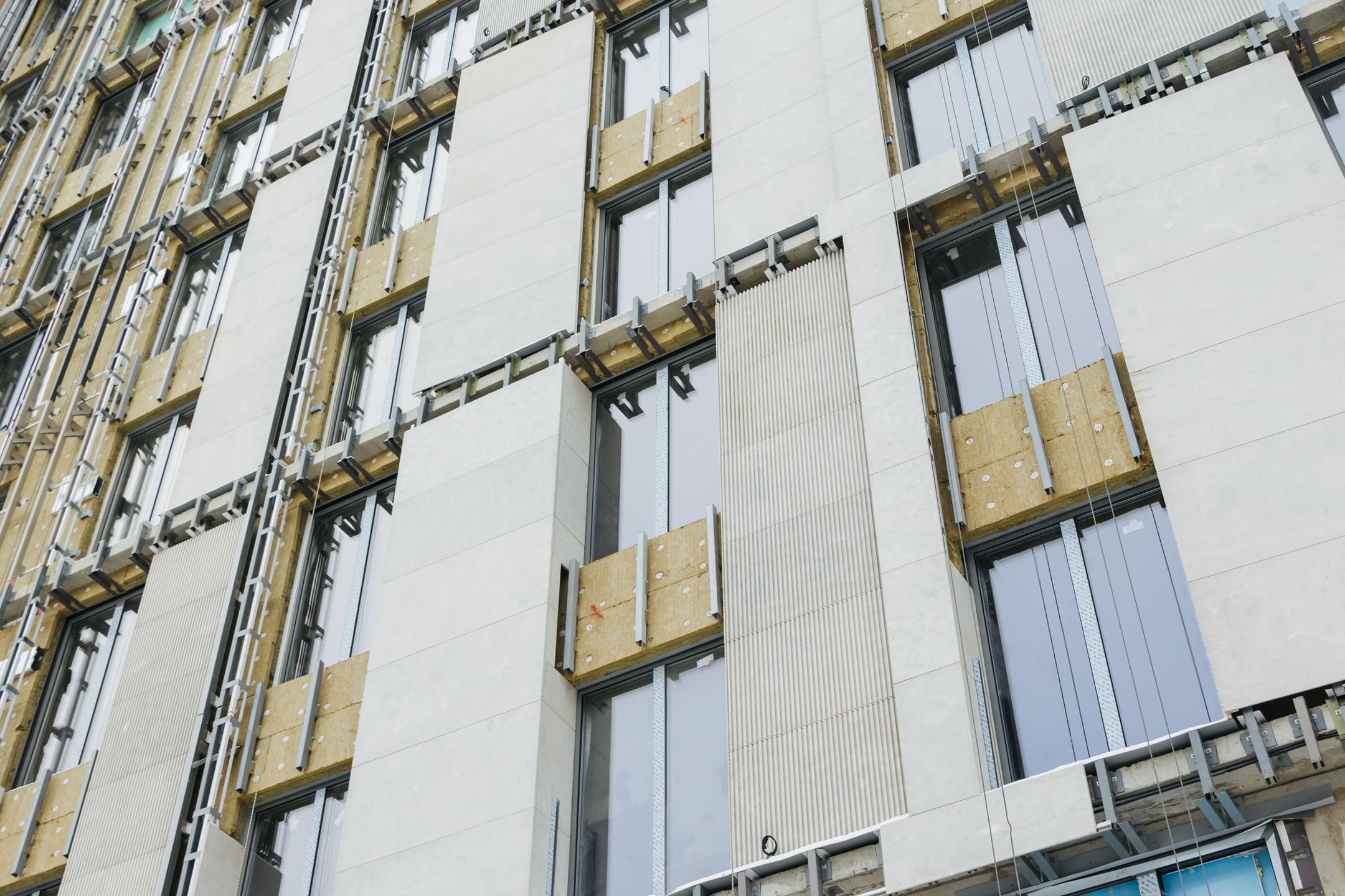 - Фасад. Монтаж минераловатного утеплителя. Монтаж подсистемы. Монтаж облицовки из натурального камня. Монтаж окон типовых этажей