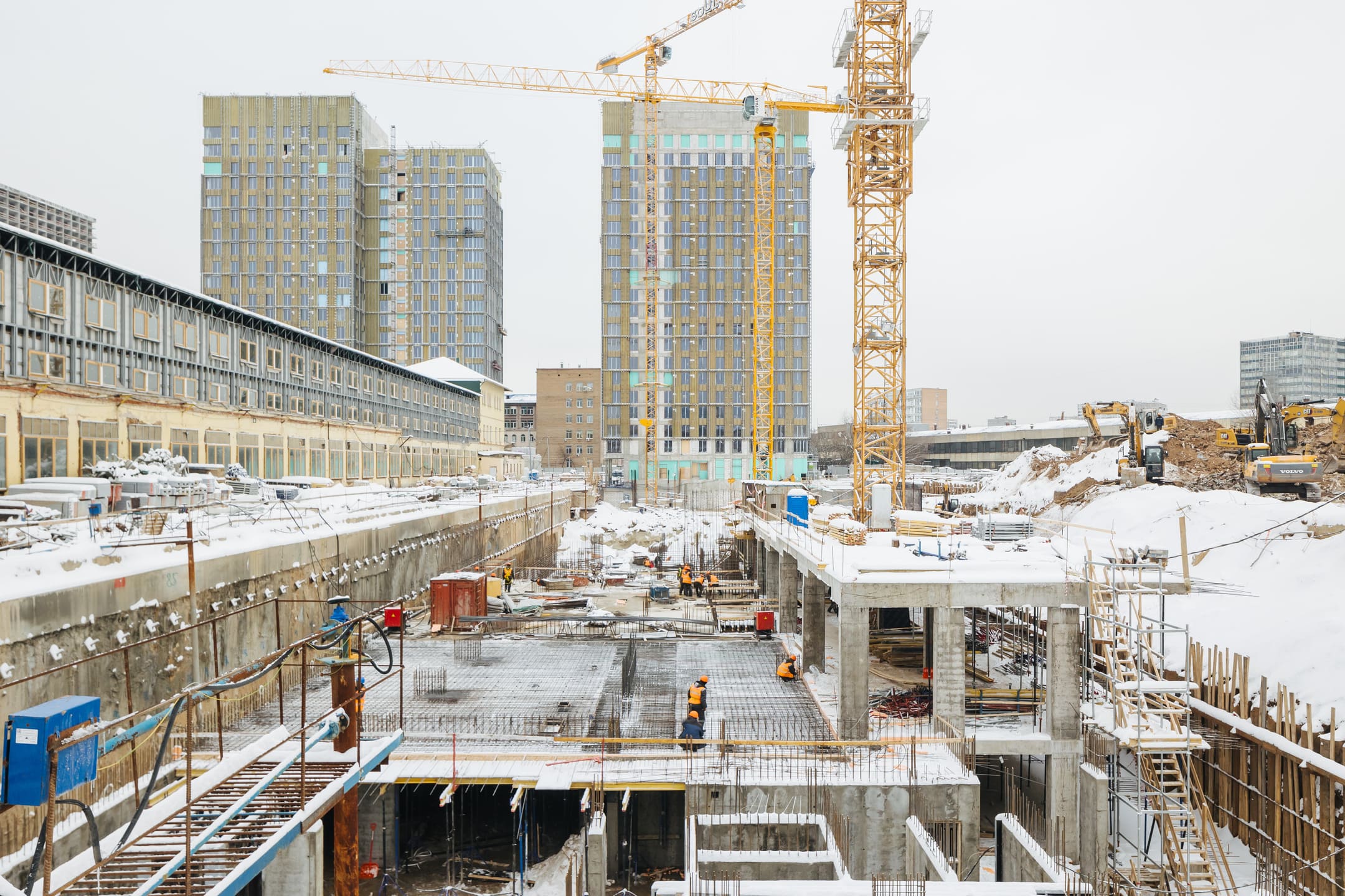 - Бетонирование плиты перекрытия паркинга −1 этажа
