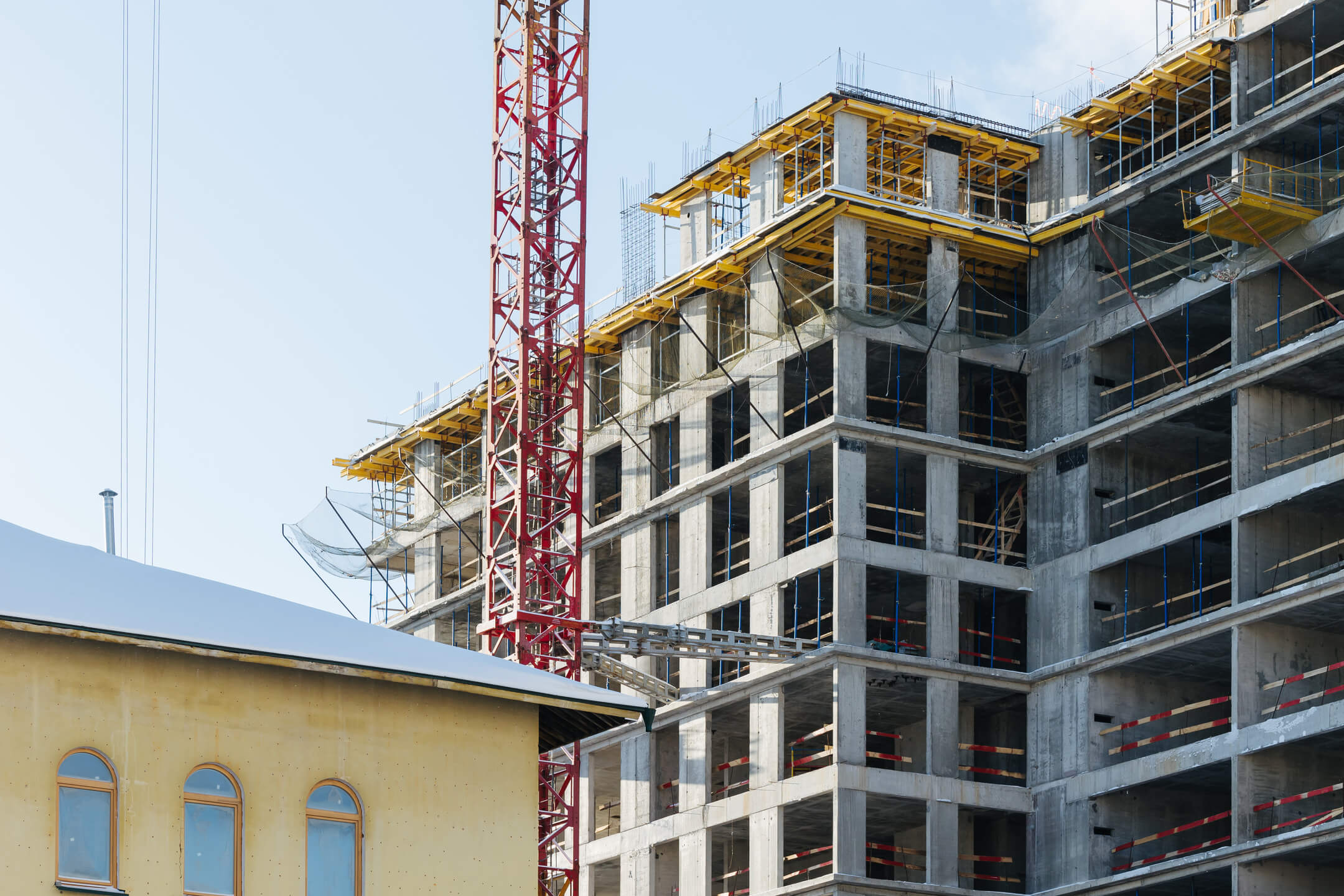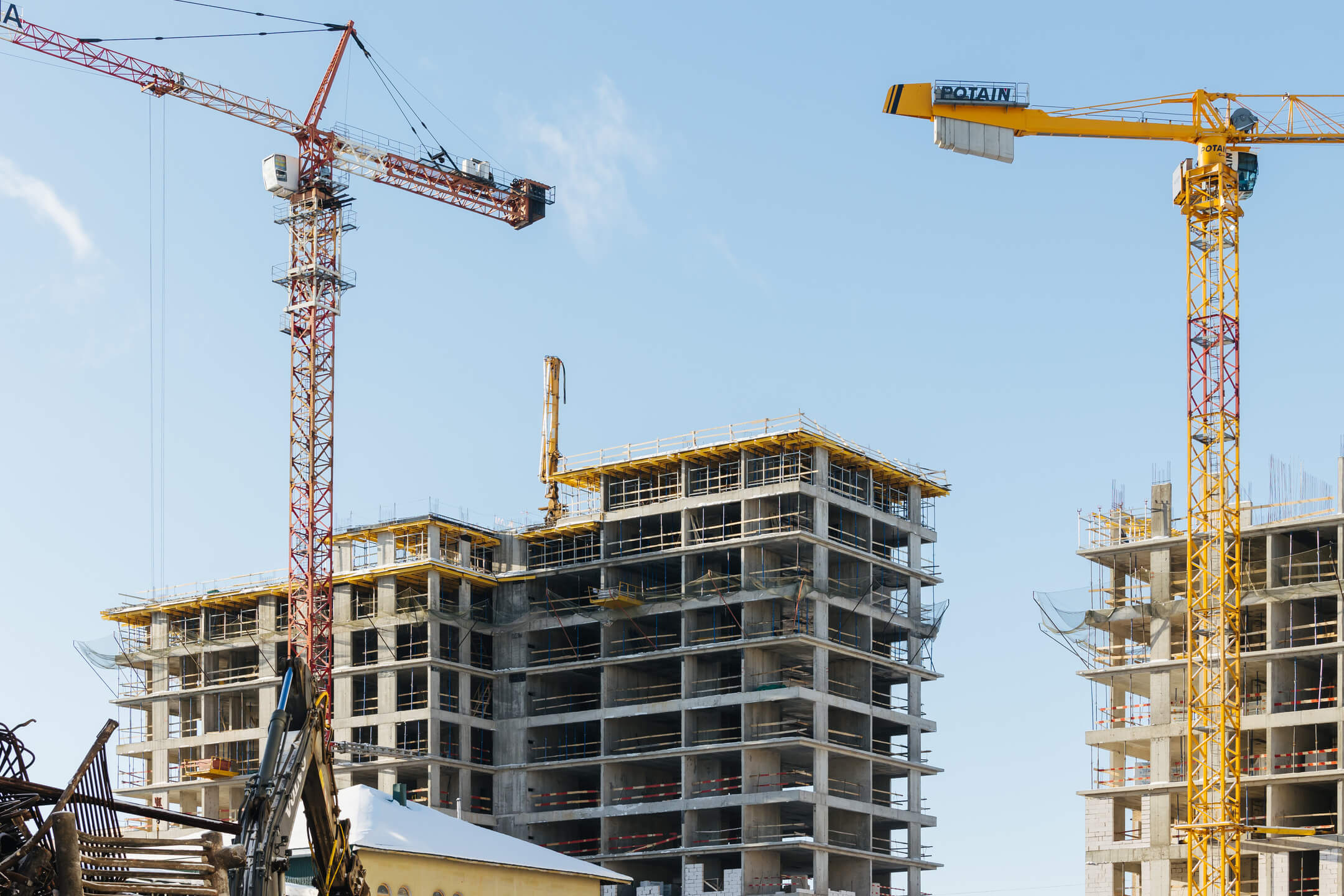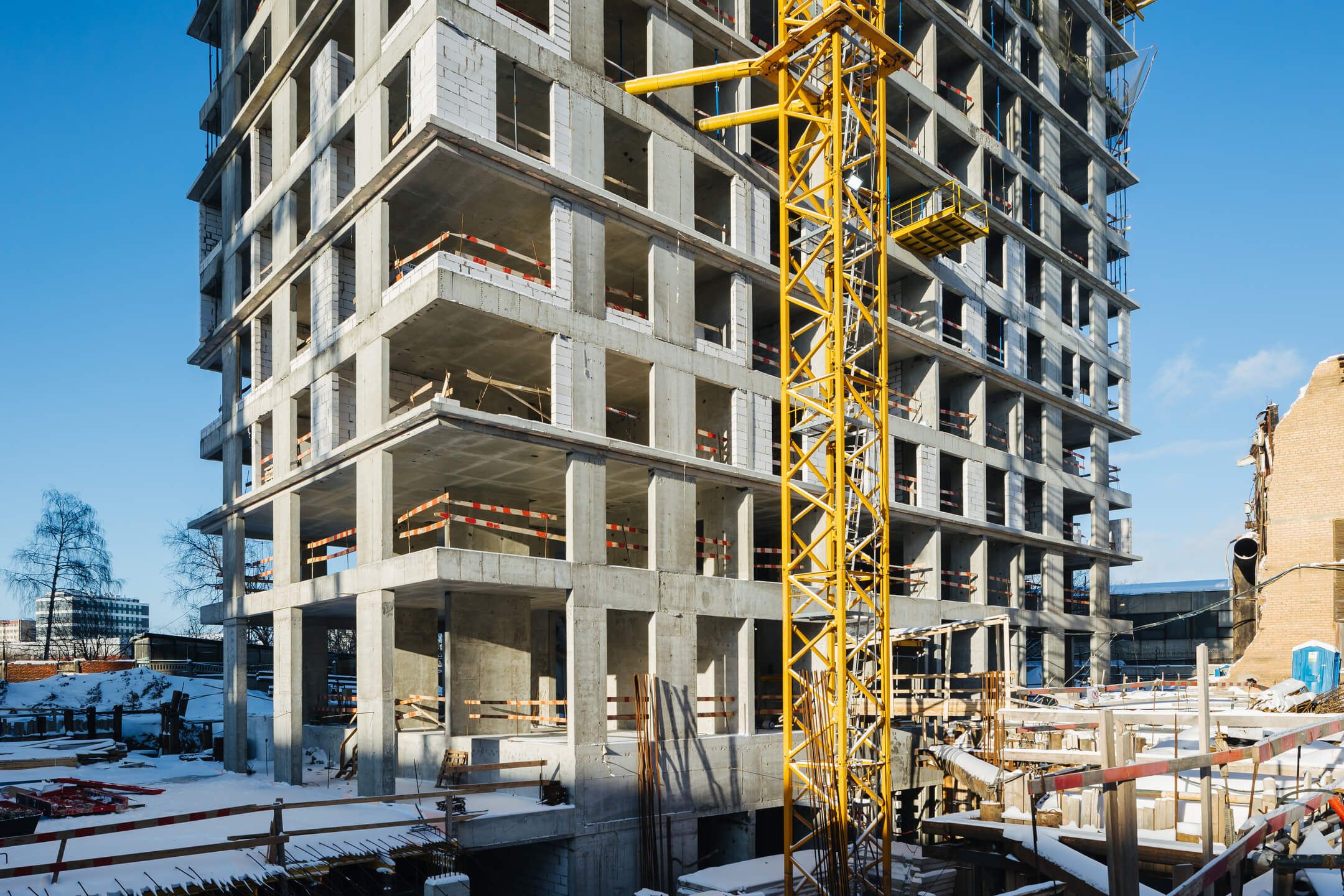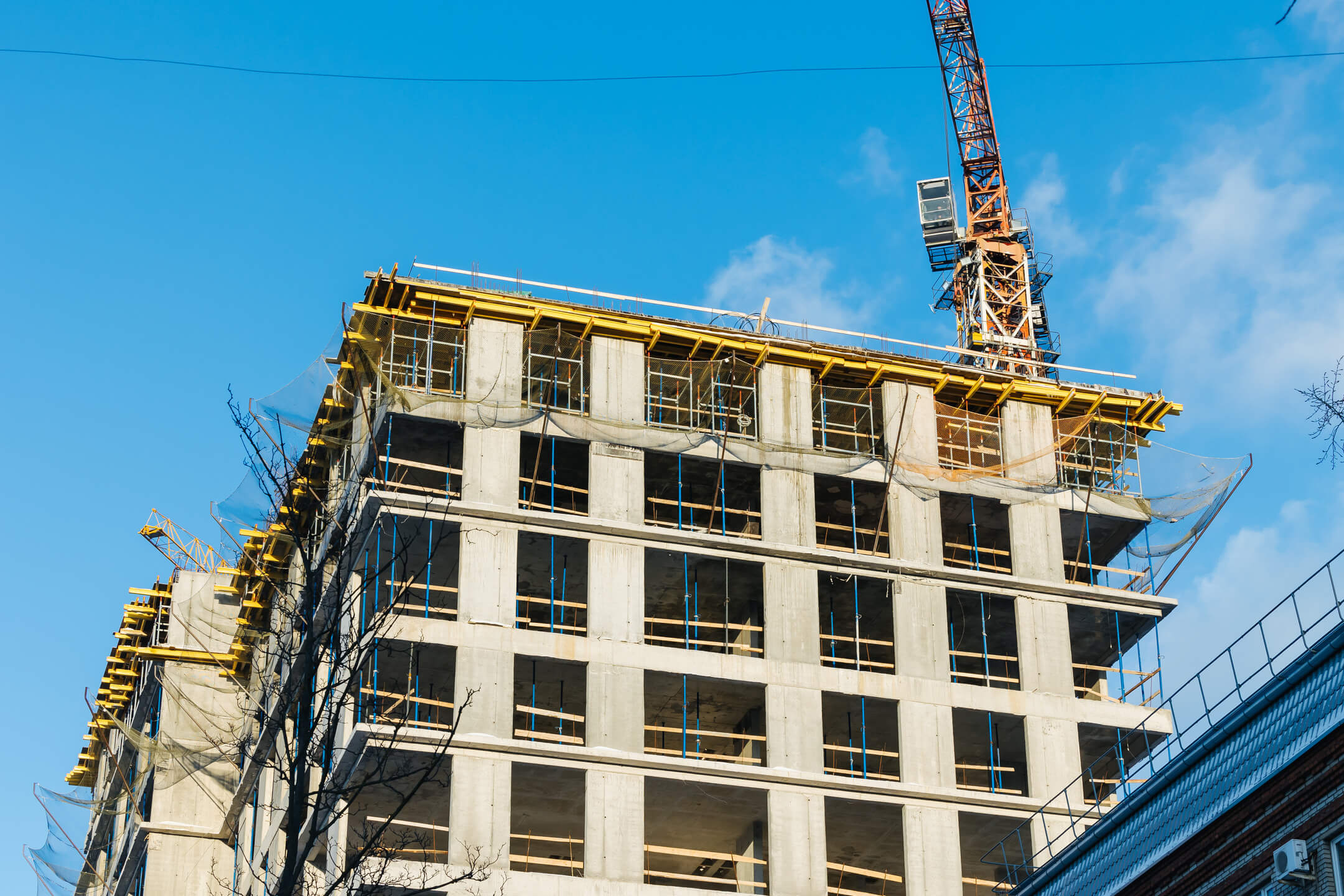 Этап 1.1 (корп. 1 и 2): ведутся работы по армированию/бетонированию плит перекрытия 11-13 этажей и вертикальных конструкций 12-14 этажей, а также кладочные работы на 2, 3, 4, 5, 6 этажах.