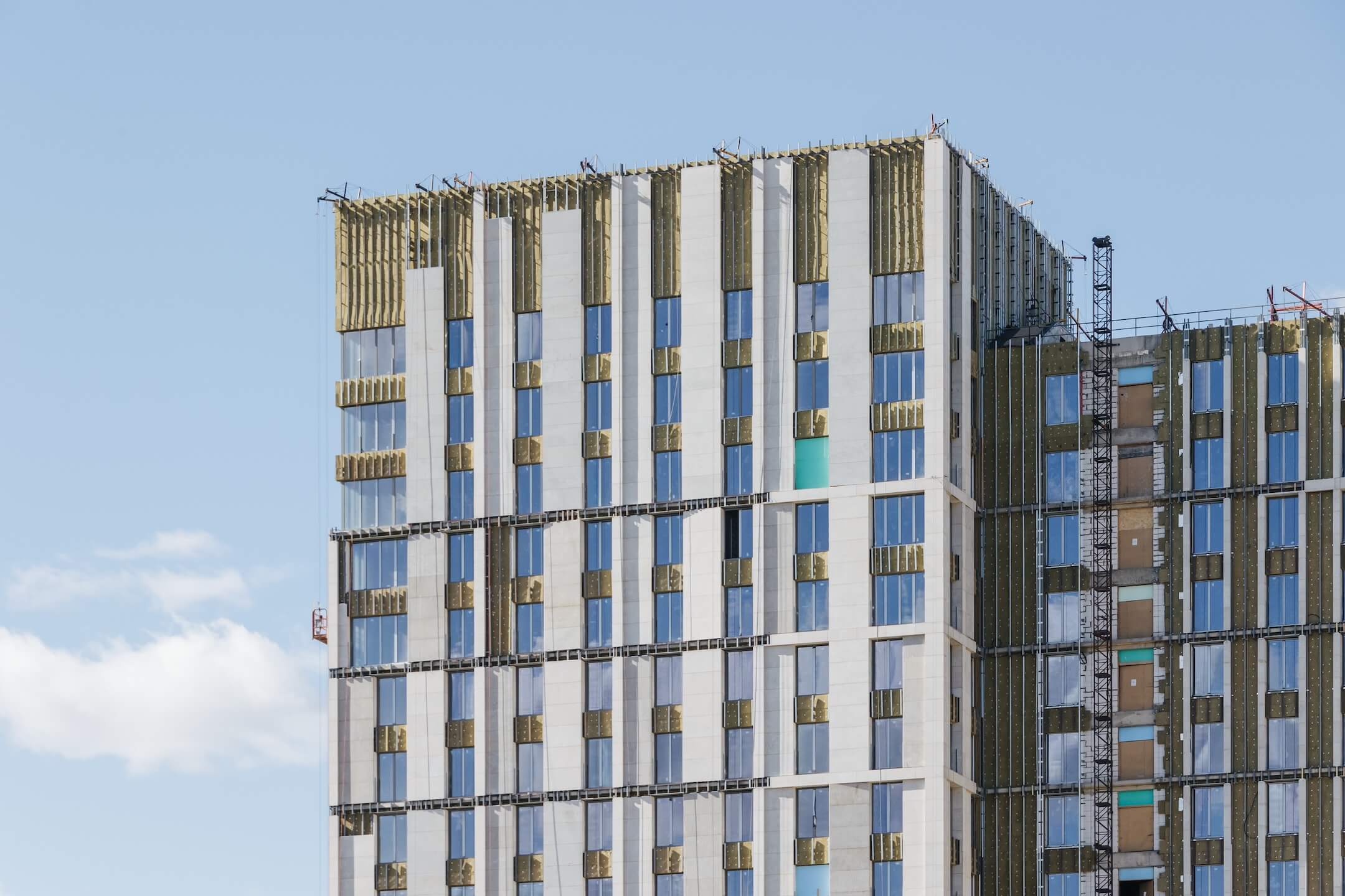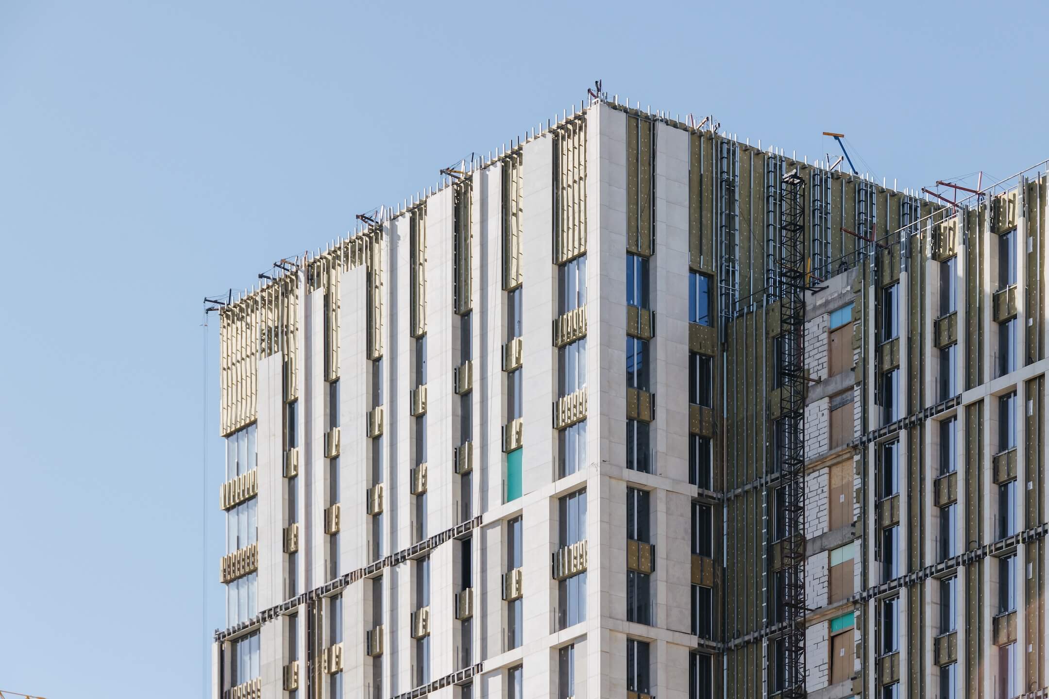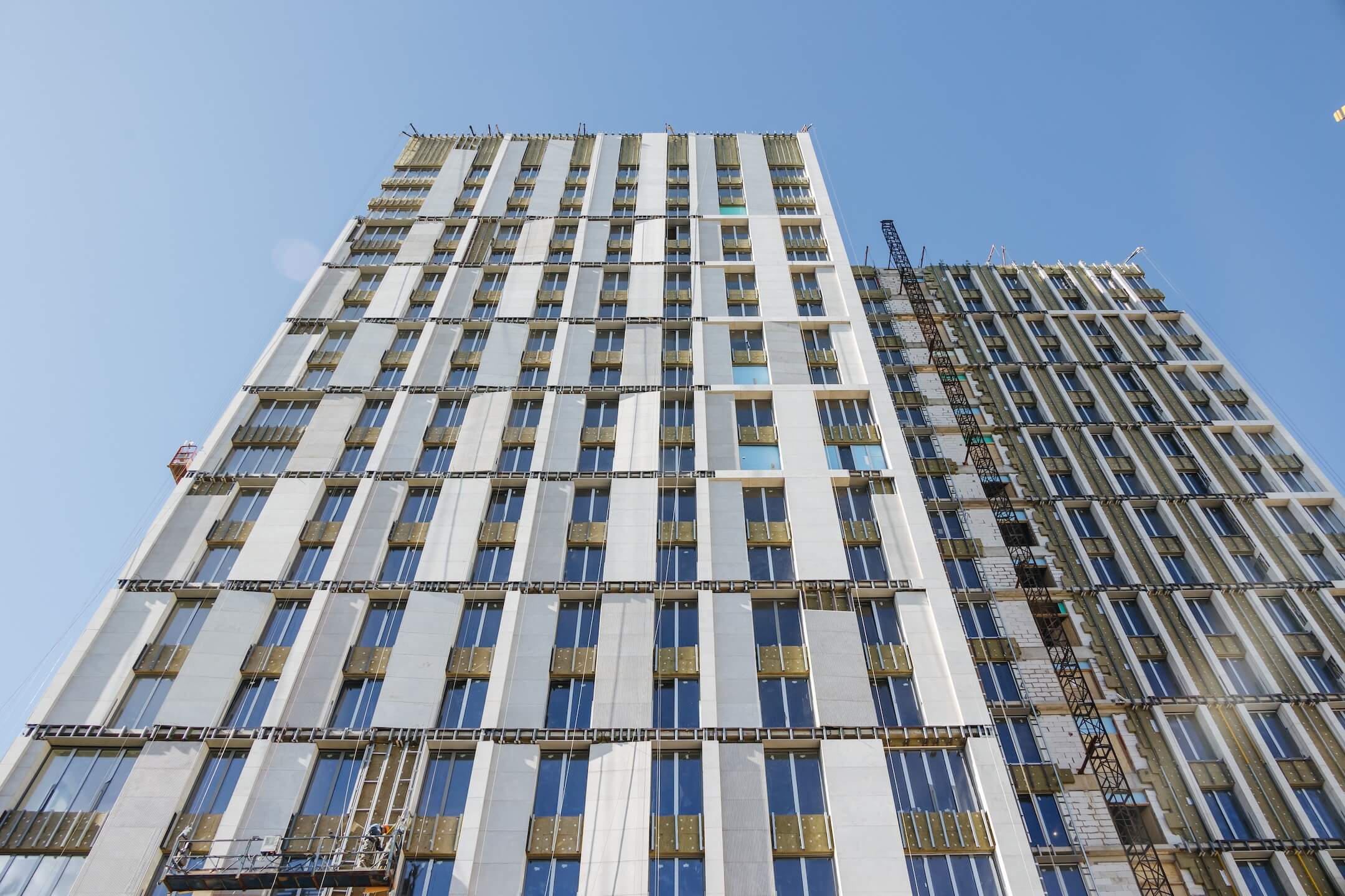 - Фасад. Монтаж минераловатного утеплителя. Монтаж подсистемы. Монтаж облицовки из натурального камня. Монтаж окон типовых этажей.
