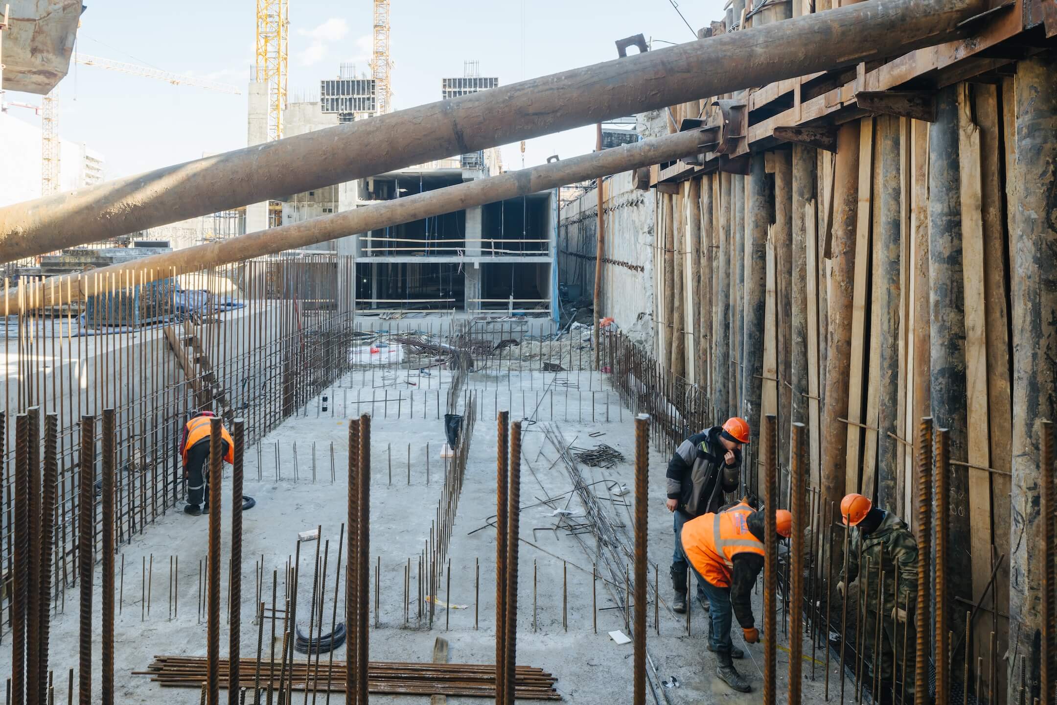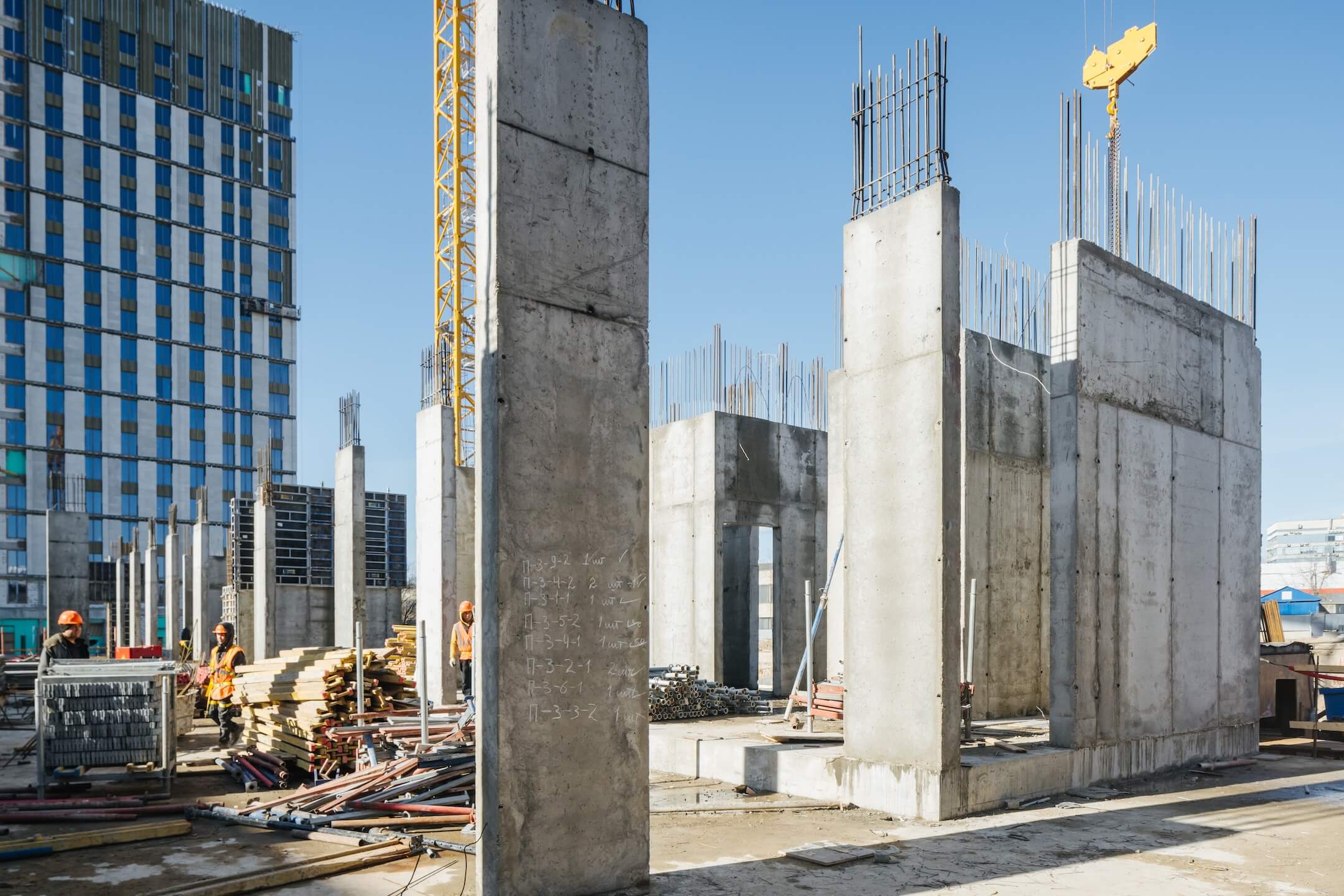 - Бетонирование вертикальных конструкций паркинга 1 этажа