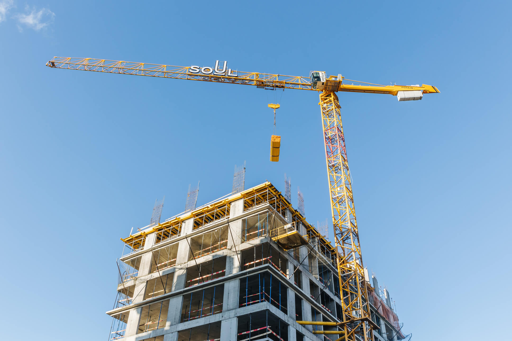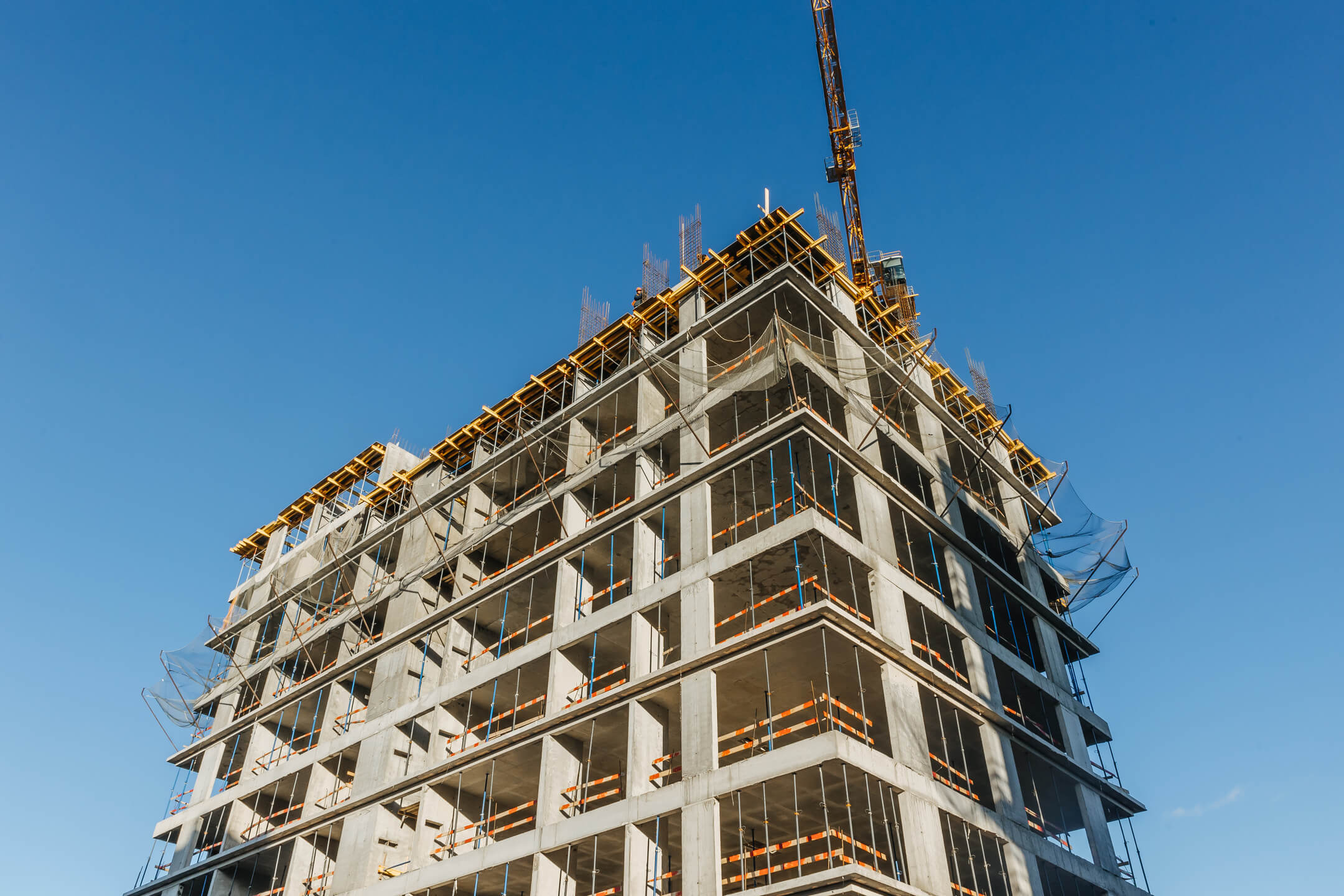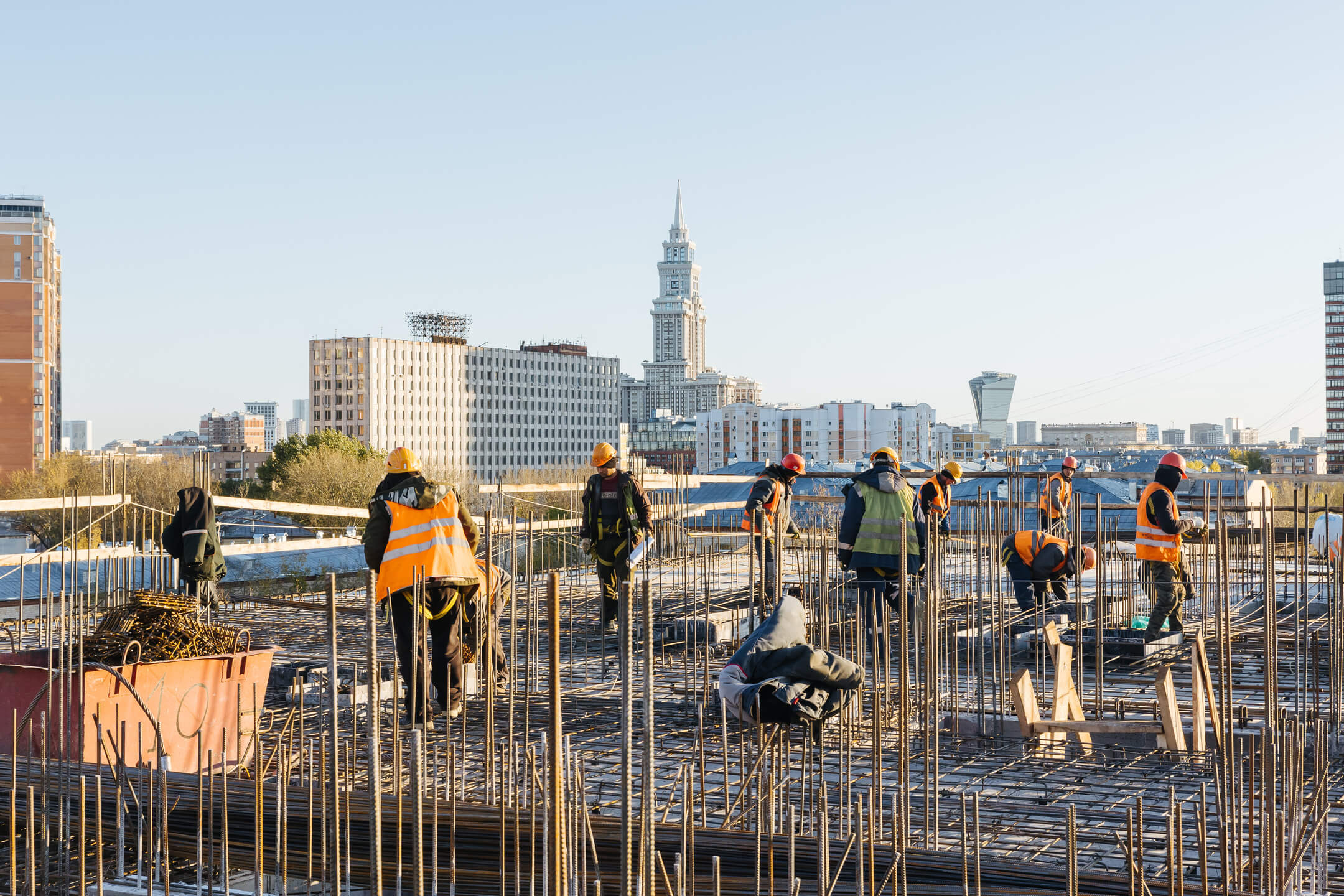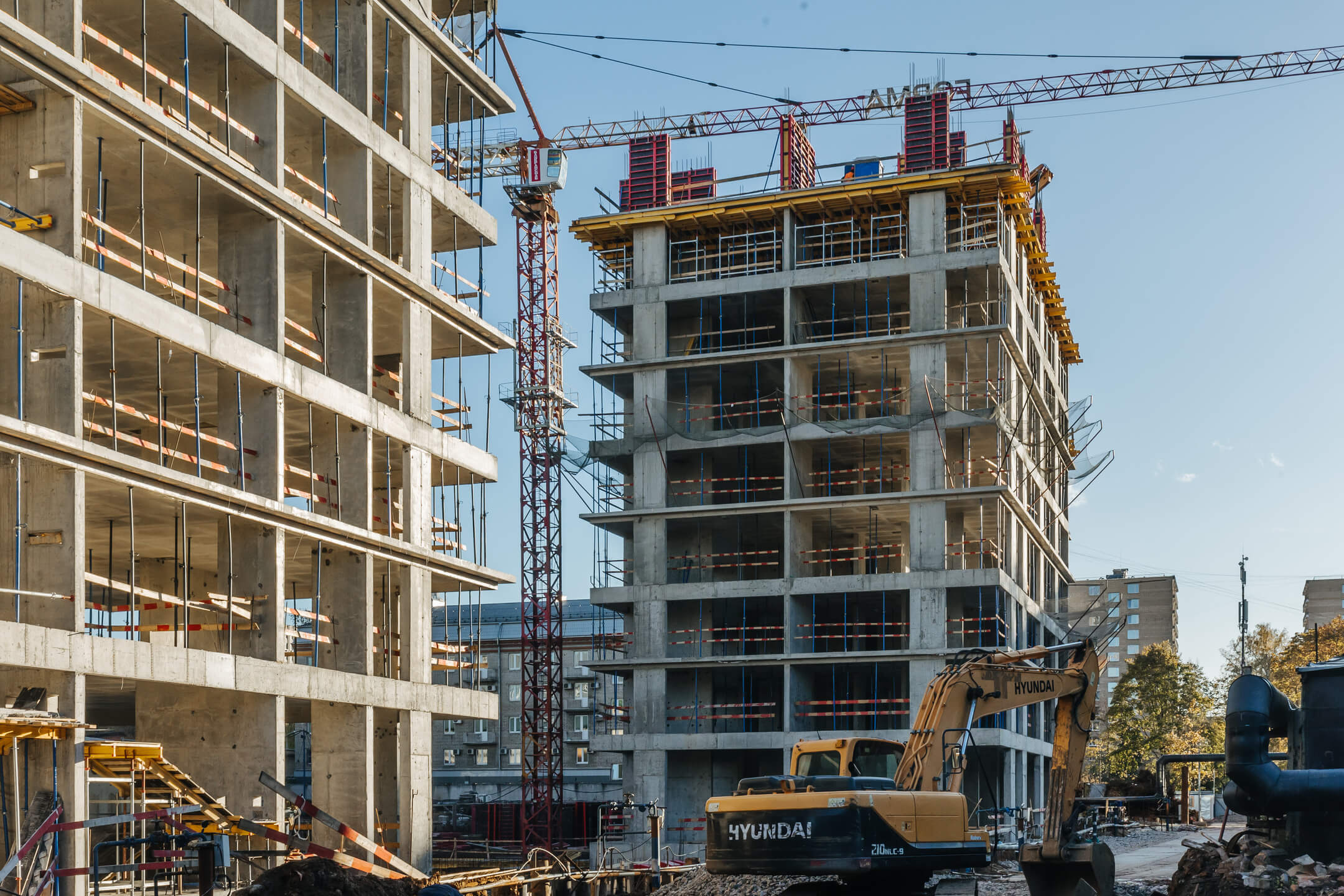 - Корпус 1: ведутся работы по армированию/бетонированию стен 9 этажей;