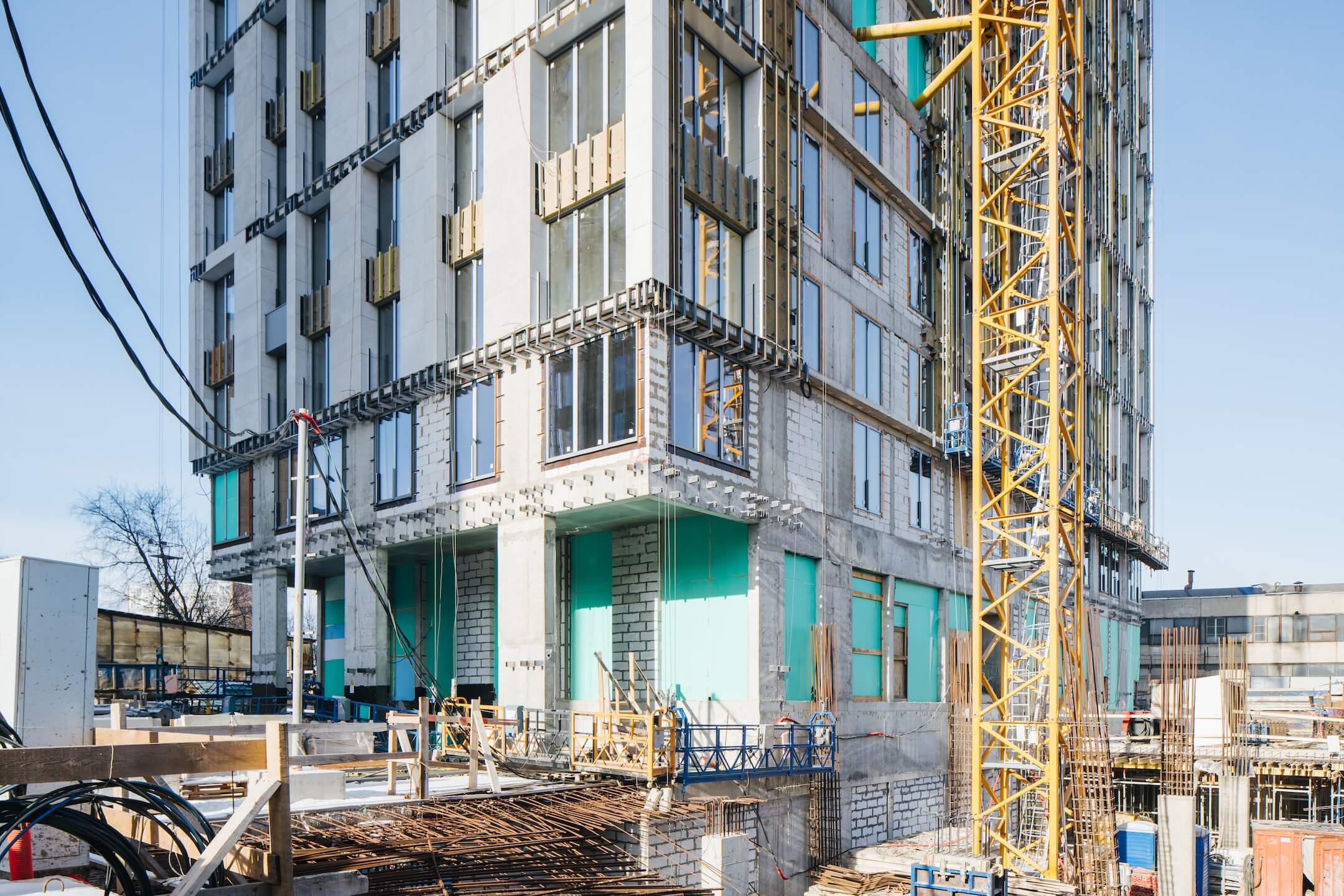 - Фасад. Монтаж минераловатного утеплителя. Монтаж подсистемы. Монтаж облицовки из натурального камня. Монтаж окон типовых этажей