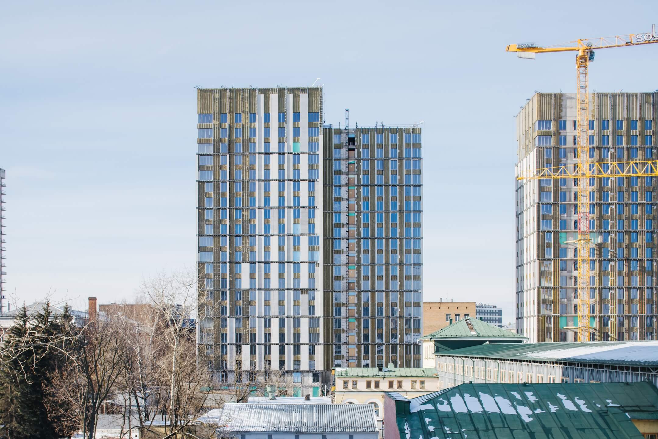 - Фасад. Монтаж минераловатного утеплителя. Монтаж подсистемы. Монтаж облицовки из натурального камня. Монтаж окон типовых этажей.