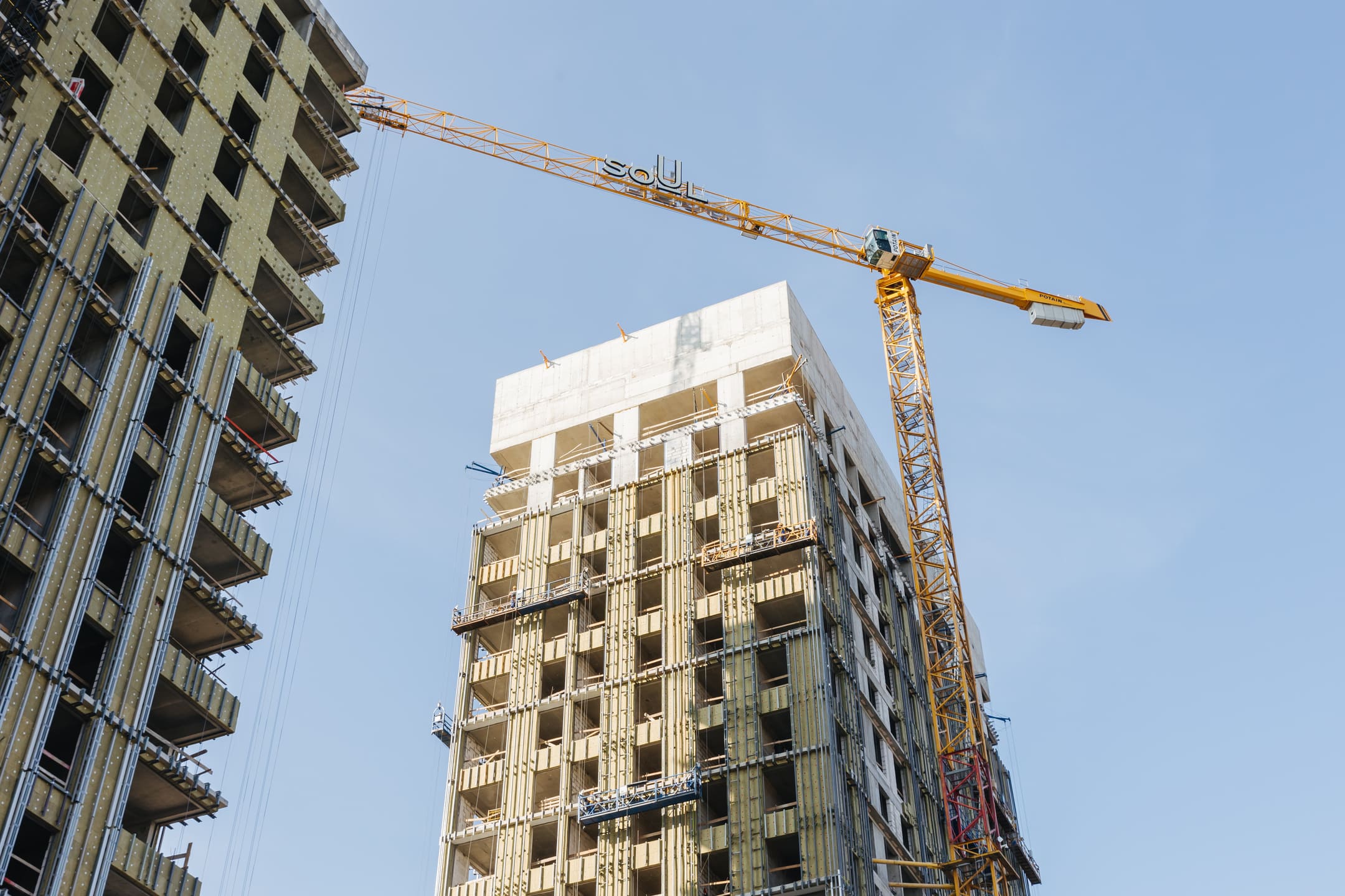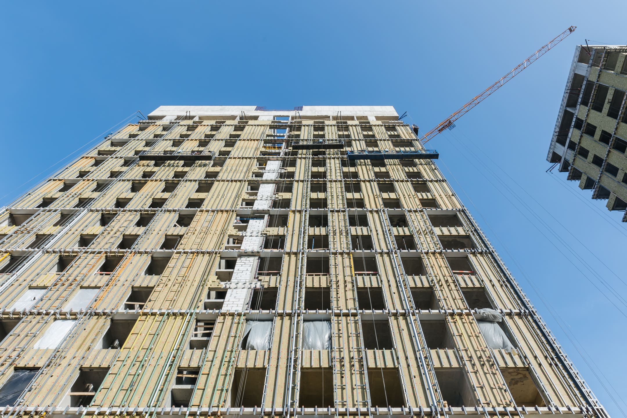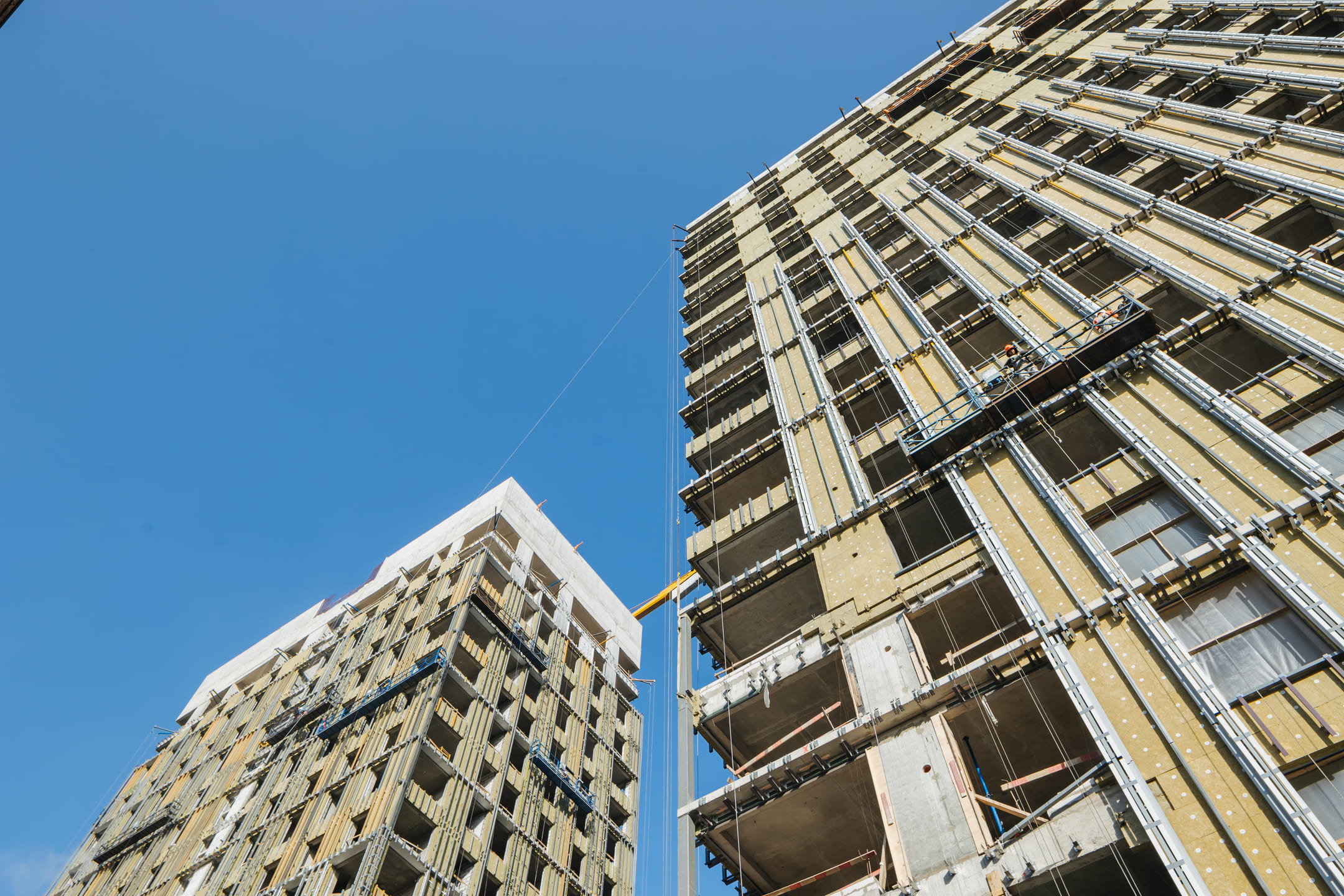 Этап 1.1 (корпус 2): Монтаж лестничных маршей 17 этажа. Ведутся каменные работы на 15-19 этажах. Ведутся отделочные работы на 3- 8 этажах. Продолжаются работы по устройству отопления, вентиляции, противопожарного водопровода в рамках внутренних инженерных систем, ведутся электромонтажные работы. Фасад: монтаж противопожарной отсечки, минераловатного утеплителя, подсистемы. Монтаж облицовки из натурального камня. Монтаж окон типовых этажей.