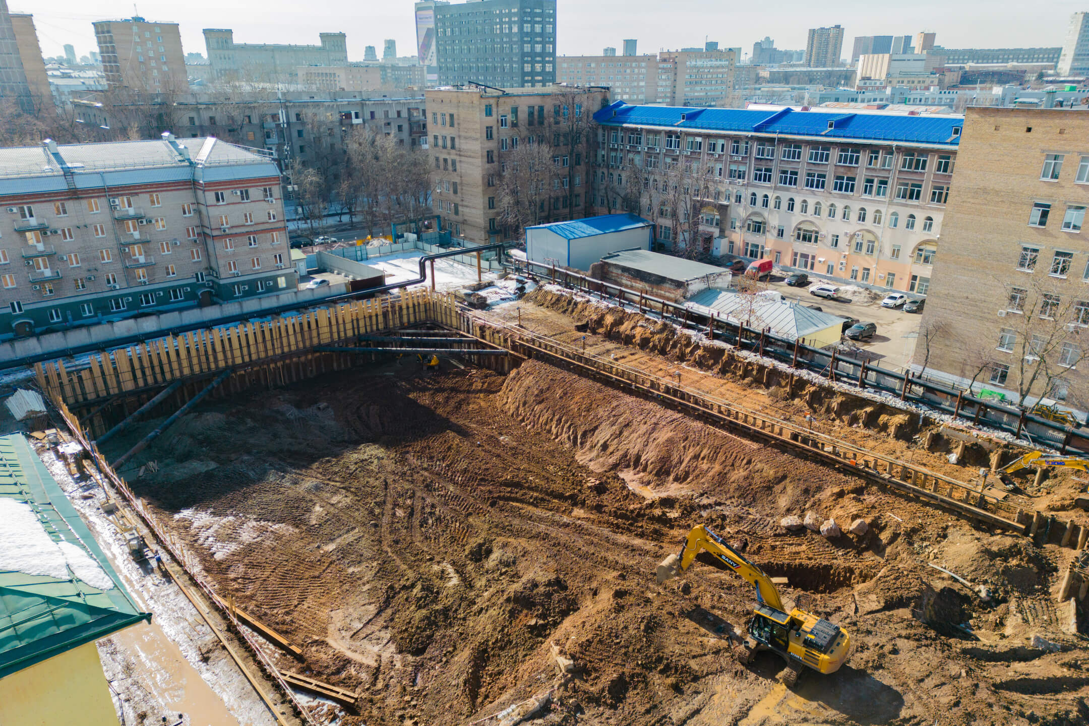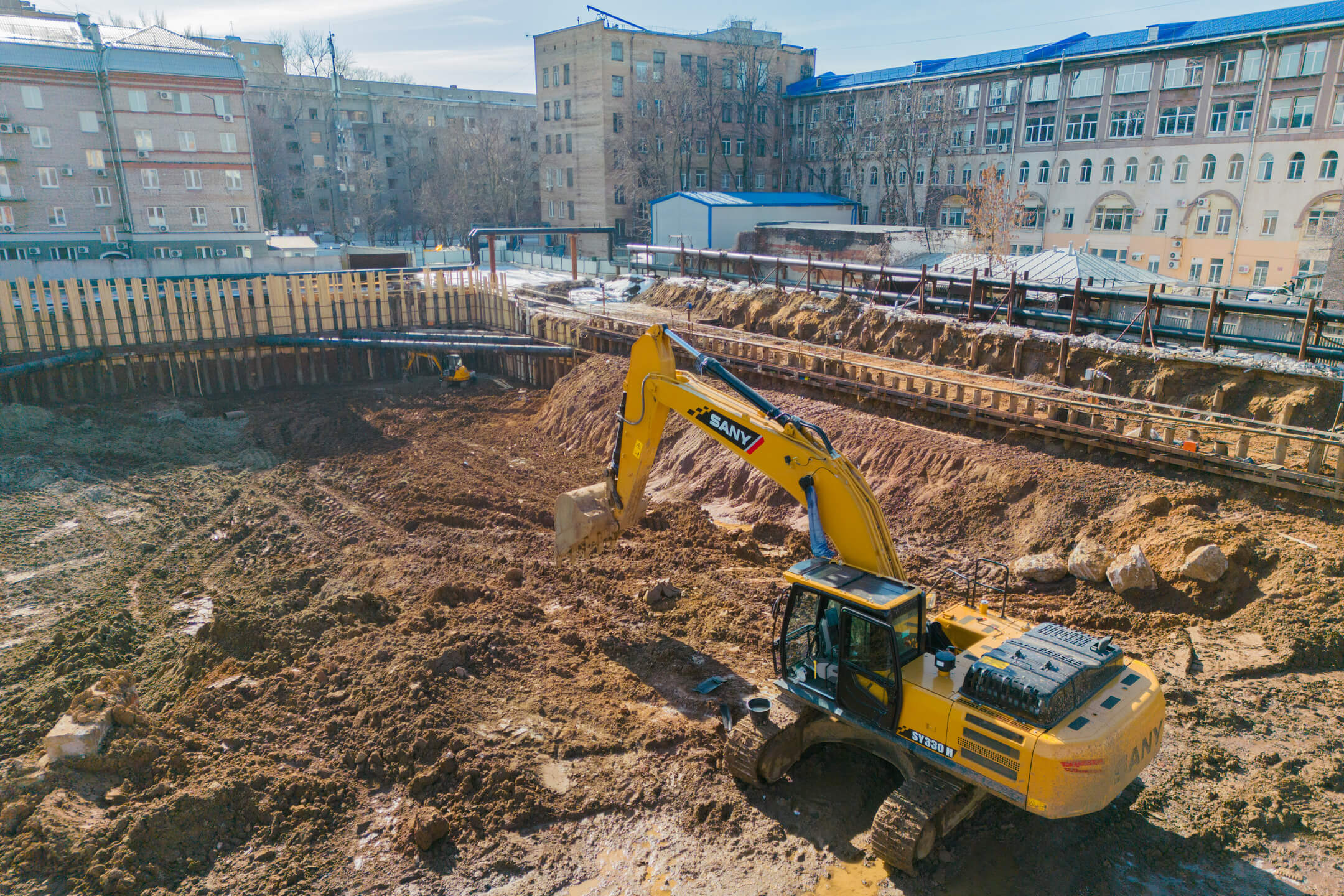 Корпус 2: ведутся работы по устройству ограждения котлована.