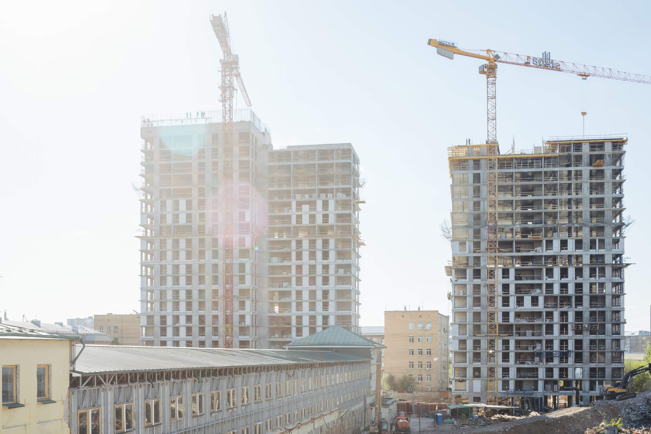 Этап 1.1 (паркинг): армирование/бетонирование стен и покрытия паркинга и рампы. Гидроизоляция наружных стен и кровли стилобата. Устройство пристенного дренажа, прокладка наружных инженерных систем. Отсыпка пазух котлована, кладка стен и перегородок подземного этажа. Отделка технических помещений. Ведутся работы по устройству отопления, вентиляции, противопожарного водопровода в рамках внутренних инженерных систем.