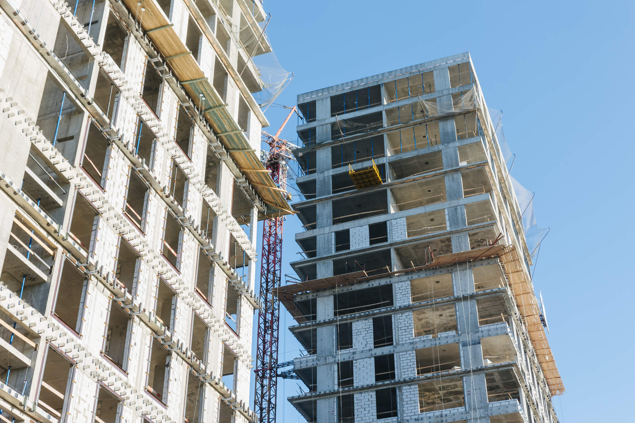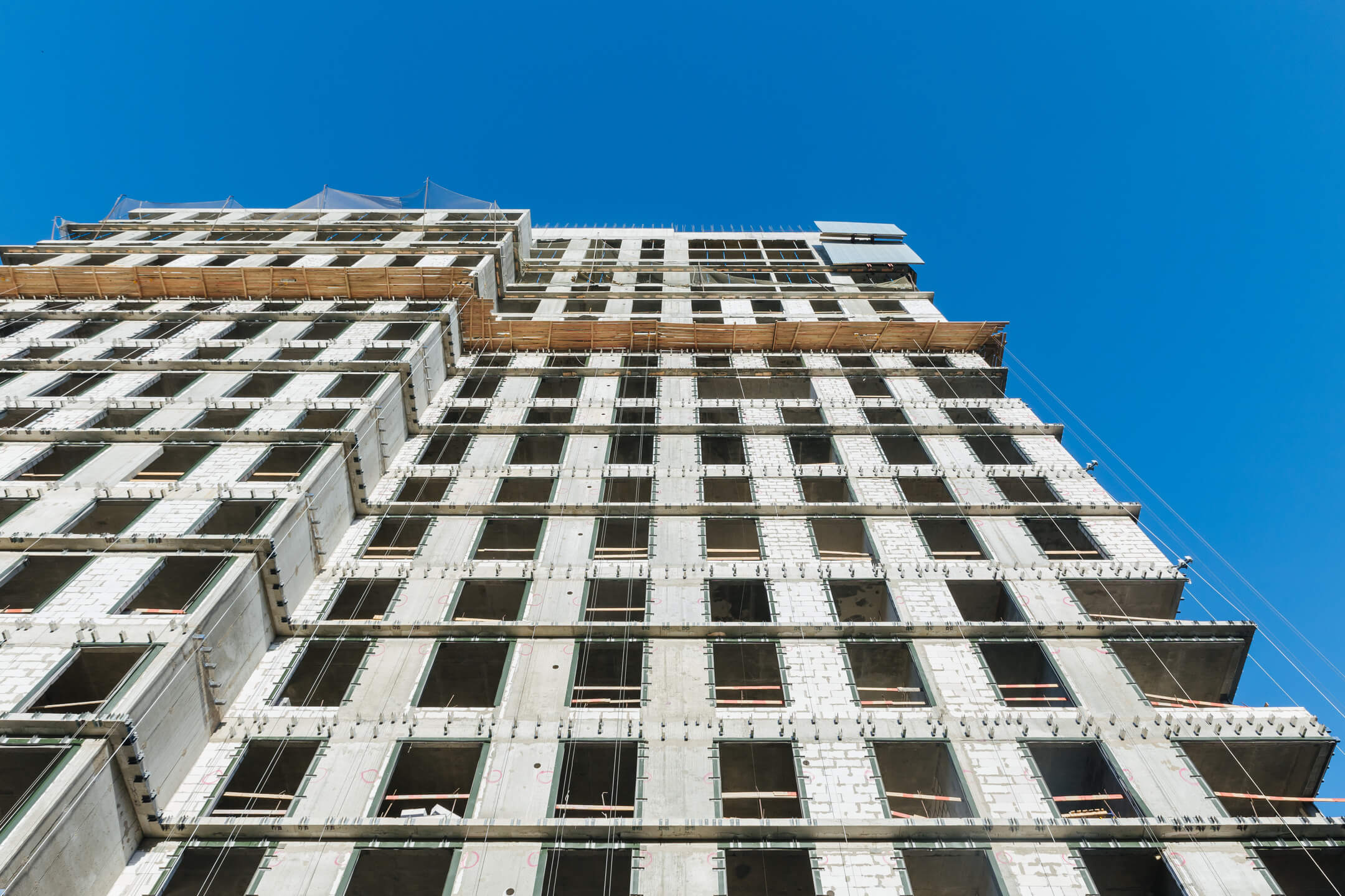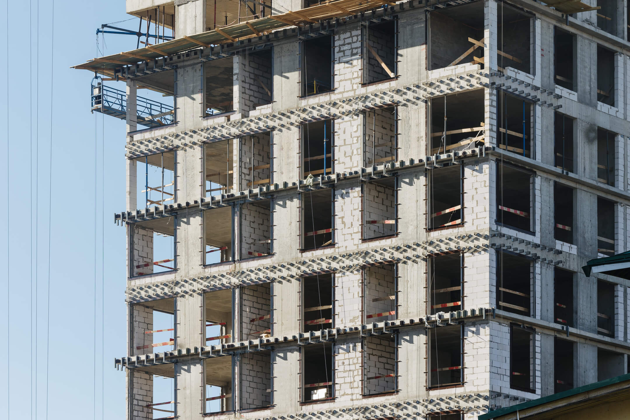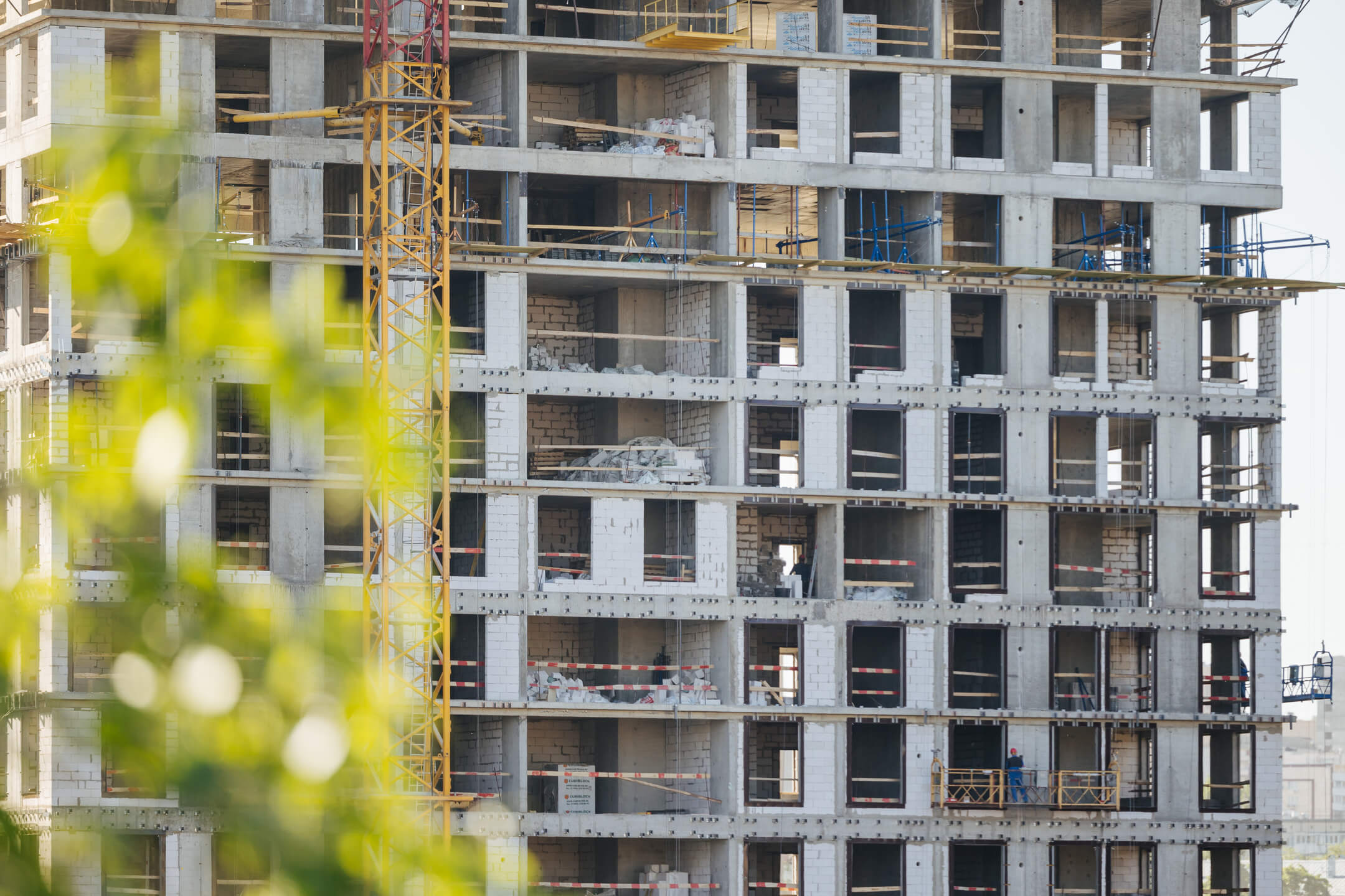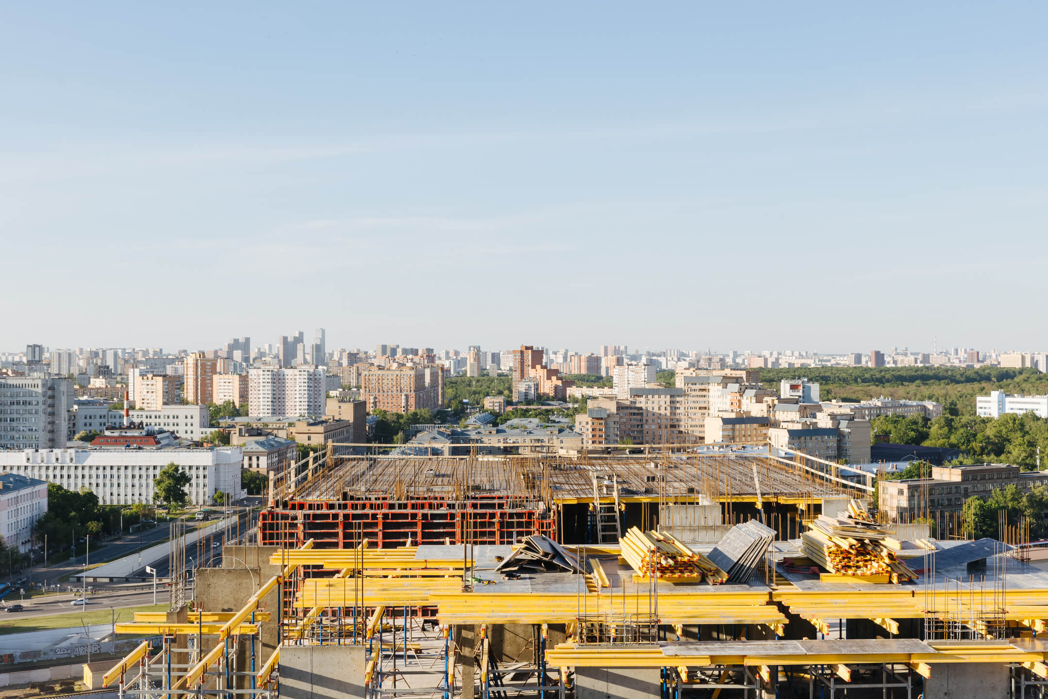 Этап 1.1 (корпус 1): армирование/бетонирование парапета, монтаж лестничных маршей на 21 этаже, каменные работы на 10-17 этажах. Продолжаются работы по устройству отопления, вентиляции, противопожарного водопровода в рамках внутренних инженерных систем. Фасад: монтаж противопожарной отсечки.