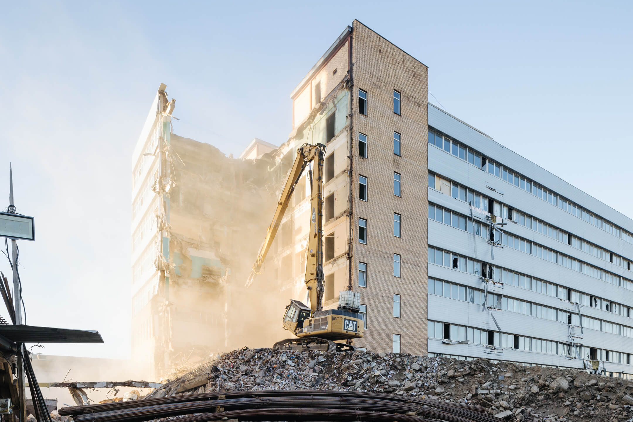 Этап 1.2: устройство шпунтового ограждения, распорной системы, грунтовых анкеров, водопонижения. Разработка котлована, снос зданий и сооружений.