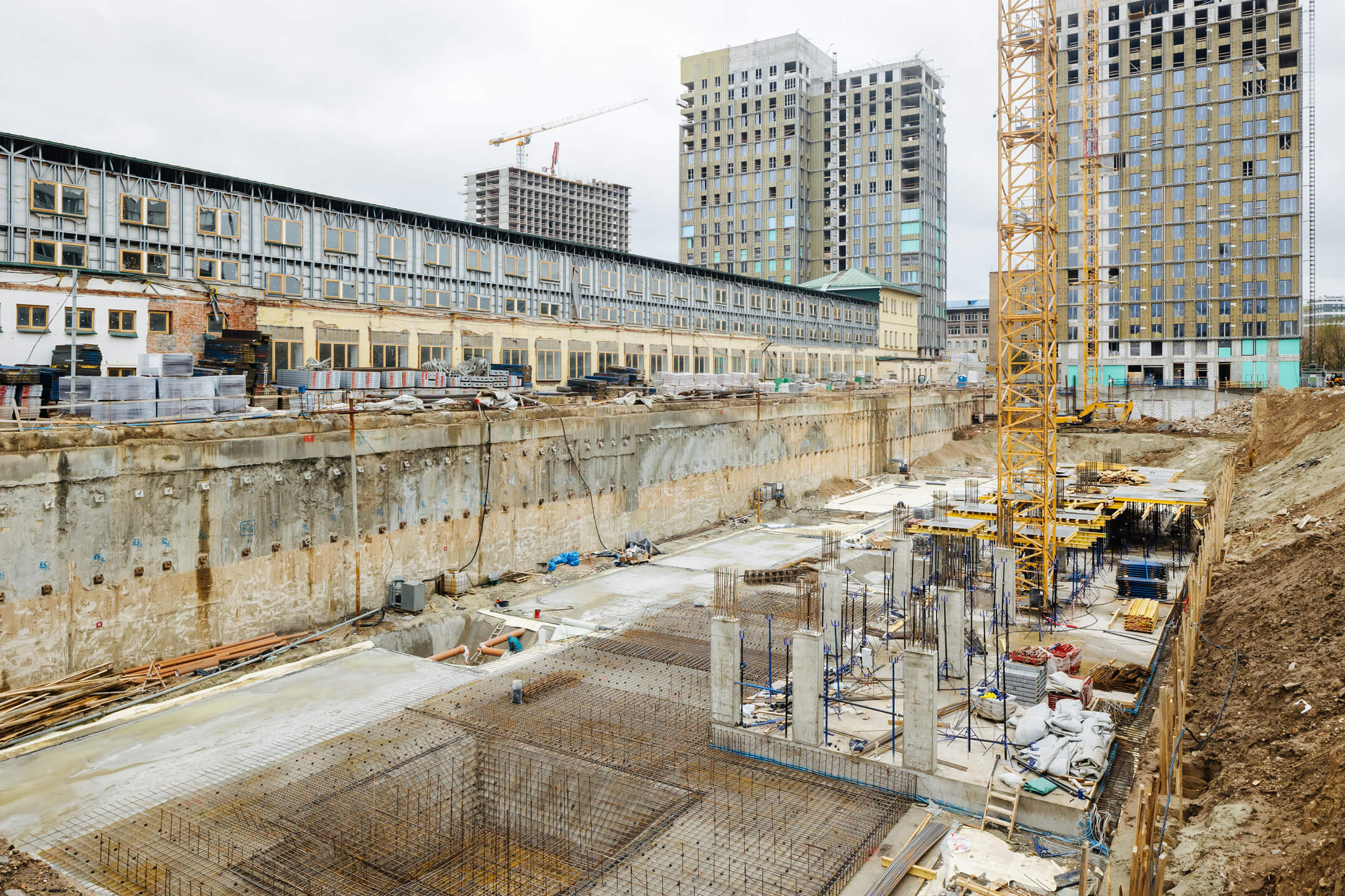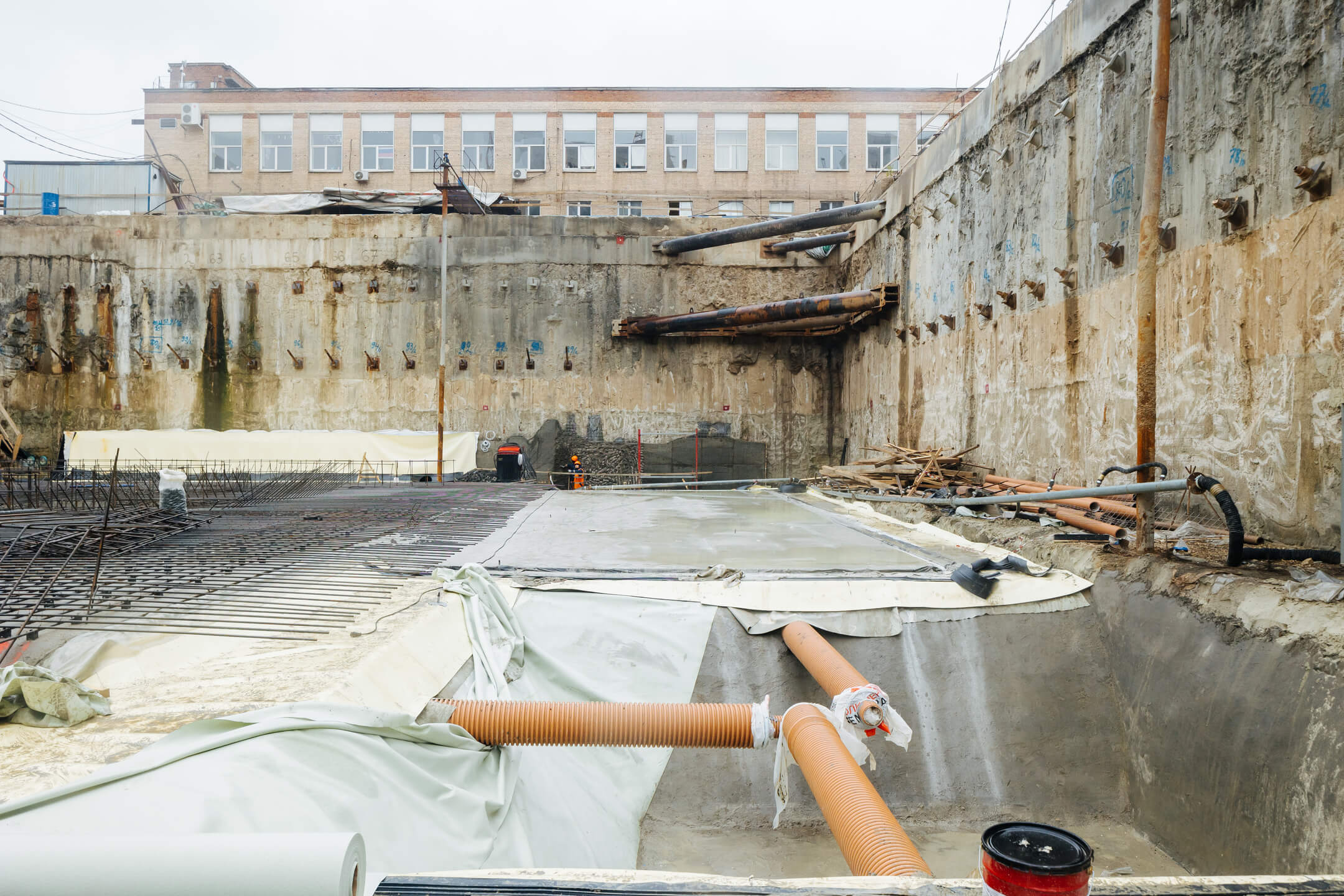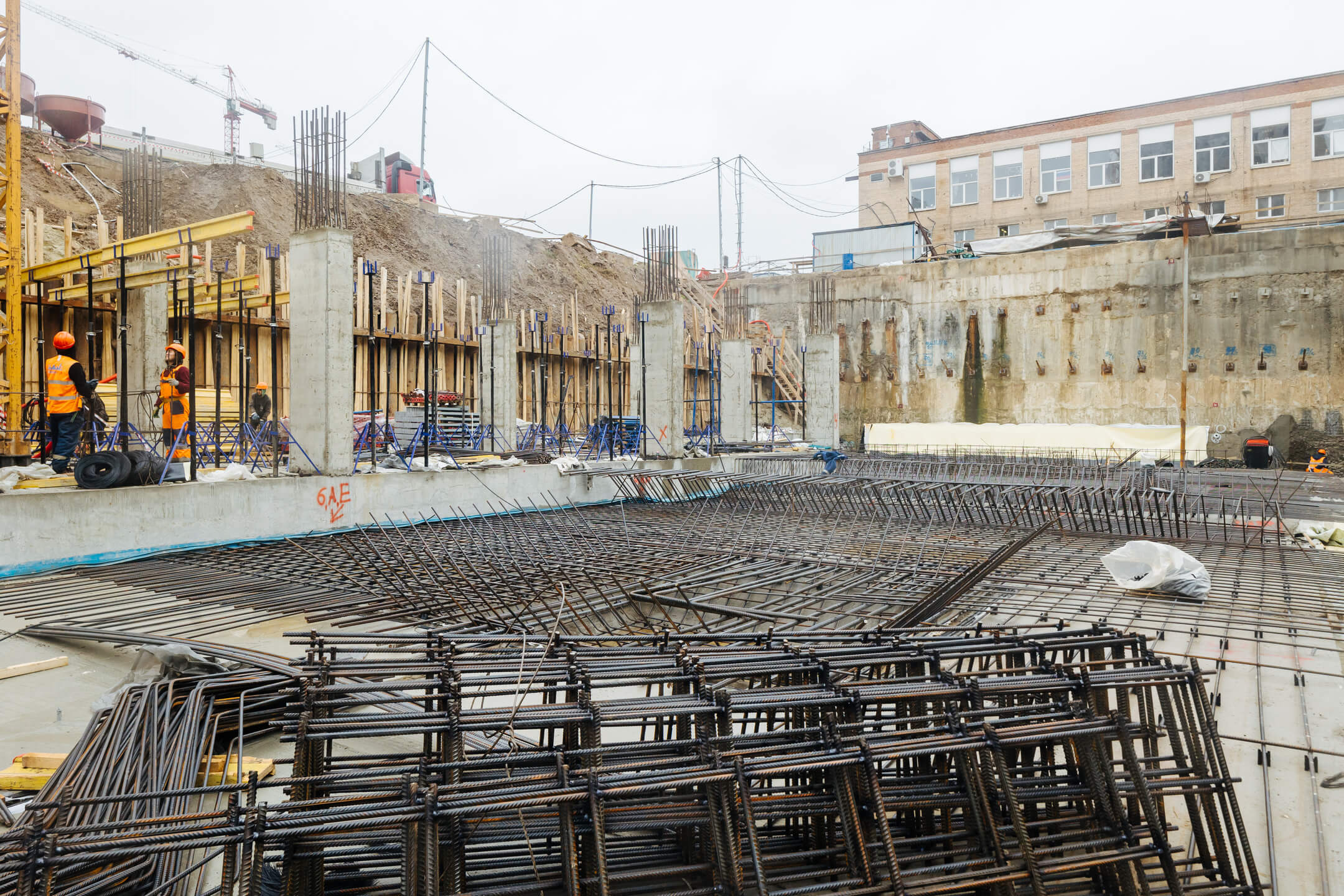 - Бетонирование плиты перекрытия паркинга −2 этажа.