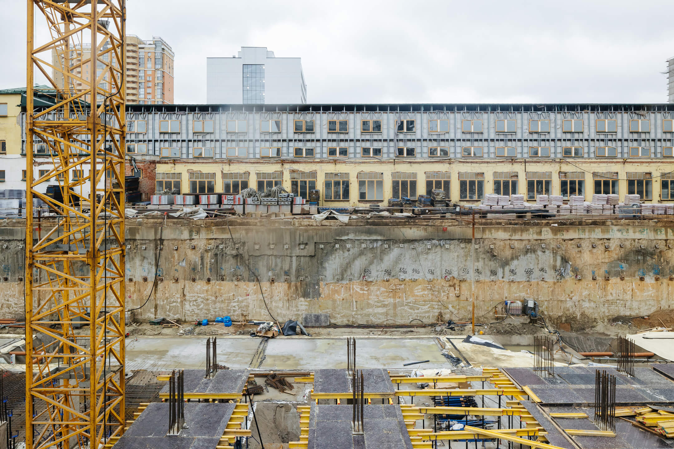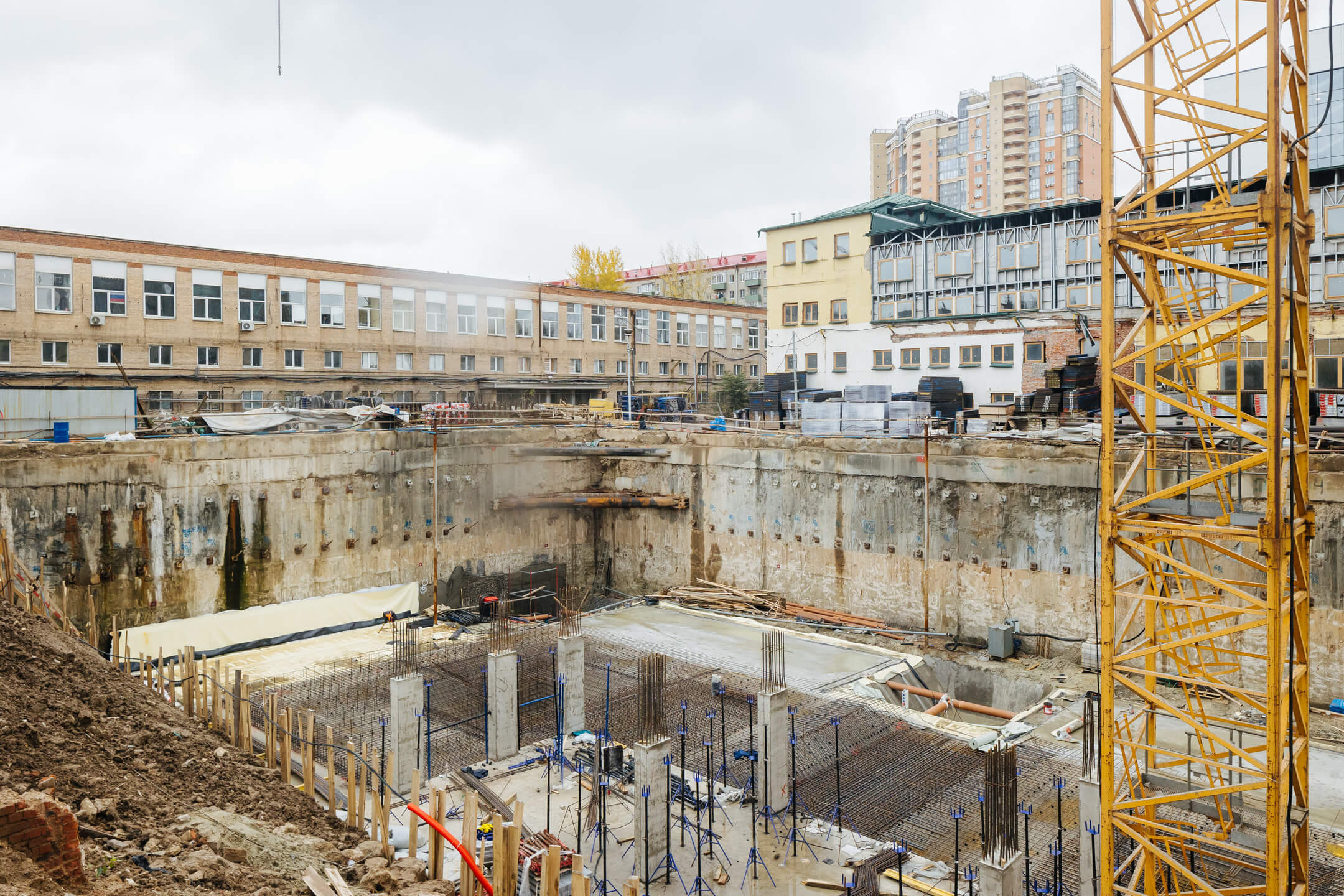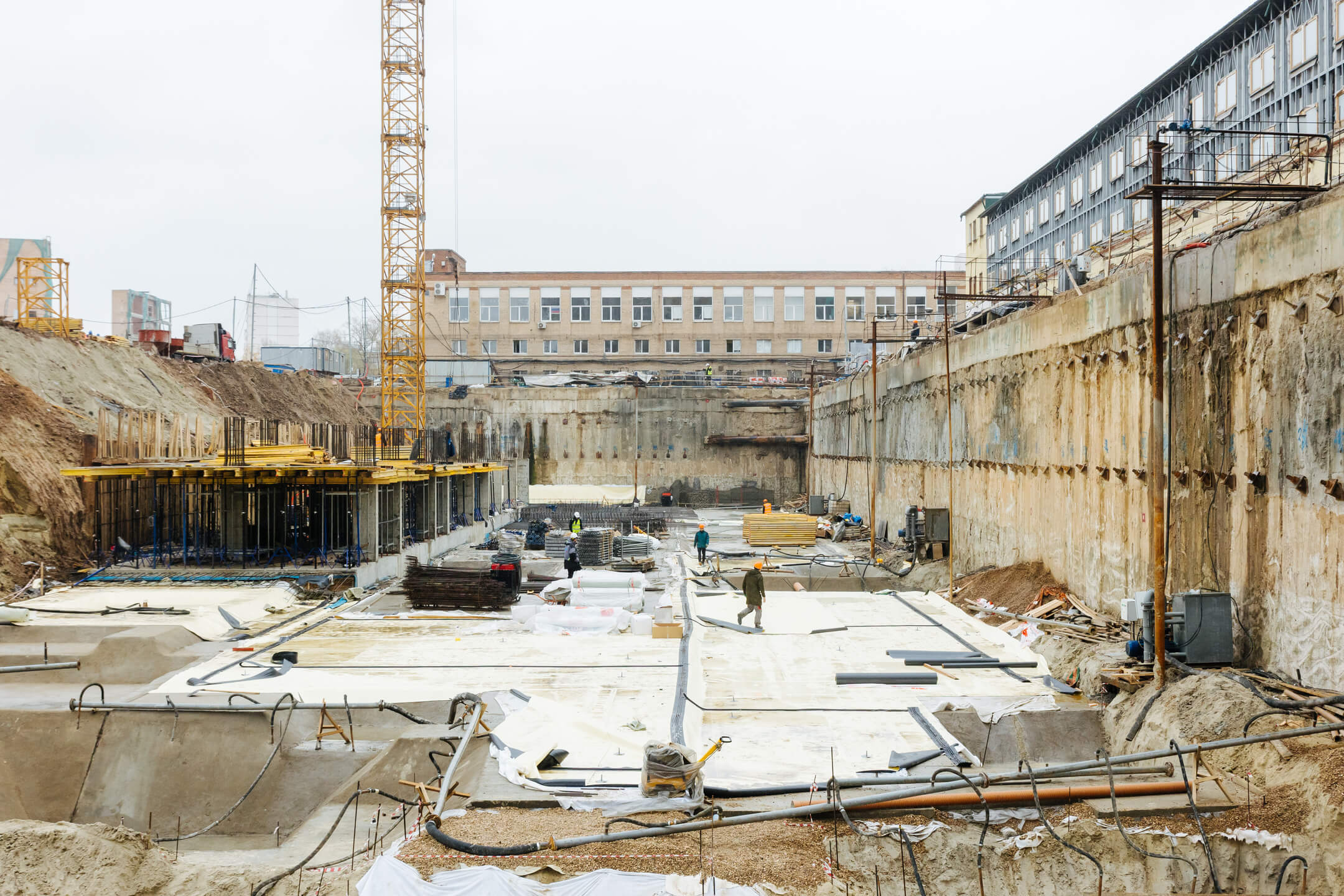 - Бетонирование плиты перекрытия паркинга −2 этажа.