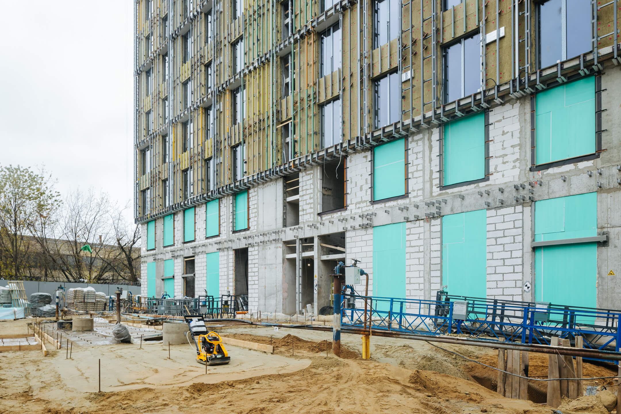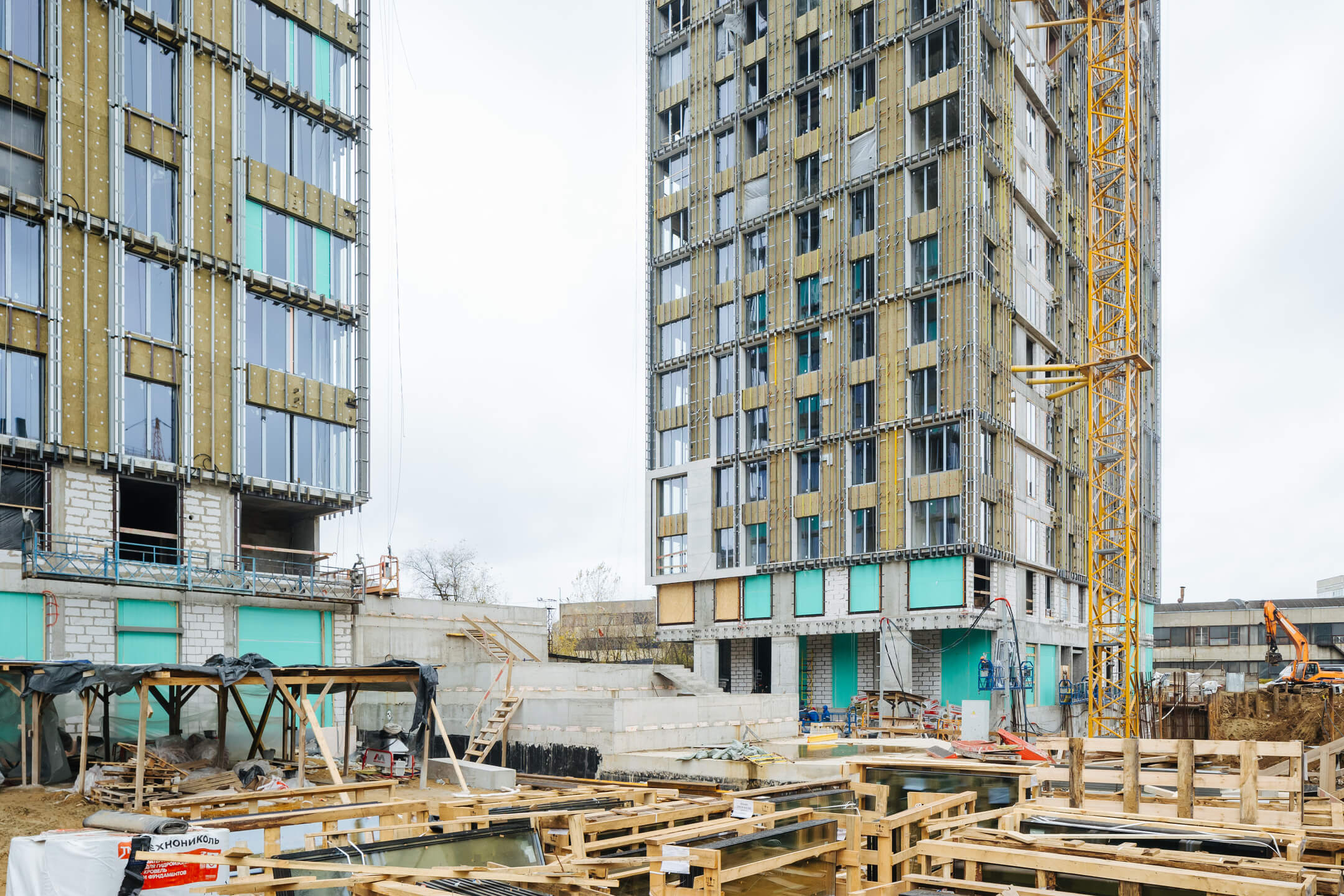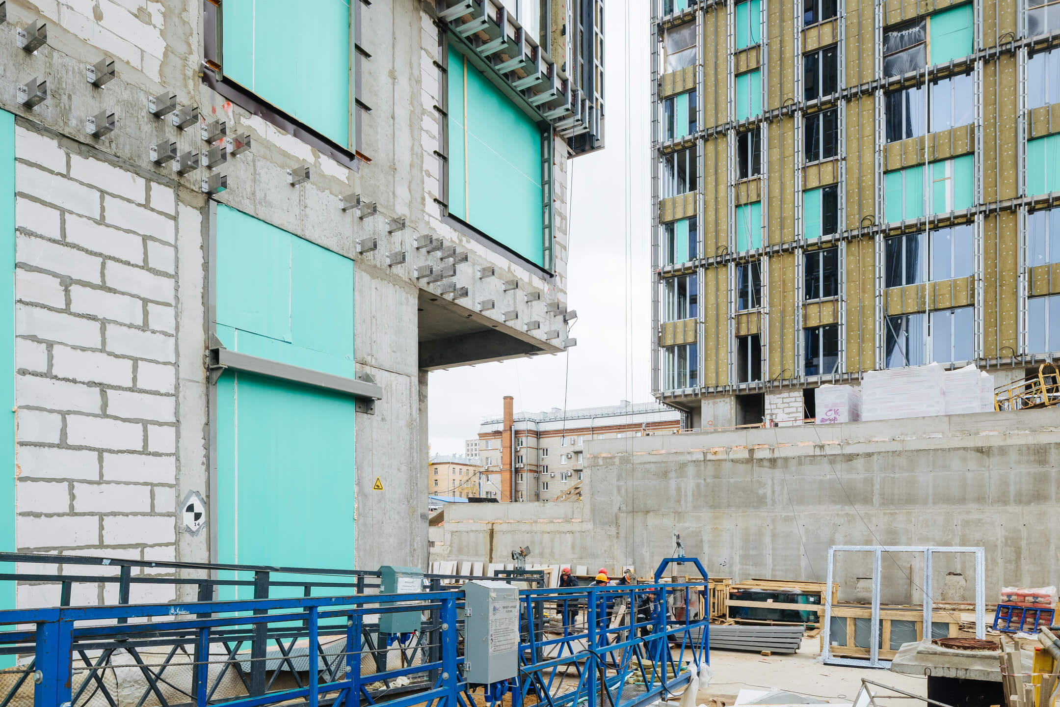 - Ведутся кровельные работы. Монолитные работы завершены. Ведутся каменные работы на 18-21 этажах.
