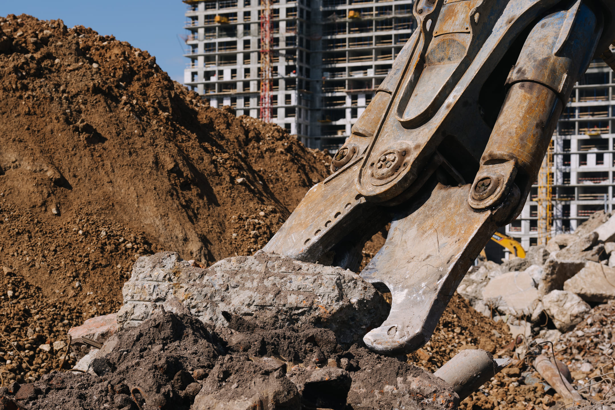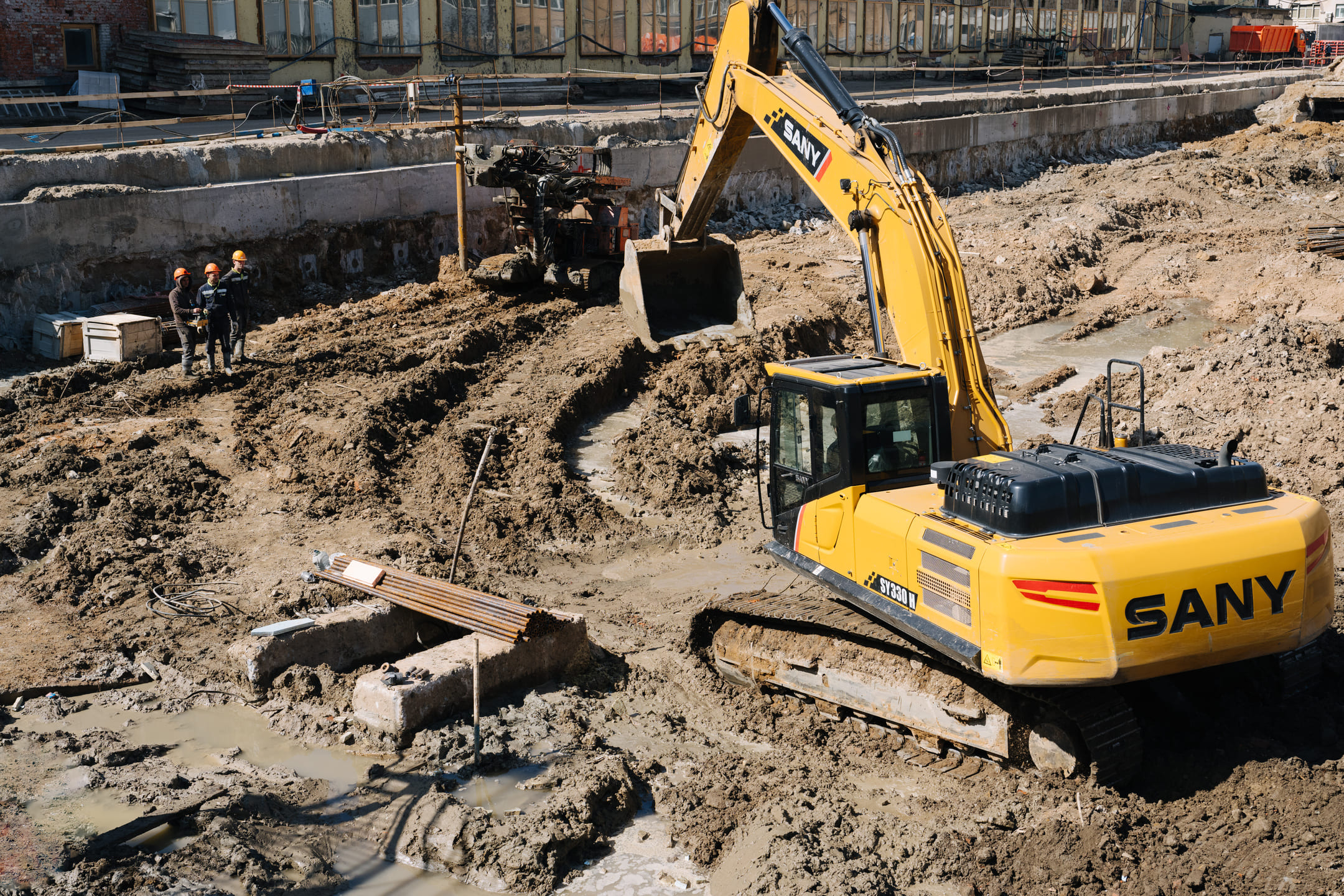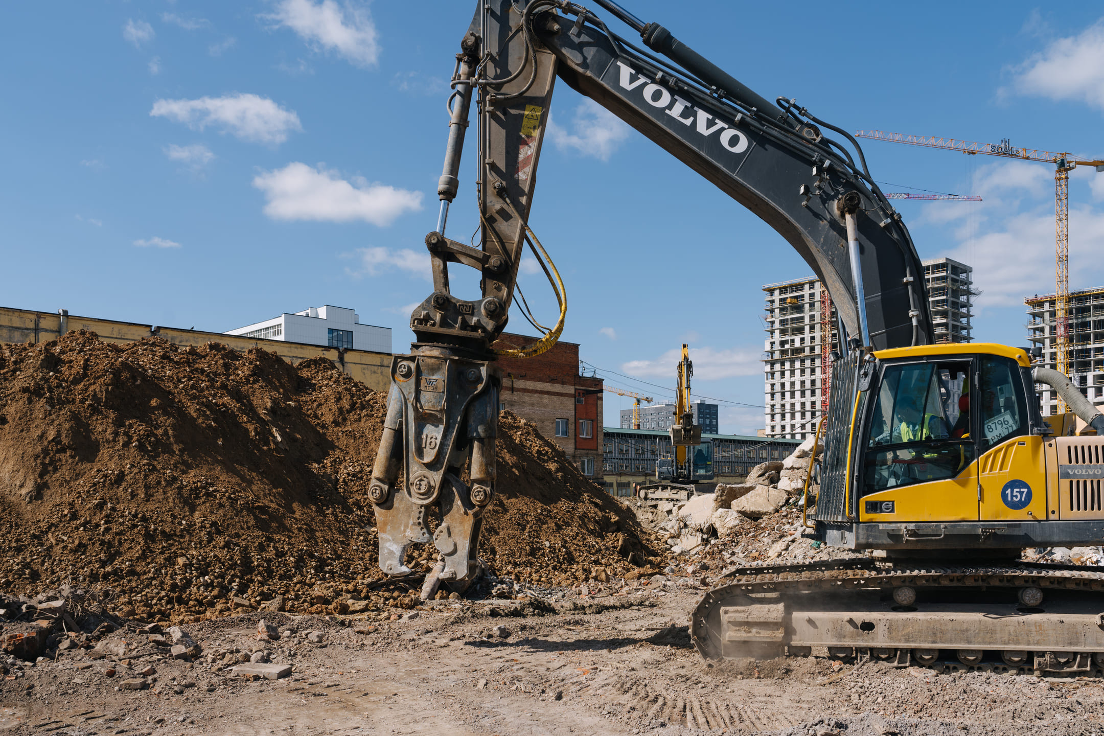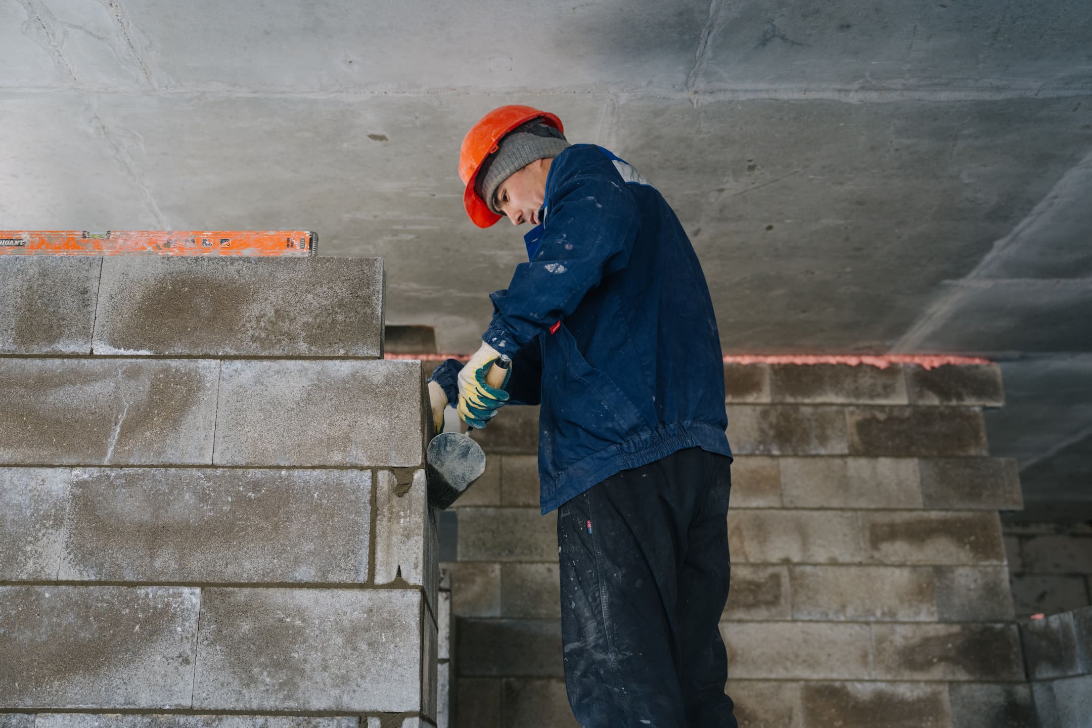 Этап 1.1 (паркинг): армирование/бетонирование стен и покрытия паркинга, рампы. Гидроизоляция наружных стен и кровли стилобата, устройство пристенного дренажа, прокладка наружных инженерных систем, отсыпка пазух котлована, кладка стен и перегородок подземного этажа.