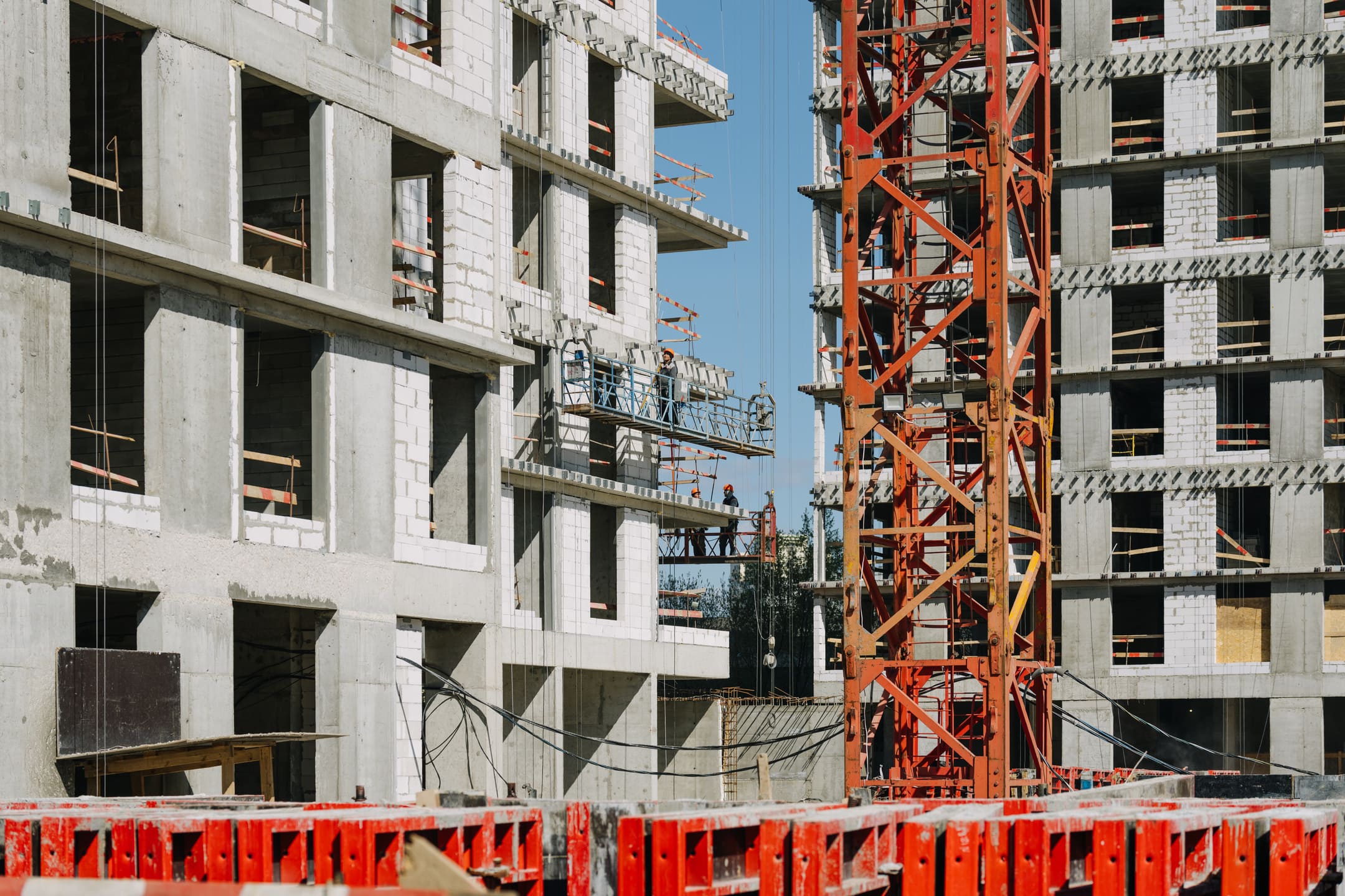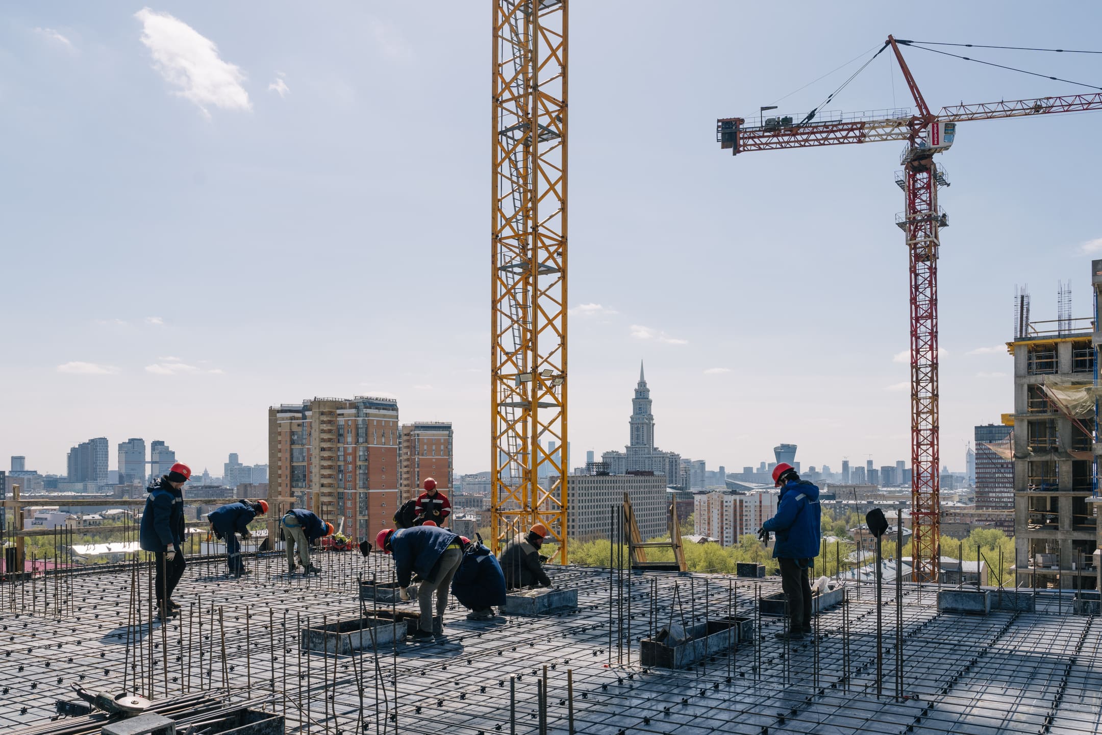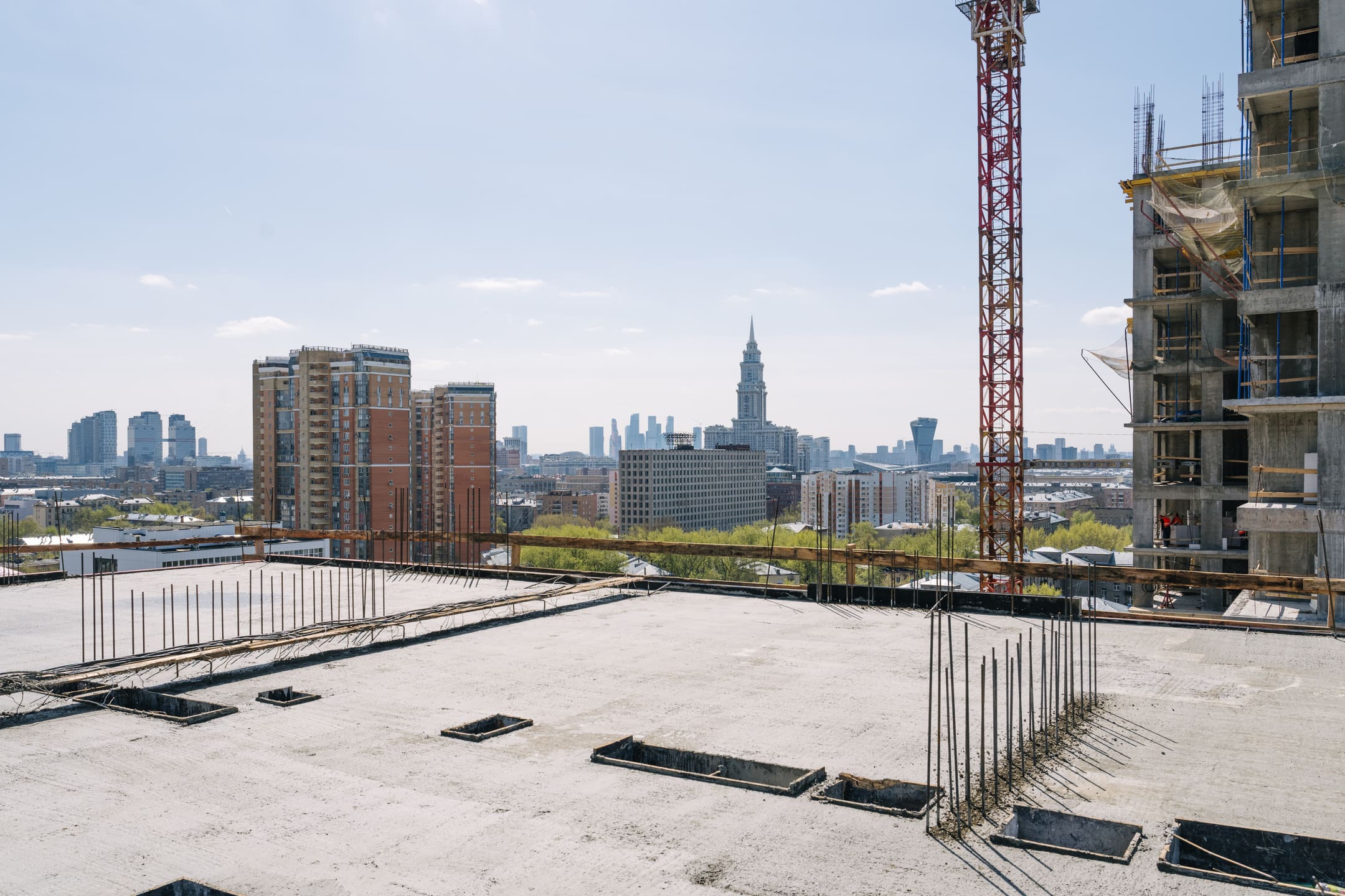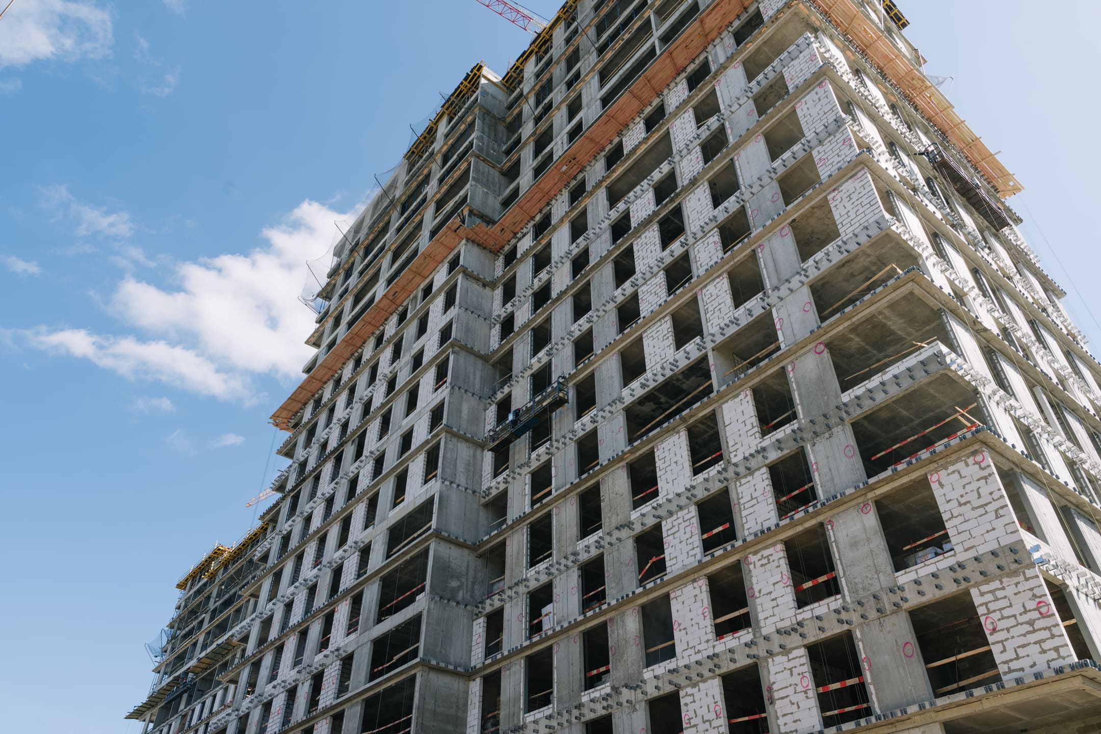 Этап 1.1 (корпус 2): армирование/бетонирование плиты перекрытия и вертикальных конструкций 16 этажа, кладочные работы на 3-10 этажах, монтаж фасадных кронштейнов.