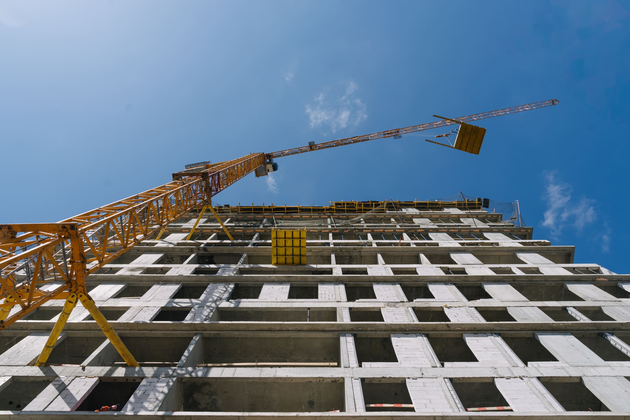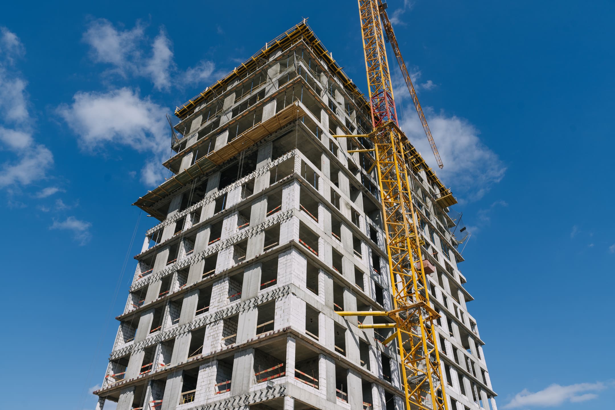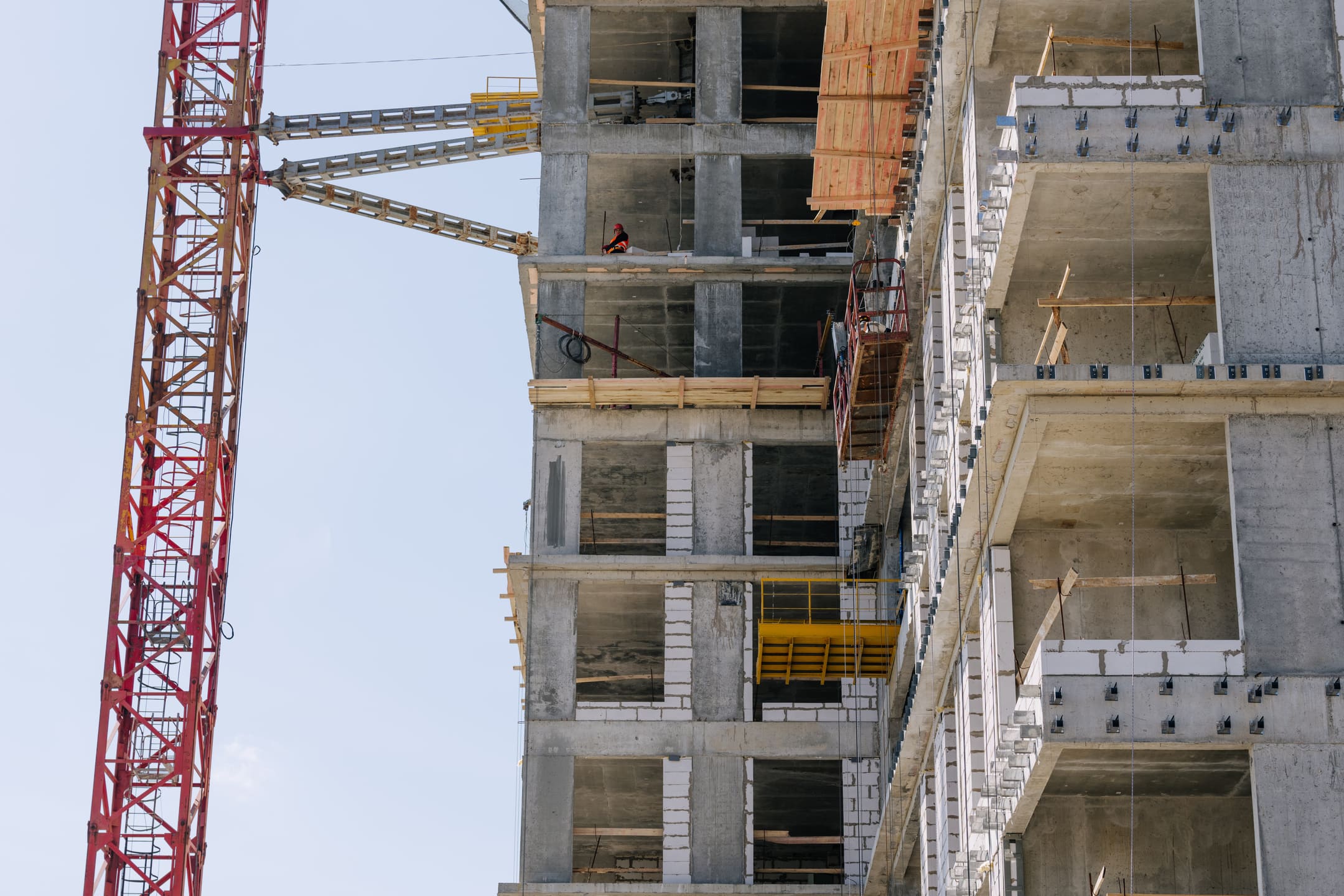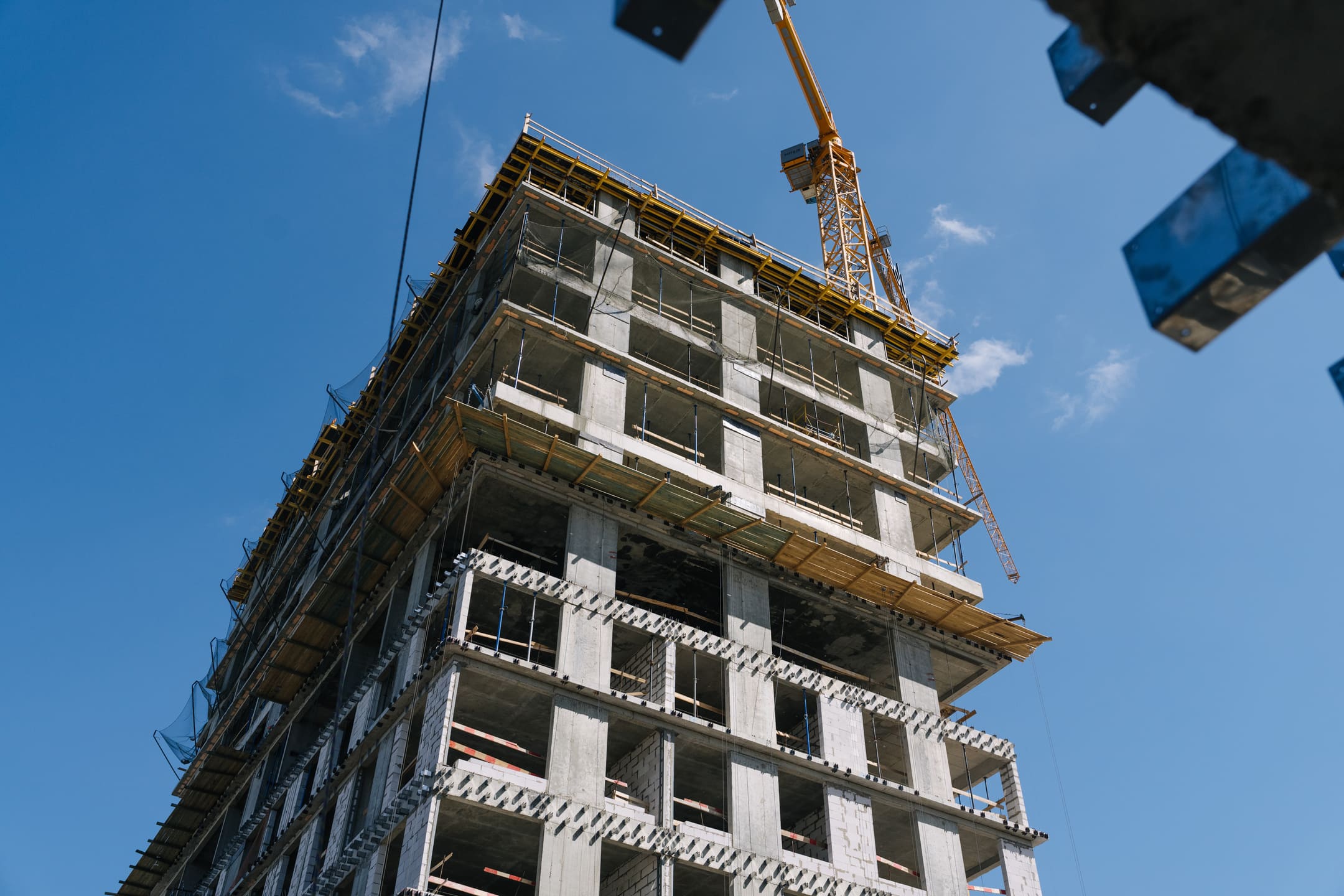 Этап 1.1 (корпус 2): армирование/бетонирование плиты перекрытия и вертикальных конструкций 16 этажа, кладочные работы на 3-10 этажах, монтаж фасадных кронштейнов.