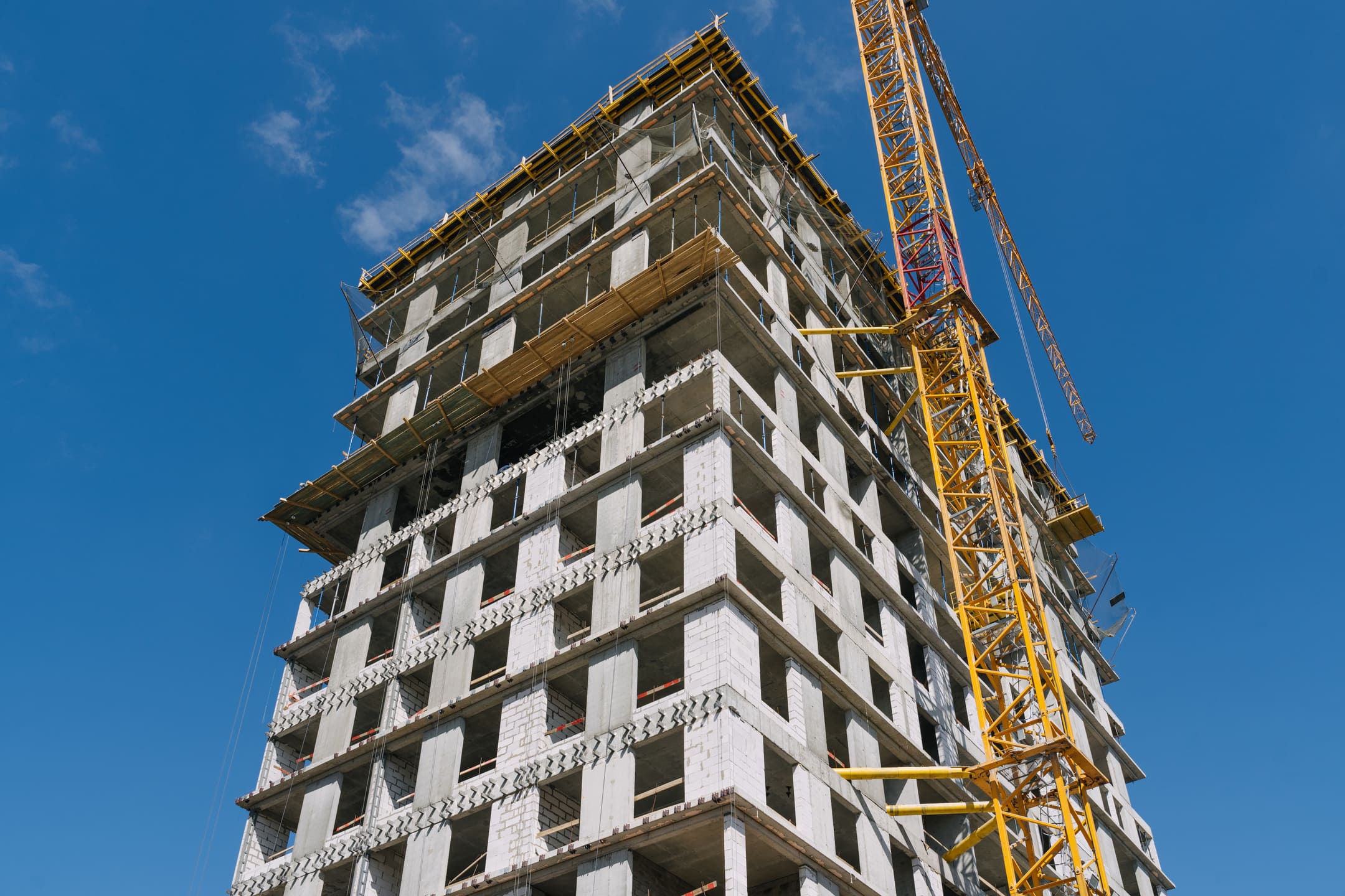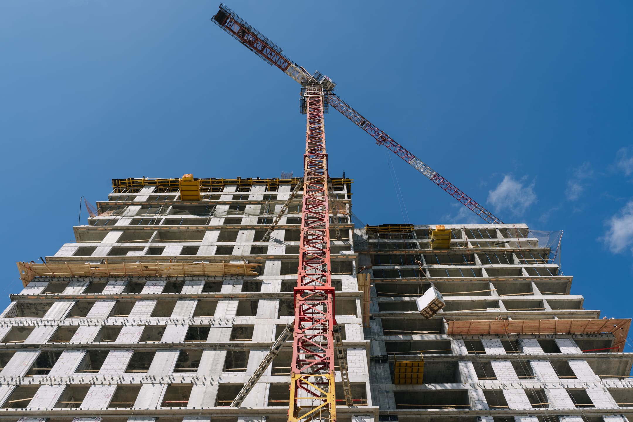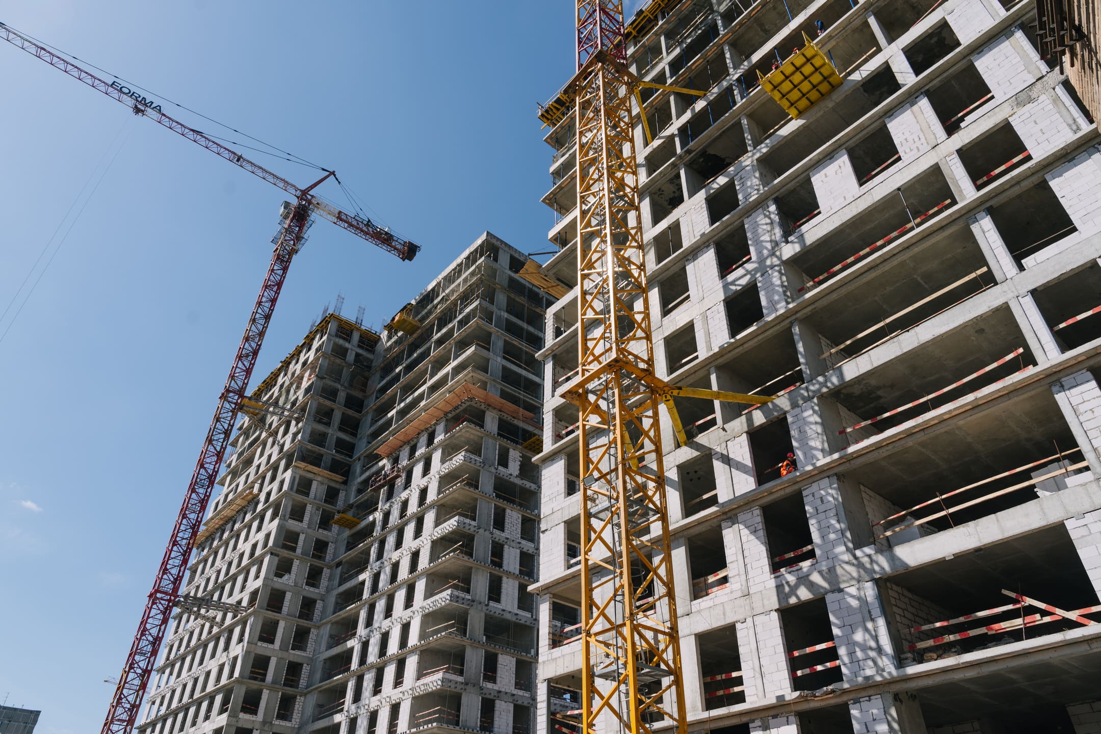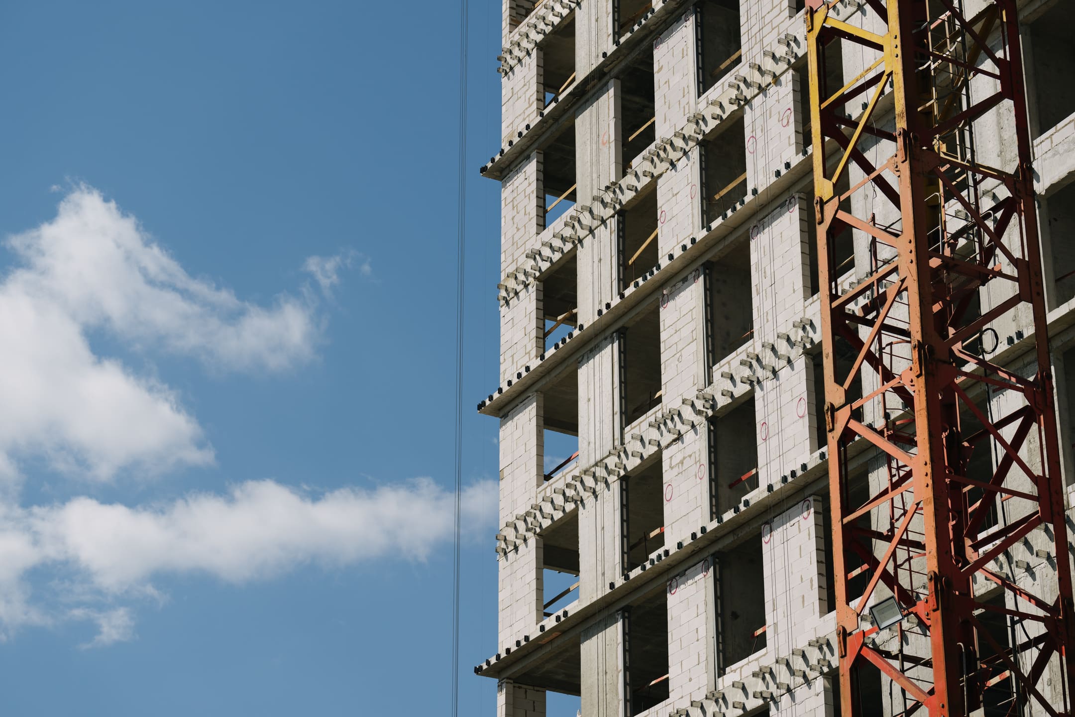 Этап 1.1 (корпус 2): армирование/бетонирование плиты перекрытия и вертикальных конструкций 16 этажа, кладочные работы на 3-10 этажах, монтаж фасадных кронштейнов.