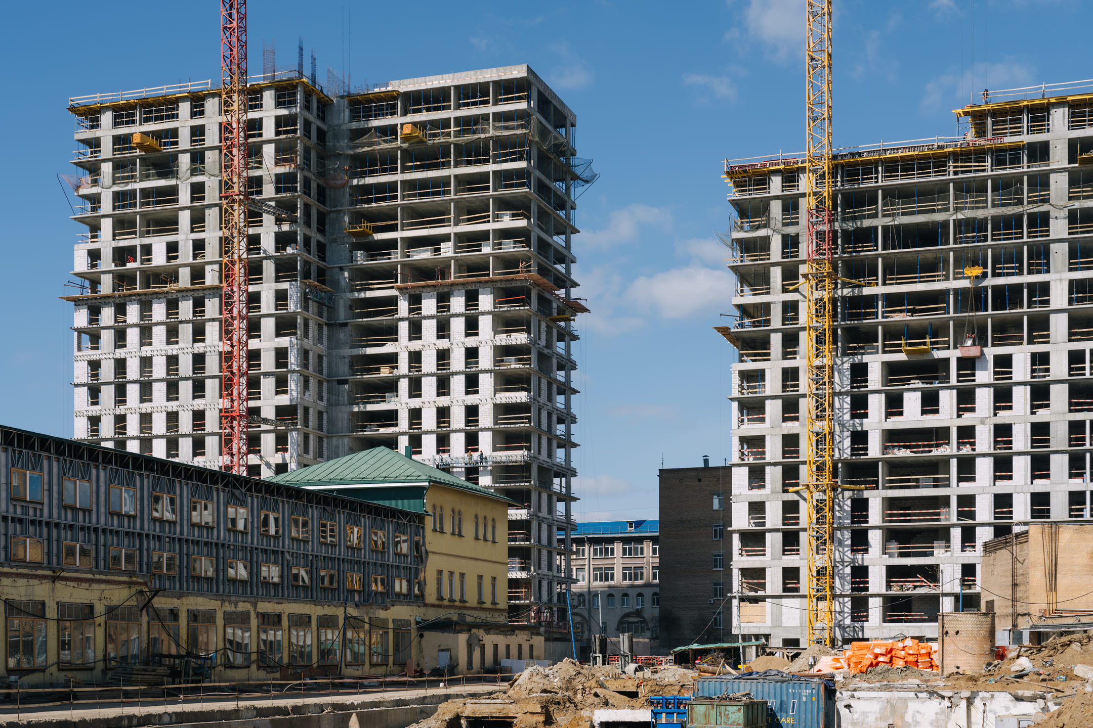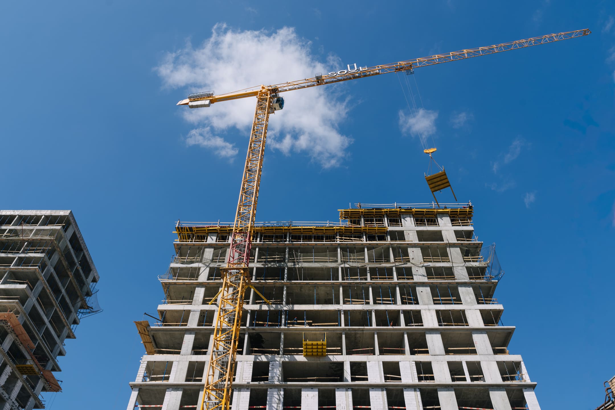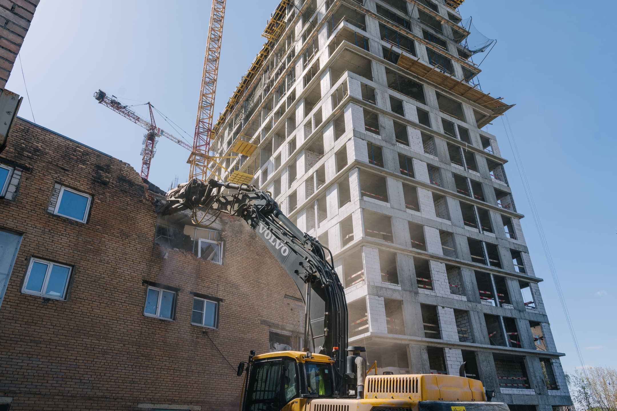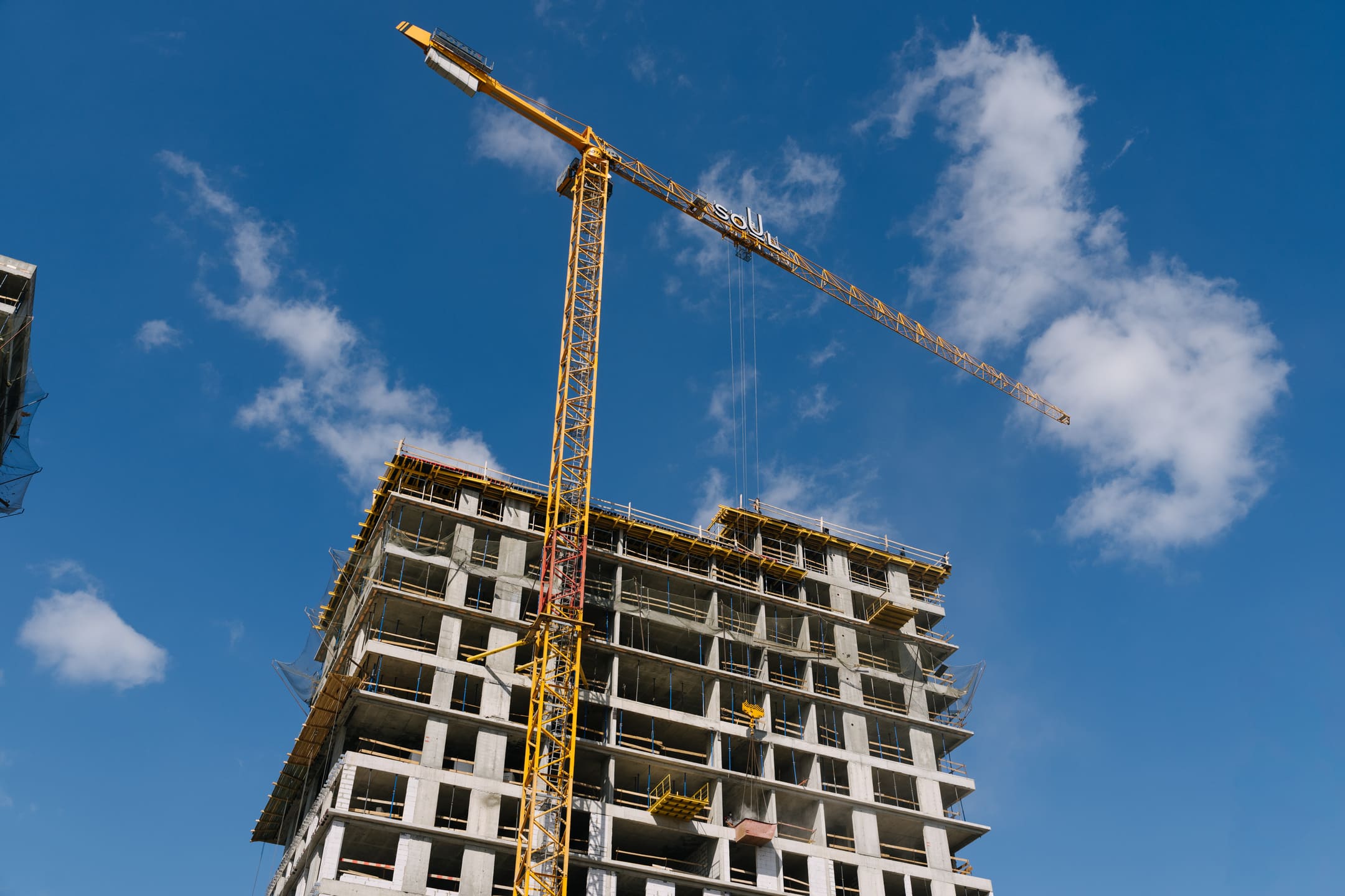Этап 1.1 (корпус 2): армирование/бетонирование плиты перекрытия и вертикальных конструкций 16 этажа, кладочные работы на 3-10 этажах, монтаж фасадных кронштейнов.