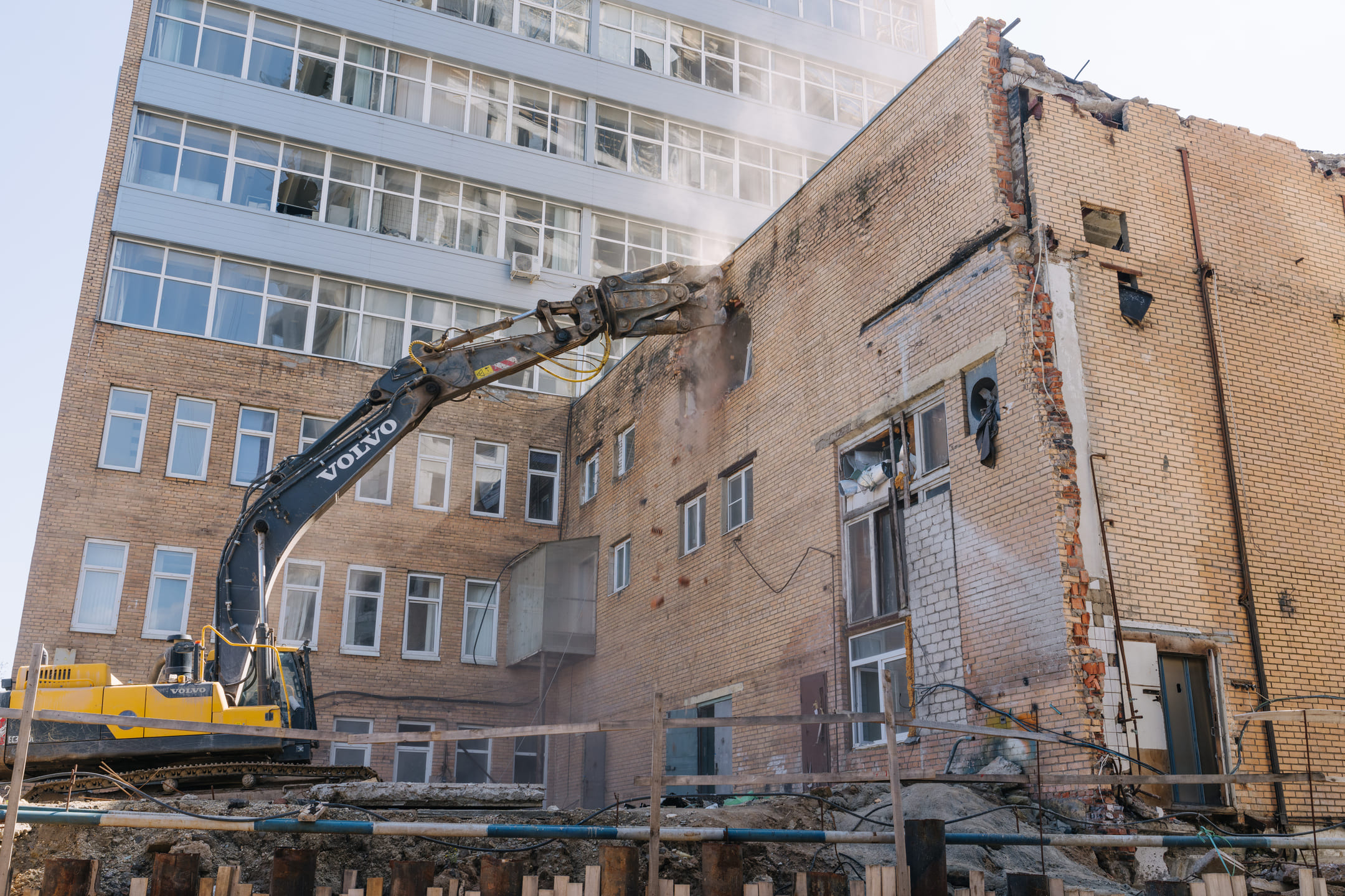 Этап 1.2: устройство стены в грунте и обвязочной балки, распорной системы и грунтовых анкеров, водопонижения. Разработка котлована, снос зданий и сооружений.
