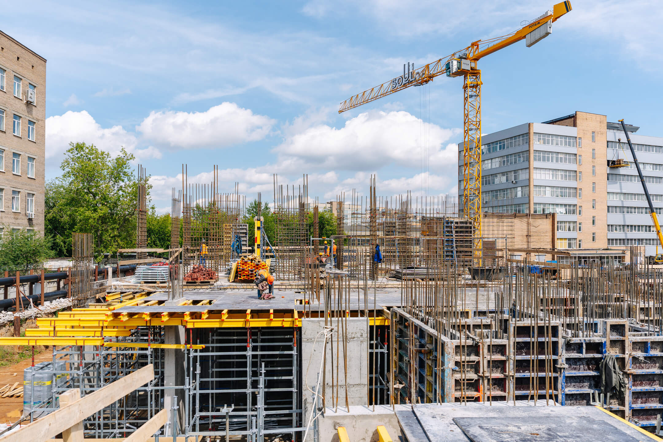 - Корпус 1: завершены работы по бетонированию стен подземного этажа и 1 этажа. Ведутся работы по армированию/бетонированию стен 2 этажа.