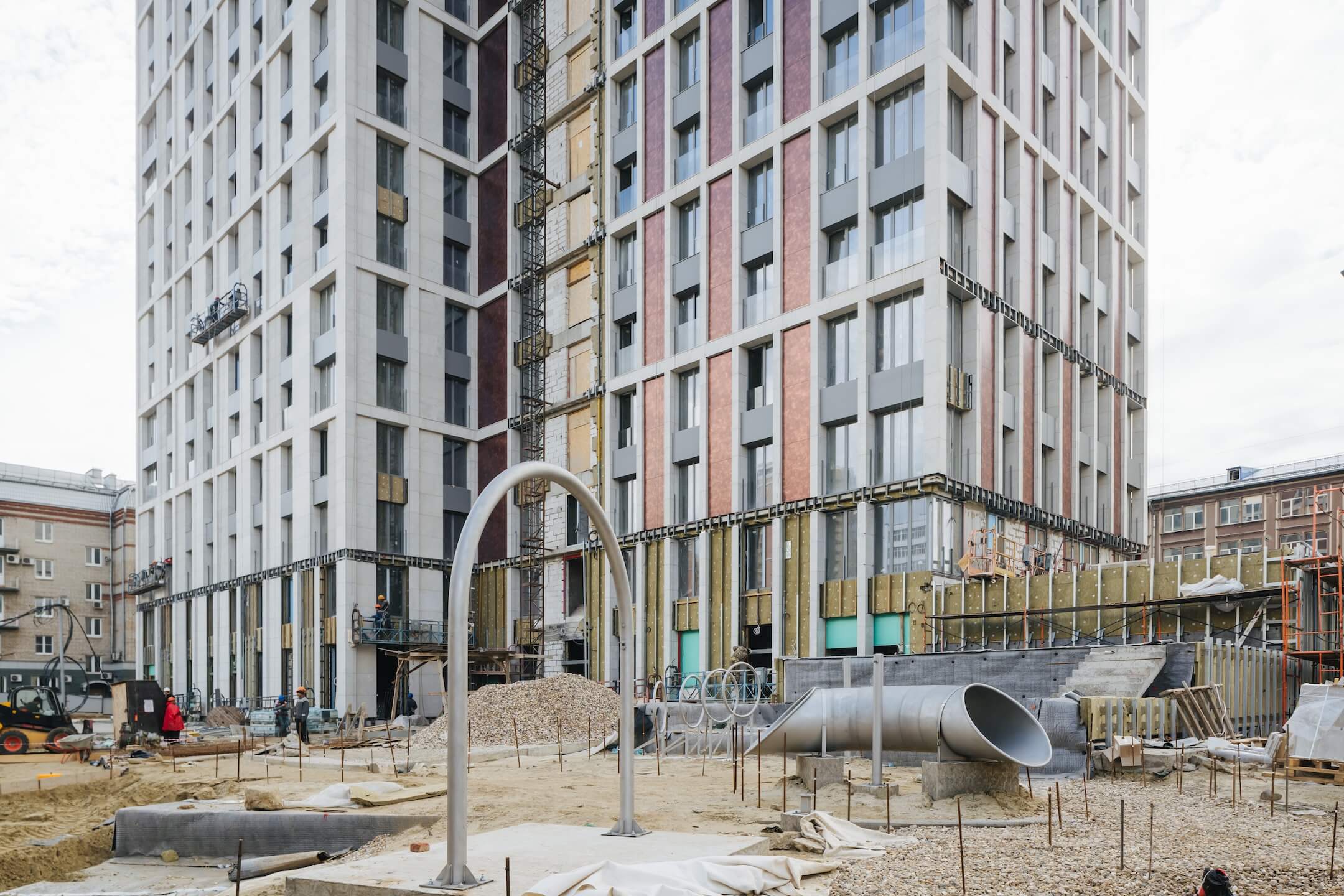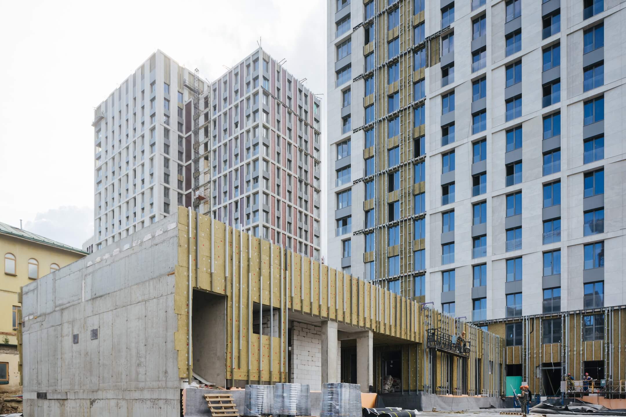 - Ведутся черновые отделочные работы на 1-20 этажах