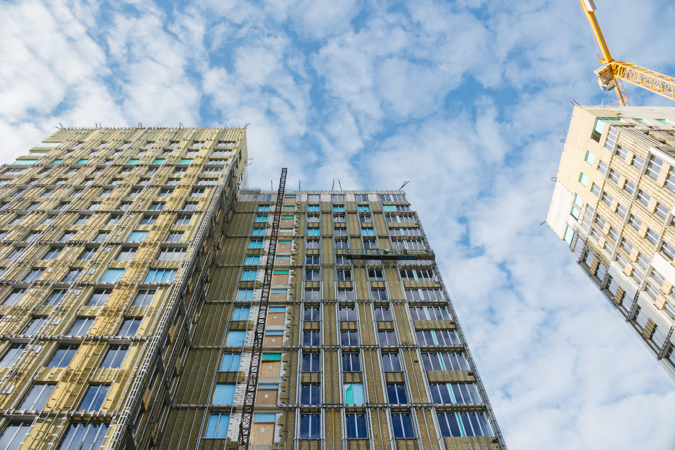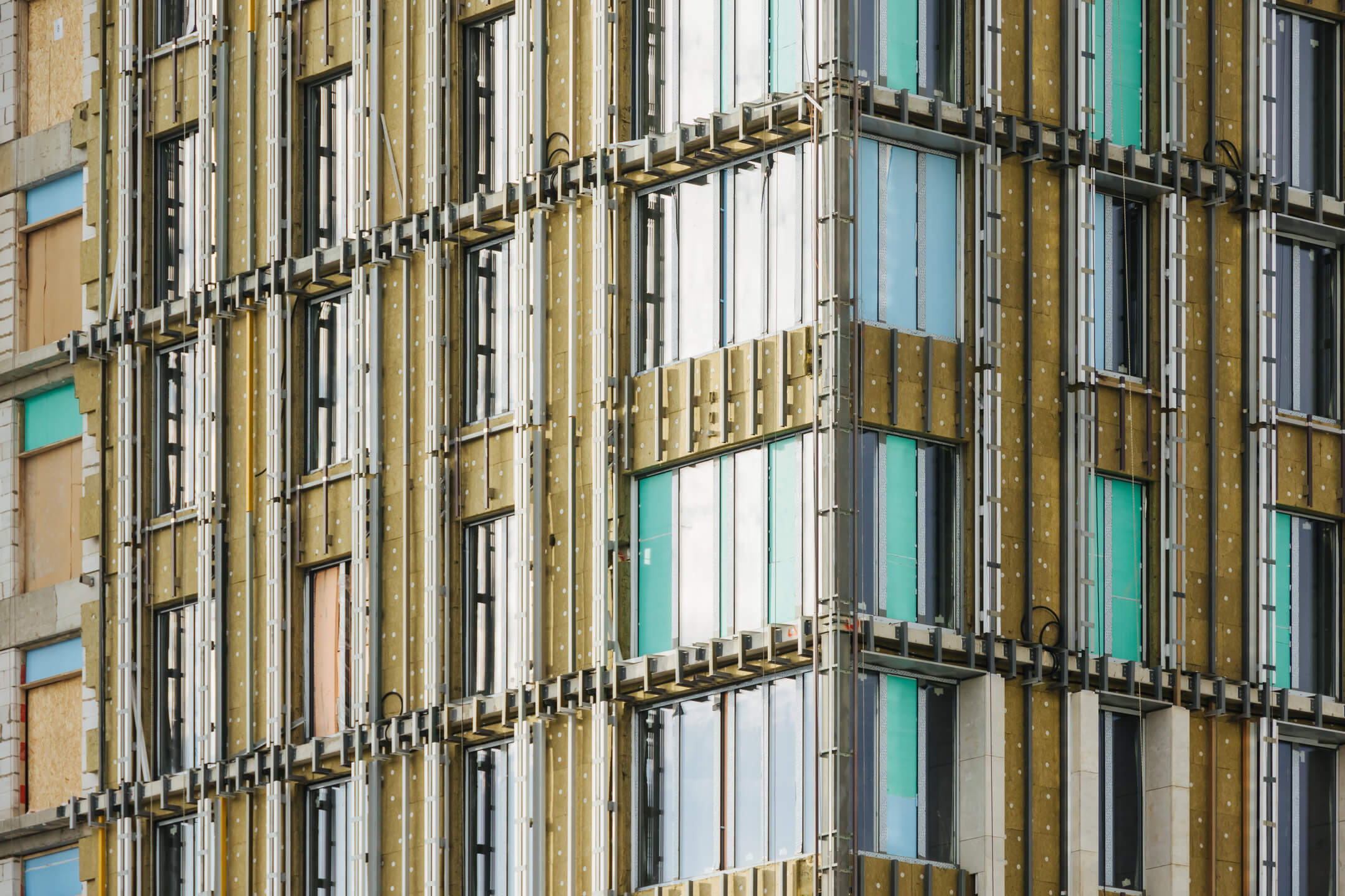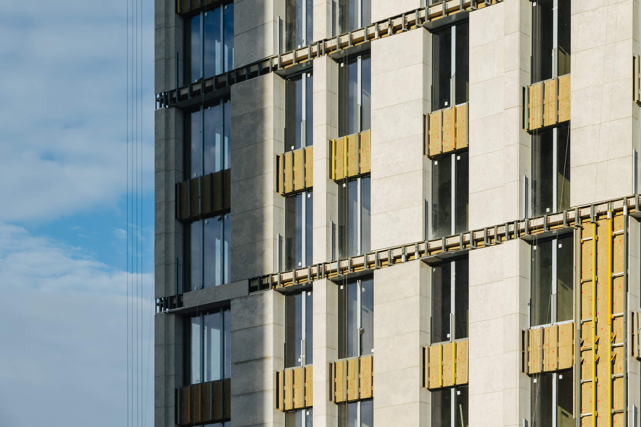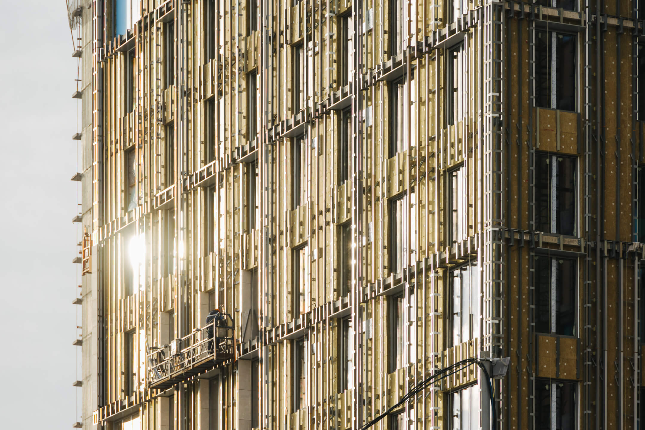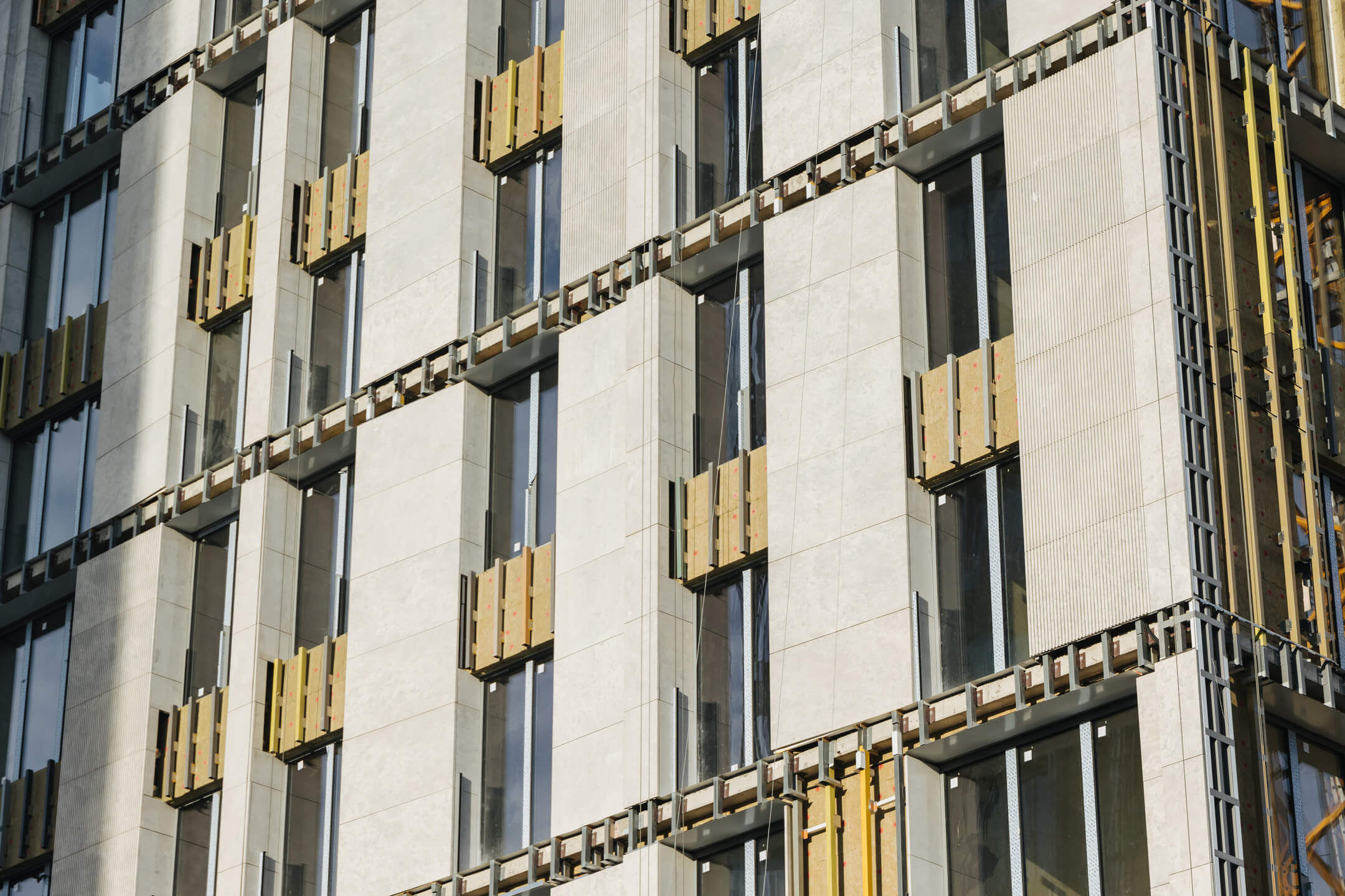 - Фасад. Монтаж минераловатного утеплителя. Монтаж подсистемы. Монтаж облицовки из натурального камня. Монтаж окон типовых этажей.