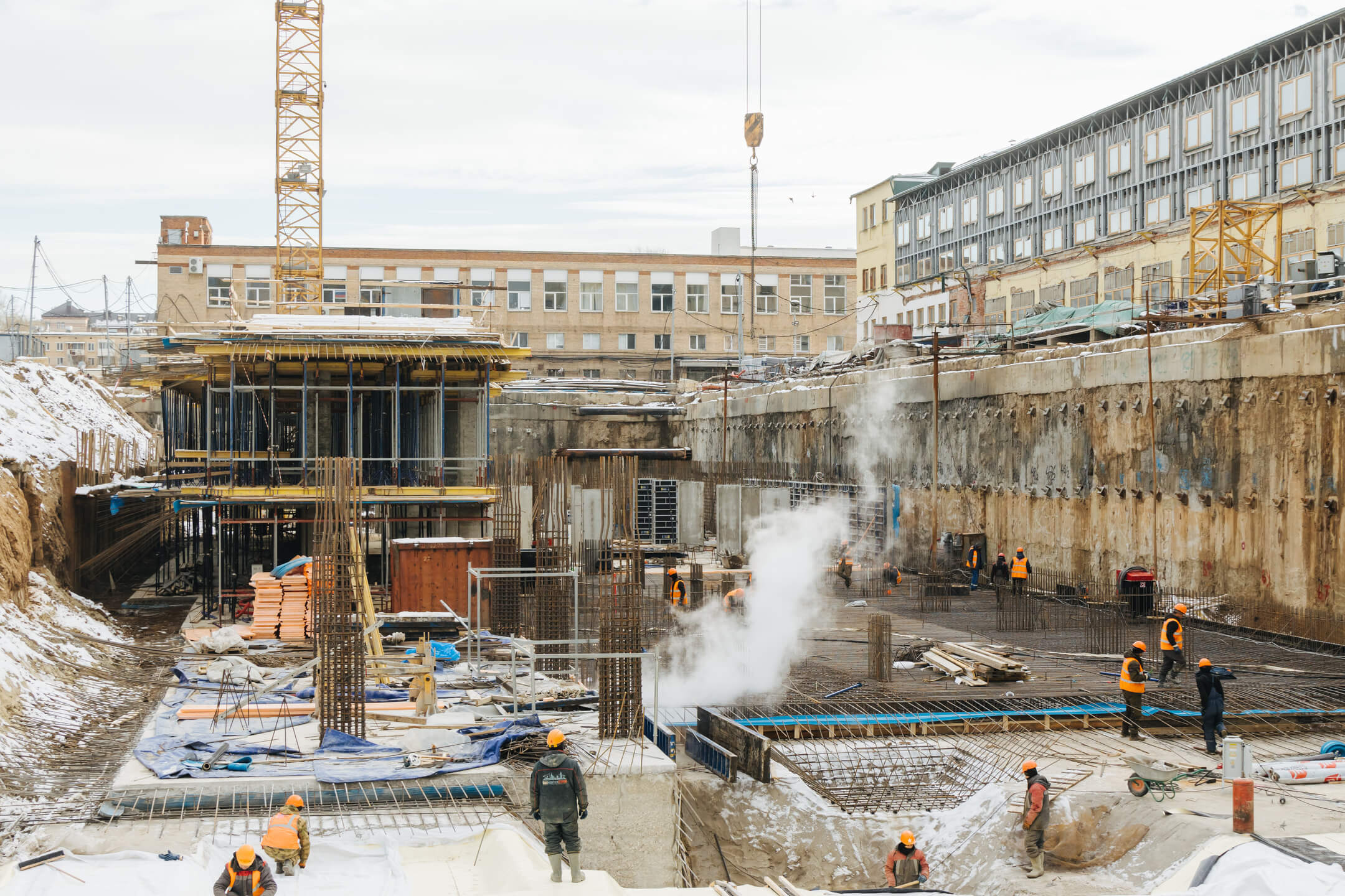 - ВИС. Ведутся работы по отоплению, вентиляции, противопожарному водопроводу. Ведутся электромонтажные работы.