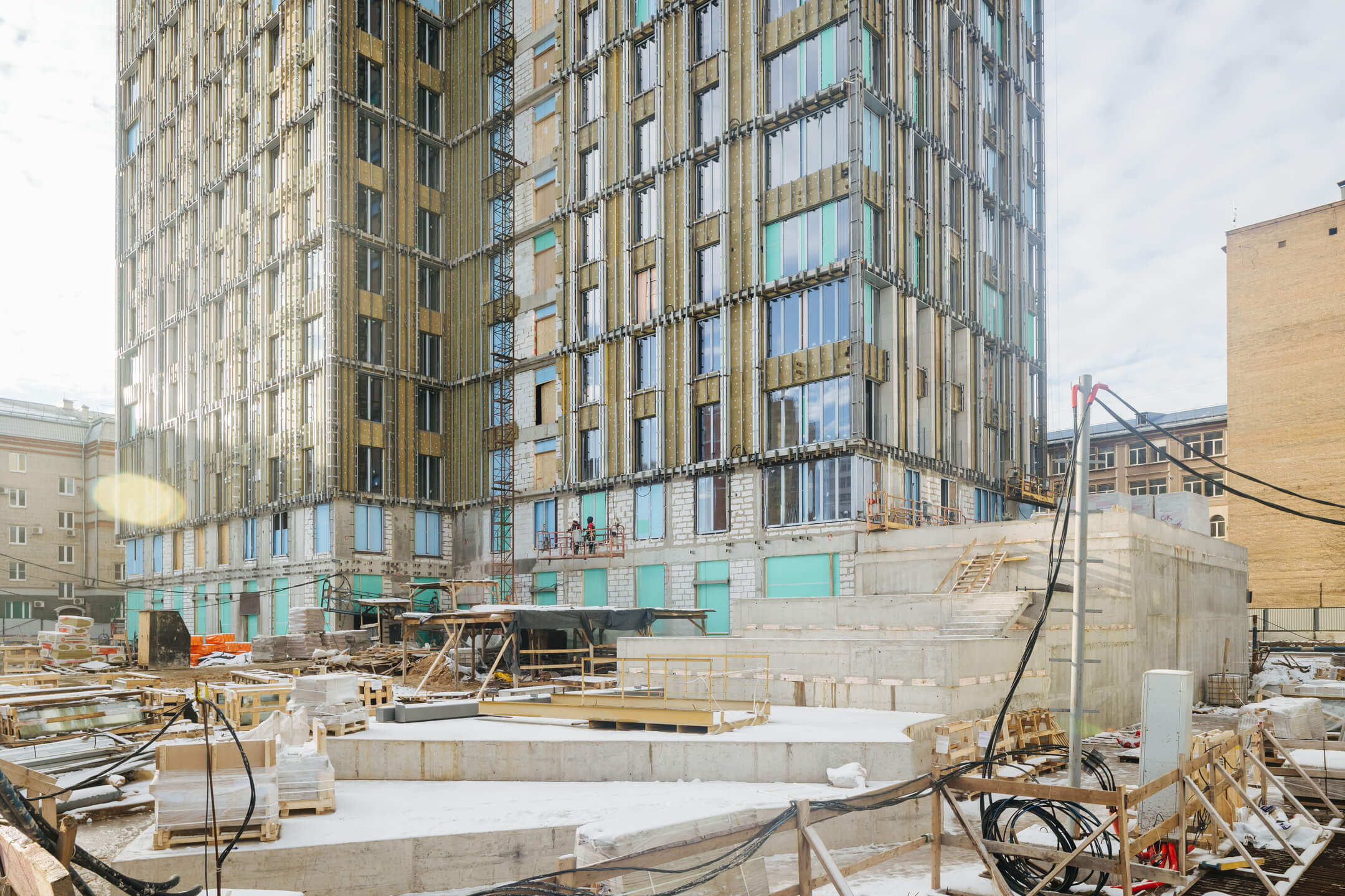 - Ведутся каменные работы на 19-21 этажах