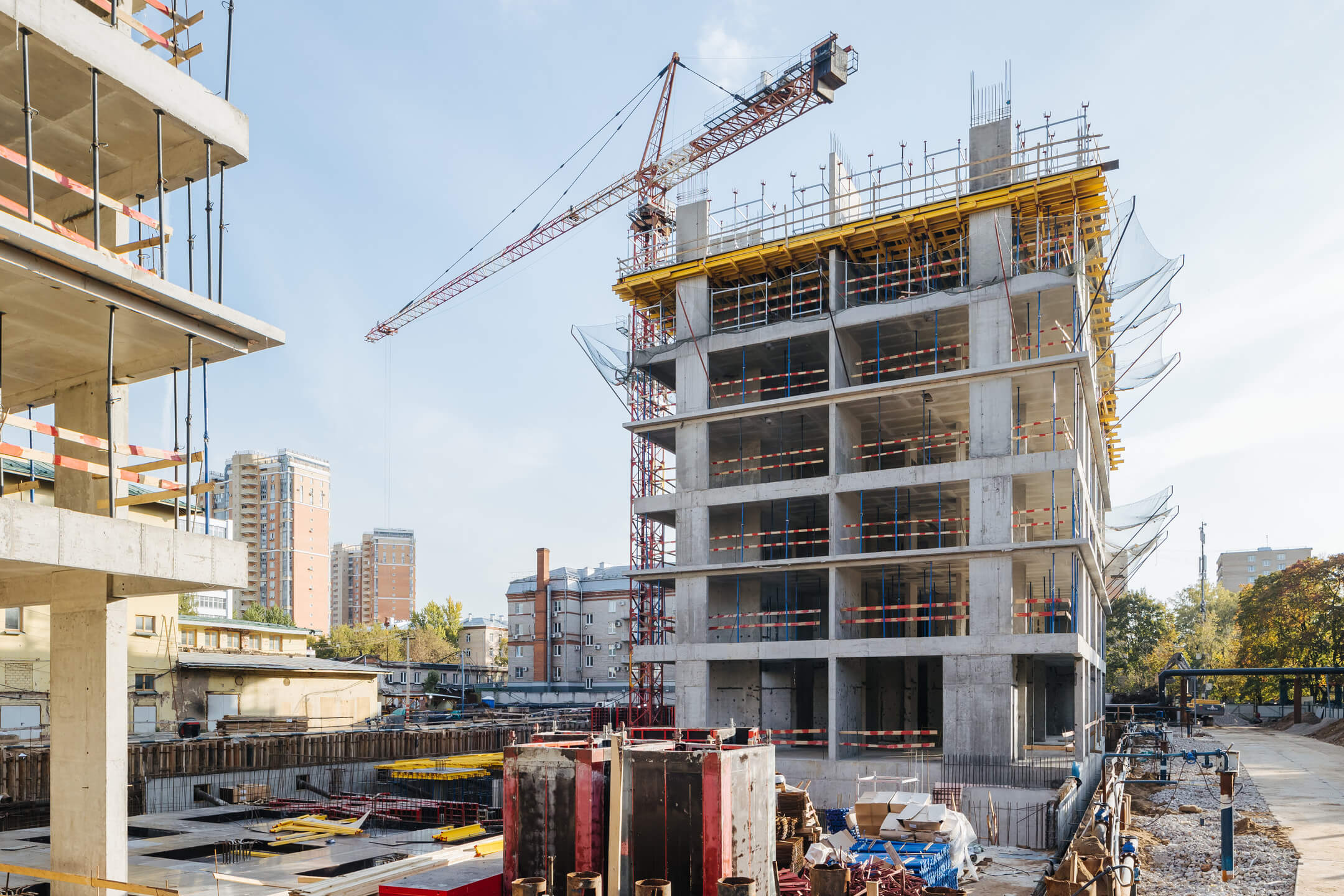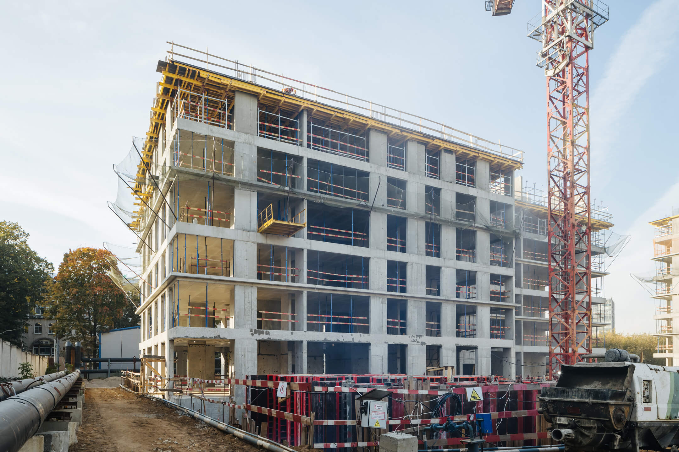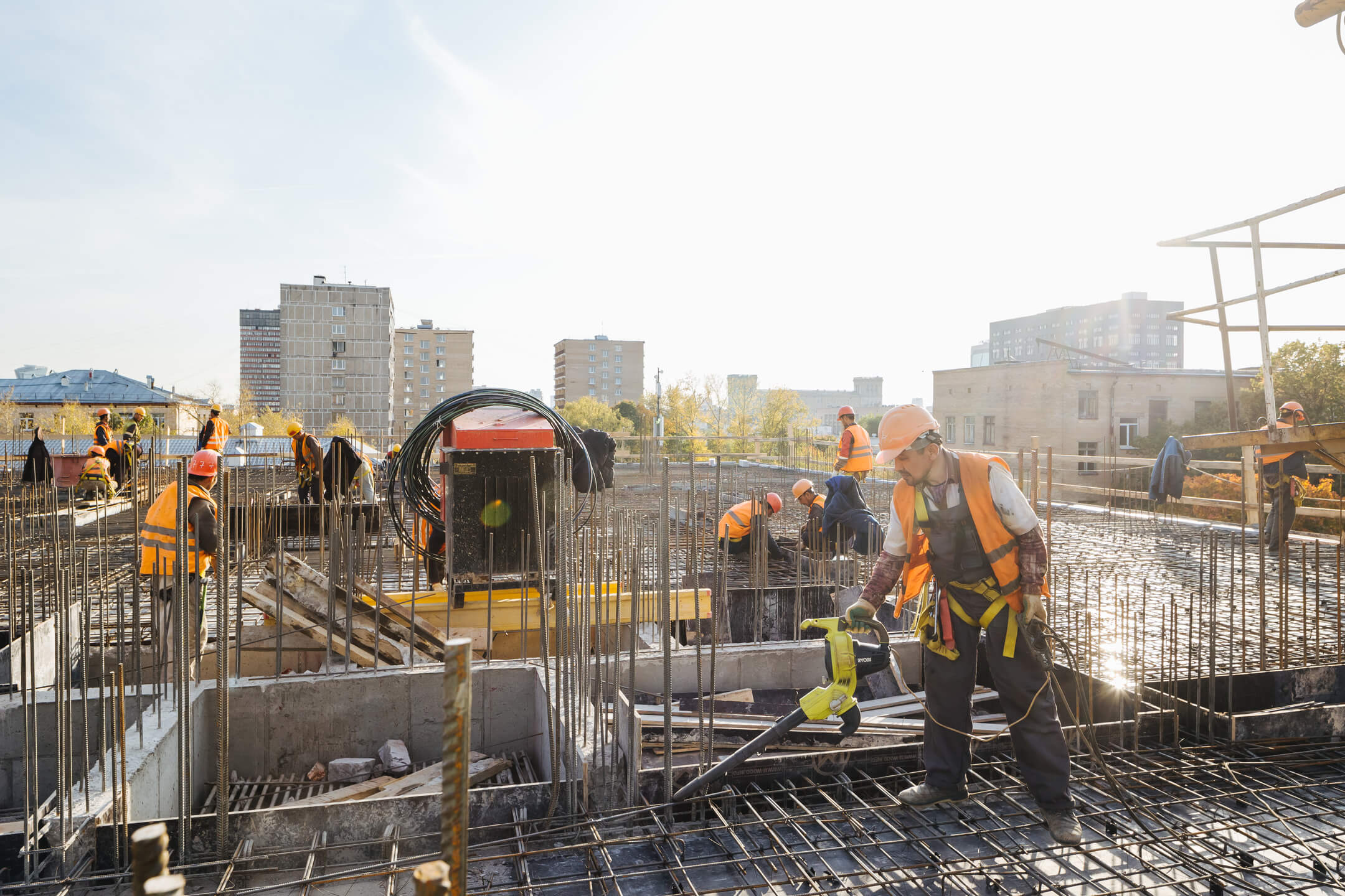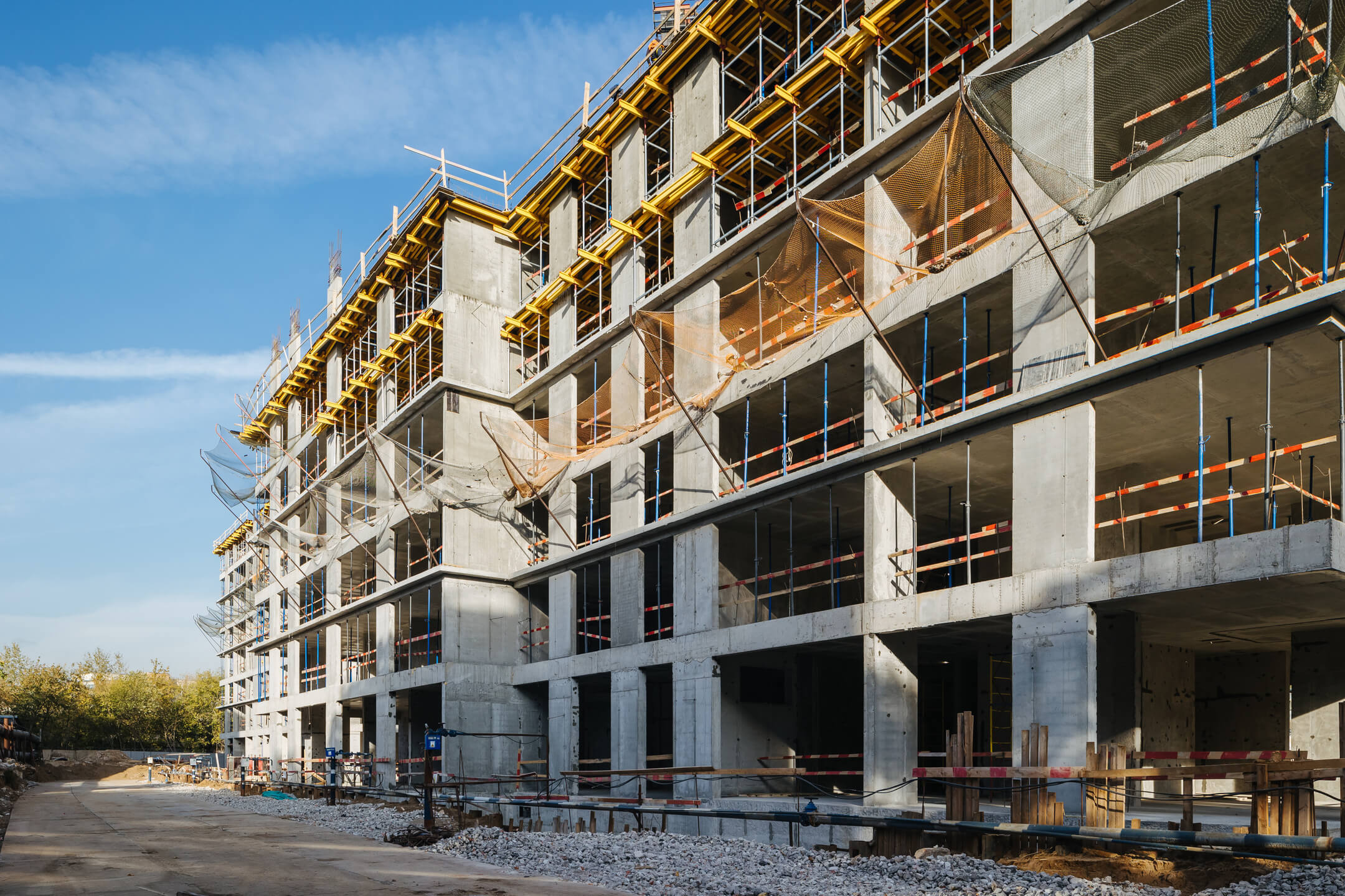 - Корпус 1: ведутся работы по армированию и бетонированию стен 7 и 8 этажей;