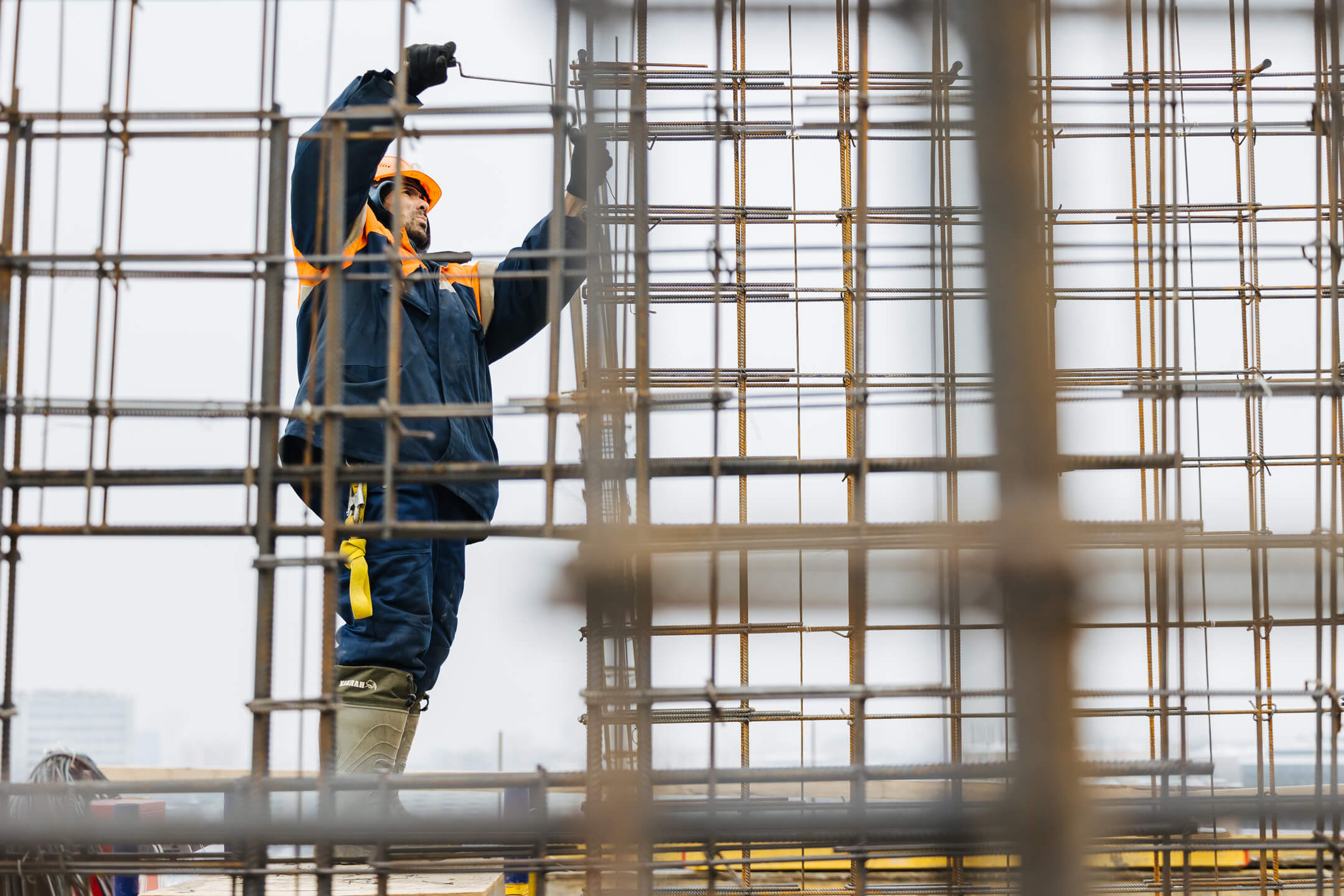 Этап 1.1 (корпус 1): работы по армированию/бетонированию плиты перекрытия 16 этажа и вертикальных конструкций 17 этажа, кладочные работы на 2-8 этажах.